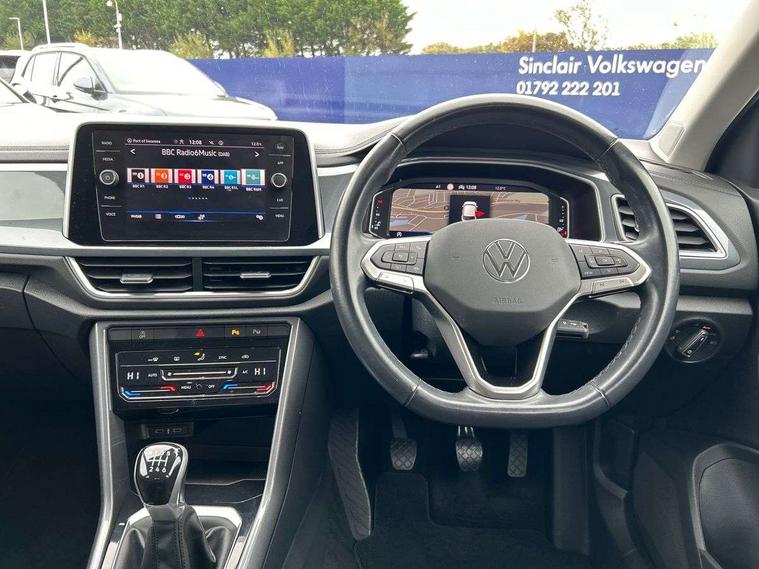 10.25" Digital cockpit pro, Bluetooth mobile phone interface, Driver alert system with fatigue detection, Driver tips and journey analysis, Emergency call service, Lane keeping system Lane Assist, Modified key software - reduce switch off time for key status change to Long no motion, Online services, Park assist including front and rear parking sensors, Service interval indicator, Tailgate/trunk lid release from outside, Think blue trainer driver tips and journey analysis, Warning sound and light for front seatbelts unfastened, Wireless app connect, Battery regeneration during braking, Start/stop function with battery regeneration, Diversity antenna for FM reception, Front and rear 6 speakers, Music playback - MP3, WMA and AAC files, Premium USB cable in choice of either Apple or Android smartphone compatibility, SD card slot, Simultaneous pairing of 2 compatible mobile devices, Title and cover art display, We Connect and We Connect Plus functionality, 3rd brake light, Auto dimming interior rear view mirror, Automatic hazard lights activation under emergency braking, Automatic headlight control with LED separate daytime running lights with coming/leaving home function, Body colour sports bumpers with silver metallic underbody fascia, Dynamic headlight range control with self adjusting whilst driving, Extended roof spoiler, Exterior mirrors aspherical on driver side, convex on front passenger side, External USB type C socket and charging sockets, Front windscreen wiper with intermittent wipe and 4 position delay, Heated rear window, LED Plus headlamps, LED rear combination lamps, LED rear number plate lights, LED tail lamp rear comination lamps, Light mode for poor weather, rain, fog or snow, Power windows with comfort operation and circuit breaker, Rain sensor, Rear exhaust tailpipe, Rear fog light on one side and reversing lights on both sides, Rear side wing doors, Rear wash/wipe with intermittent wipe setting, Remote electrically foldable door mirrors, puddle lights and reverse activated passenger's door mirror, 12V power socket in centre console, 3 rear head restraints, 3 seat bench in 2nd row, 4 load lashing points in luggage compartment, Air care climatronic air conditoning system with active combination filter and 2-zone temperature control, Chrome plated radiator grille inserts, air vent surrounds and light switch surrounds, Door and side trim panel with leatherette insert, Drawer under drivers seat, Front + rear carpet mats, Front centre armrest, Front comfort sports seats, Front cupholders x 2, Front footwell illumination, Instrument lighting, white adjustable panel illumination, Interior ambient lighting and surround lighting, Interior light delay, Isofix child seat preparation, Leather gearshift handle, LED interior light with switch off delay/dimmer and 2 front/rear LED reading lights, Load-through provision with cup holder when folded down ('Unsplit rear seat bench, split folding backrest, with centre armrest), Luggage compartment lighting, Non-folding front passenger seat backrest, Single front passenger seat, Storage compartment in left and right luggage area, Storage compartment in rear doors, Storage compartments in driver and front passenger doors, Sunvisors with illuminated vanity mirrors, Variable boot floor, height adjustable and removable, Driver assistance pack without proactive passenger protection - T-Roc, 3 point height adj front seatbelts + pretensioners, 3 point seatbelts in outer rear with ECE label, ABS, Child locks on rear doors, Driver and front passenger airbag with front passenger airbag deactivation, Driver and front passenger safety-optimised head restraints, Drivers seatbelt reminder, Electronic parking brake, Electronic Stability Control (ESC) inc EDL (Electronic Differential Lock) and ASR (Traction Control), Front and rear passengers curtain airbag system including front side airbags, Front assist with city emergency braking and pedestrian monitoring, Front seat side impact airbags, Predictive pedestrian protection, Rear disc brakes, Single tone horn, Tyre pressure loss indicator, Volkswagen roadside assistance, Alarm with interior protection, Anti-theft alarm system with interior monitoring, backup horn, and towing protection, Remote central locking with SAFELOCK, radio remote control with 2 remote control folding keys, Trims for alloy wheels,