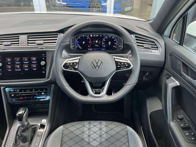 Adaptive cruise control ACC stop and go including speed limiter, App-Connect incl. App-Connect Wireless for Apple CarPlay and Android Auto, Bluetooth phone integration system, Distance control assist, Driver alert system, Driver profile selection, Dynamic road sign display, eCall emergency call system, Electromechanical speed sensitive power steering, Engine start/stop button, Lane keeping system Lane Assist, Lights on warning, Multifunction front facing camera, Outside temperature display, Premium multifunction display with multi colour display, Remote control boot opening, Rev counter, Revision / skills operating concept travel assistant, Service interval indicator, Speed limit display, Start/stop system with regenerative braking, Trip computer, Warning sound and light for doors and tailgate open, Battery regeneration during braking, Diesel particulate filter, Misfuel prevention device for diesel engine, Selective Catalytic Reduction, XDS electronic differential lock for improved traction and handling, 4 X 20 watt output, 8 Speakers, Diversity antenna for FM reception, Radio, SD card slot, Simultaneous pairing of 2 compatible mobile devices, SMS functionality - read, compose and send SMS messages using touch-screen display, Title and cover art display, USB C ports, Auto dimming interior rear view mirror, Automatic headlight control system, Body colour door handles, Chrome moldings on the side windows, Coming/leaving home lighting function, Dynamic headlight range control, Front and rear electric windows, Heated rear window, High level 3rd brake light, Laminated safety glass windshield, heat and sound insulating, LED headlamps with LED separate daytime running light and dynamic cornering light, LED rear combination lamps, LED rear number plate lights, License plate carrier in front and rear, Poor weather light and cornering light, R Line body kit, R Line side sills, Rain sensor windscreen wipers, Rear exhaust tailpipe, Rear fog lamp, Rear side wing doors, Rear spoiler in R style, Rear windscreen washer and wiper with interval delay, Side and rear windows in heat insulating glass, Trailer Stability Programme, Unique R Line badging, Windscreen wipers/ intermittent wipe + 4 position delay, 12V outlet in center console rear and in luggage compartment, 12V outlet in front and tray, 2 cup holders in front, 2 LED front reading lights, 2 LED rear reading lights, 3 bench rear seats in 2nd row, 3 rear headrests, 4 load lashing points, 40:20:40 split folding rear seats, Air Care Climatronic 3 zone automatic climate control with enhanced air filter and controls in the rear, Backrest release for left front seat, Black headlining, Brushed stainless steel pedals and footrest, Carpet mats in front and rear with decorative stitching in Gray, Climate control unit rear with touch function, Door and side trim panel in foam film, insert in leatherette, Front centre armrest, Front footwell illumination, Front seats head restraints (x-adjustment), Height adjustable front seats, Height/reach adjust steering wheel, Instrument lighting white adjustable panel illumination, Interior light with delay, Isofix Preparation 2 Rear child seats, Leather gear knob, Lockable cooled glovebox, Luggage compartment lighting, Luggage net, Rear bench seat asymetrically split folding, longitudinally movable and folding with load-through hatch and center armrest, Remote unlocking for rear seat backrest, Removable luggage cover, Removable rear headrests, Safety optimised front head restraints, Single front passenger seat, Sliding/reclining rear seats, Standard rear seat release, Storage compartment in driver's door, Storage compartment in passenger's door, Storage compartment in rear doors, Storage compartments in luggage area left and right, Storage tray on dashboard, Sun visors with illuminated vanity mirrors, Top front comfort seats, Variable boot floor, height adjustable and removable, Driver assistance pack plus - Tiguan DSG, 3 point seat belt for centre rear seats, 3 point seat belts with seat belt pretensioners for the outer rear seats, Active bonnet, Curtain airbags for front and rear passengers, Driver/Front Passenger airbags, Drivers knee airbag, Electronic parking brake with auto hold, Electronic Stability Control with driver steering recommendation, ABS, ASR, EDL, EDTC and trailer stabilization, Front assist with autonomous emergency braking (for Adaptive Cruise Control ACC up to 130 mph), Front disc brakes, Front passenger airbag deactivation, Front side airbags, Height adjustable front 3 point seatbelts + pretensioners, Hill hold control, Manual child proof rear door locks, Pedestrian monitoring system, Power assisted brakes, Proactive passenger protection system in combination with front assist, Rear disc brakes, Rigid safety cell with front and rear crumple zones, Two tone horn, Warning sound and light for front seat belts if unfastened, Anti theft alarm system with interior monitoring, backup horn and towing protection, Anti theft wheel bolts, Electronic engine immobiliser, Tool kit,