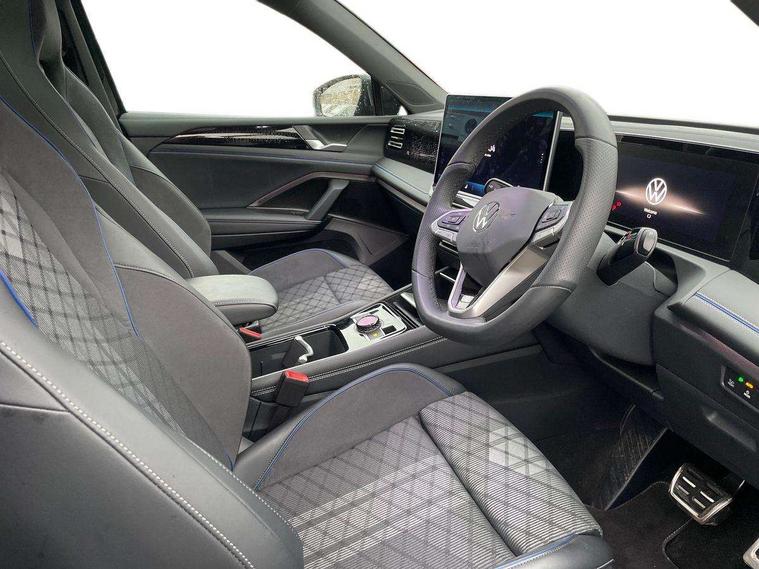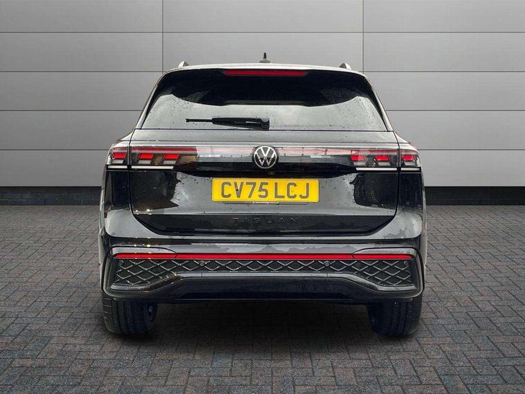 Adaptive cruise control (ACC), Advanced driver attention and drowsiness monitor, Bluetooth mobile phone interface, Car2X technology, Comfort drive travel assist, lane keeping system, lane assist and emergency assist, Digital Cockpit Pro - 10.25" high resolution dash display screen with customisable menus and information, Dynamic road sign display, E-Sim card for online connectivity, eCall emergency call service, Front Assist - Autonomous emergency braking with pedestrian and cyclist monitoring, Lane change system, Side assist, Rear traffic alert and Exit warning system, Oncoming vehicle braking when turning including swerve support, Park assistance plus with front and rear parking sensors, Power assisted steering with speed sensitive, Start/stop system with regenerative braking, Warning signal and warning light for front and rear seatbelts not fastened, Wireless App-Connect, Adaptive chassis control DCC pro includes driving mode selection, All wheel drive - 4Motion, Digital radio reception (DAB), Diversity antenna for FM reception, Air intake with black trim, Ambient lighting with logo projection, Automatic headlight control system, Body coloured door handles, Chrome moldings on the side windows, Coming/leaving home lighting function, Exterior mirror surround light, Heat insulating glass in side and rear windows, Heated rear window, Heated windscreen washer jets, High level 3rd brake light, Illuminated door handle recesses, Illuminated lightline between headlamps, Laminated safety glass windshield, LED Day time running light, Rain sensor windscreen wipers, Rear fog light on one side, reversing light on both sides, Rear side wing doors, Rear wiper, 12V outlet in center console rear and in luggage compartment, 12V socket in centre console, 3 bench rear seats in 2nd row, Air care climatronic 3 zone air conditioning system with rear air conditioning control panel, Black roof lining, Brushed stainless steel pedals, Carpet mats, front and rear, Centre console with illuminated storage compartment with sliding cover and two drinks holders, Chrome elements on the mirror switch and power window switches and door pulls, Door and side trim panel with leatherette insert, Door sill protectors, Entry and exit light, Front centre armrest, Interior ambient lighting with 30 colour options, ISOFIX anchors for child seats on outer rear seats and front passenger seat compatible with i-Size, Mechanical rear seat release, Power adjustable lumbar support in front, Rear bench seat, split folding, longitudinally movable and folding with load-through hatch and centre armrest, Single front passenger seat, Soul headlining, Sports comfort seats in front, Sun visors with illuminated vanity mirrors, Three rear head restraints, Variable luggage compartment floor, Black style package - Tiguan R-Line/Black edition, Driver assistance package - Tiguan, Driving dynamics pack with adaptive chassis control - Tiguan, IQ.LIGHT - HD matrix headlights pack - Tiguan Elegance/Black Edition, 3 point seat belt for centre rear seats, 3 Point seat belts in front with pretensioners, 3 point seatbelts in outer rear with ECE label, Driver and front passenger airbag with front passenger airbag deactivation, Electronic parking brake with auto hold, Front and rear curtain airbags, Front and rear side airbags, Front centre airbag, Front disc brakes, Hill decent control, Hill start assist, Manual child proof rear door locks, Rear disc brakes, Two tone horn, Warning triangle, Decorative inserts, Interior door handle in matte chrome, Soul instrument panel,