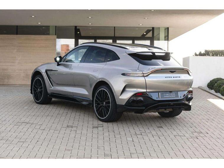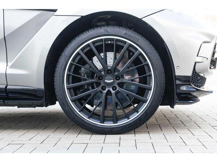 10.25" TFT centre display, 12.3" TFT instrument display, Adaptive cruise control, Apple car play/Android Auto, Aston martin satin chrome designer key, Blind spot monitoring, Bluetooth telephone connectivity, Brake pad wear indicator, Drive modes Terrain, Individual, GT, Sport, Sport + including launch control, eCall emergency call system, Electric power assisted steering (EPAS), Forward collision warning, Front parking aid with visual indicator, Inductive phone charger, Infotainment touchpad and dial, Lane change warning, Lane departure warning system (LDW), Lane keep assist, Outside temperature display, Park assist system, Rear crossing traffic warning, Rear parking aid with visual indicator, Rotary dials, Rotary infotainment system interface, Satellite navigation system, SOS emergency call button, Speed limiter, Standard underbonnet, Stop/start system, Surround camera system with deploying rear camera, Traffic sign recognition, Voice control system, 9 speed automatic transmission, Active centre transfer case, Adaptive triple chamber air suspension, All Wheel Drive (AWD), Battery conditioning connector, Electric active roll control, Electric limited slip rear differential, Electronic adaptive damping system, AM/FM radio, Aston martin premium audio, Bluetooth audio streaming, DAB Digital radio, SD card slot, USB port, 3rd brake light, Acoustic laminated front windows, Active rear brake lights, Approach Illumination, Auto dimming interior rear view mirror, Automatic headlights, Automatic high beam - AHB, Bi LED headlights, Body colour side vent, Carbon fibre rear wing lip spoiler, Electric windows, Fixed panoramic glass sunroof, Heat insulating glass, Heated rear window, Horizontal DRL/turn indicator design with larger air intakes and brake cooling grilles, LED centre high mounted stop light, LED daytime running lights, LED rear fog light, Matte black mesh bonnet vents, Power foldback door mirrors, Rain sensing windscreen wipers, Rear bumper design with integrated quarter panel vents, Rear side wing doors, Rear wiper, Sport exhaust, Standard paint protection film, 12V power sockets, 16 way electric front seats with memory, 3 seat bench in 2nd row, 40:20:40 split folding rear seats, Ambient lighting, Anodised aluminium sill plaques with aston martin wings, Automatic climate control, Black loadspace carpet, Courtesy Light, Embossed - Aston martin wings, Front and rear door pockets, Front centre console storage cover, Front head restraints, Gloss black double layer side sills, Glovebox with electric locking, Heated seats, Isofix/I size rear outer, Load rails in load space, Load tie downs in load space, Lower front console storage, Map pocket on front seat storage, Rear head restraints, Single front passenger seat, Soft close doors, Sports plus seats, Stainless steel sill protector in load space, Twin cupholders in front and rear, Twin front centre armrest, Twin sunvisors with illuminated vanity mirrors, 3x3 point rear seatbelts, Airbags - Driver and front passenger and knee, Anti theft locking wheel bolts, Anti-lock braking system (ABS), Auto vehicle hold function, Autonomous emergency braking, Carbon ceramic disc brakes, Door exit warning, EBD - Electronic brakeforce distribution, Electric parking brake (EPB), Emergency brake assist, ESC (Electronic Stability Control), Front thorax airbags/Side curtain airbags, HDC - Hill descent control, High performance braking system, Hill start assist, Intelligent wet brake control, Rear child proof door locks, Rear thorax airbags, RSC - Roll stability control, Seatbelt pre-tensioners, Seatbelt status indicator, Torque vectoring brake, Traction control, Tyre pressure monitoring system, Warning triangle, Alarm/immobiliser, Keyless entry with start/stop button, Remote central locking, Seat perforaton elegant, Seat quilting elegant,