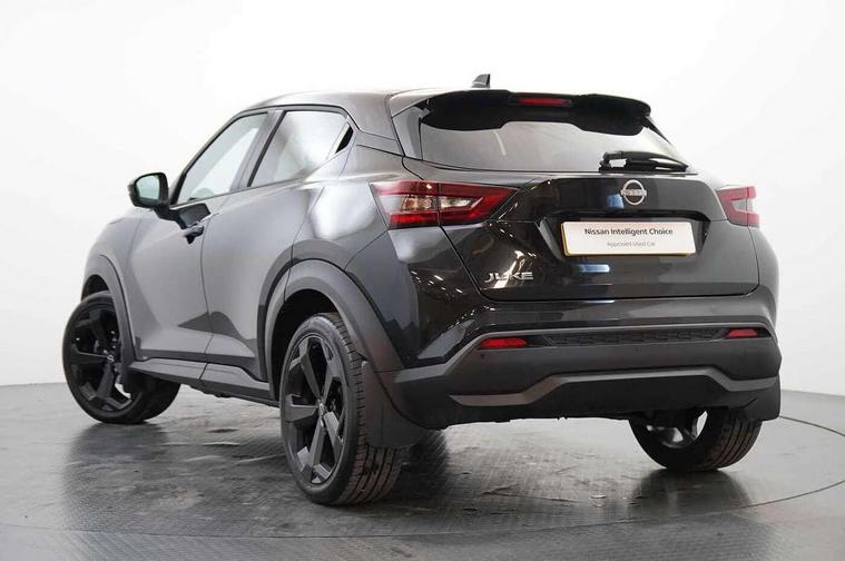 12.3" full colour TFT screen combimeter, Drive modes select (Eco, normal and sport), Emergency and breakdown call, Front parking sensor, Idle start/stop system, Intelligent driver alert system, Intelligent lane intervention, Lane departure warning system, Nissan connect 12.3" touch screen entertainment system, Nissan connect nav with TomTom traffic, Nissan connect services, Outside temperature sensor, Power Steering, Rear parking sensor, Stop/start button, Traffic sign recognition, Trip computer, Voice recognition, WiFi connectivity, Wireless Apple CarPlay and Google Android auto, Wireless Smartphone charger, 10 Bose speakers 8 speakers and 2 headrest speakers for driver/passenger seats, 2 X Rear console USB port, Bluetooth system, USB, Aux-in and 12V socket, Bose personal plus audio system, DAB Digital radio, Auto dimming frameless rear view mirror, Automatic hazard signal with emergency stop signal, Body colour door handles, Electrically adjustable door mirrors with integrated indicators, Follow me home headlights, Front and rear electric window with one touch driver window, High beam assist, LED 3rd brake light, LED daytime running lights, LED front fog lights, LED headlamps, LED rear fog lamp, LED rear lamps, One touch passenger window, Rear privacy glass, Rear side wing doors, Rear wiper, Roof spoiler, Shark fin roof antenna in solid Black, Solid black door mirrors, Three blink turn signal, 3 height adjustable rear headrests, 3 seat bench in 2nd row, 60/40 split folding rear seat, Card holder on driver sunvisor, Door ambient lighting, Driver seat back pocket, Driver side rear coat hanger, Driver/passenger sunvisors and vanity mirrors, Front and rear cabin lights, Front armrest, Front door pockets with bottle holders, Front head restraints, Front/rear passenger grab handles, Gear console ambient circle lighting, Height adjustable driver's seat, Internal chrome door handles, Luggage board, Luggage space lighting, Monoform sporty seats, Multifunction steering wheel, Passenger seat back pocket, Rear door bottle holders, Single front passenger seat, Smooth synthetic leather steering wheel, Synthetic leather kneepad, Synthetic leather shift knob, Synthetic leather upholstery, Telescopic steering wheel adjustment, Two cupholders in front centre console, Two rear isofix child seat anchorage points with top tether, Welcome light and console tray ambient lighting, Advanced safety shield pack - Juke Manual, Comfort pack - Juke, Heat pack with height adjustable passenger seats - Juke, ABS with EBD and brake assist, Active ride control, Active Trace Control, Driver and passenger airbags, Driver and passenger side airbags, Electric handbrake with auto hold function, Electronic Stability Programme (ESP), Front and rear curtain airbags, Height adjustable seatbelts, Hill start assist, Intelligent emergency braking with pedestrian and cyclist recognition, Rear door child safety locks, Seatbelt reminder for driver/front passenger and rear seats, Three 3 point rear seatbelts, Traction control, Tyre pressure monitoring system, VDC Dynamic Vehicle Control, Alarm, Immobiliser, Intelligent key and start push button with walk away lock and approach unlock functions, Remote central locking, 19" Alloy wheels, Tyre puncture repair kit,