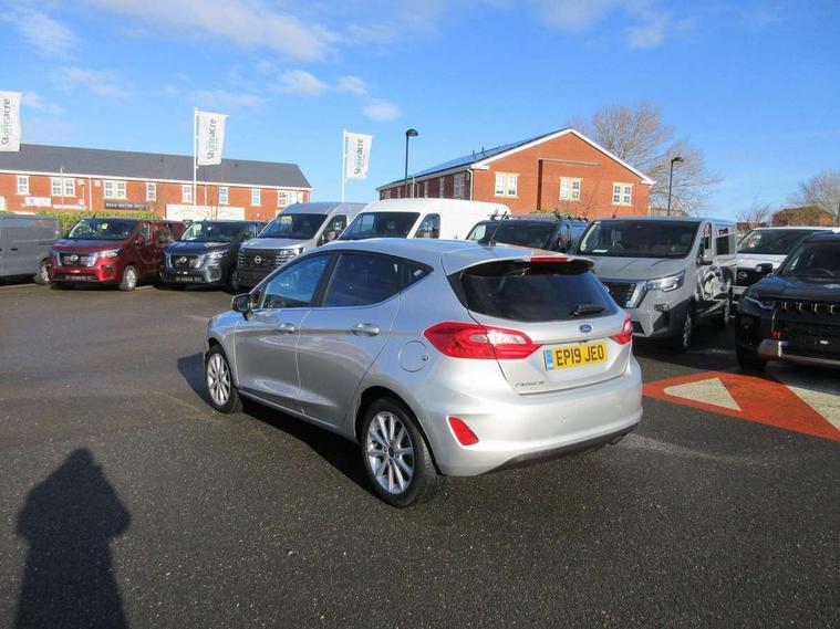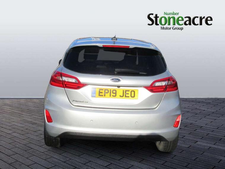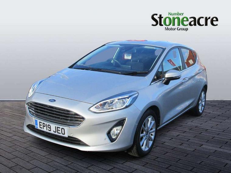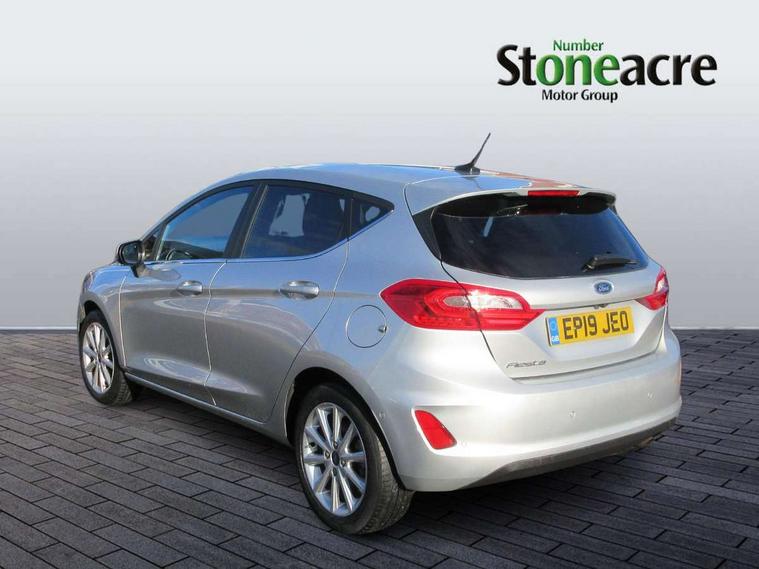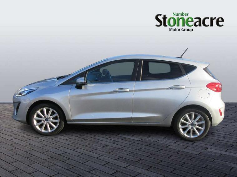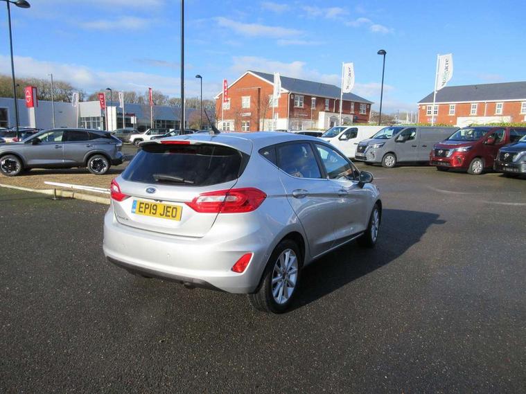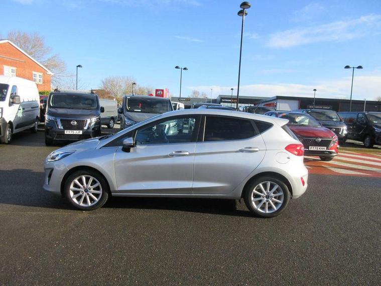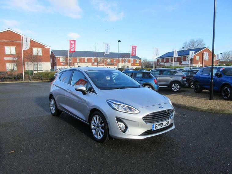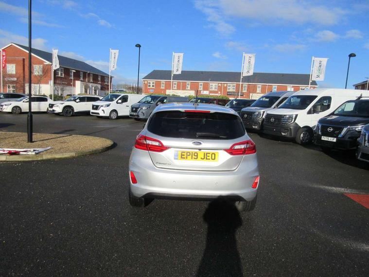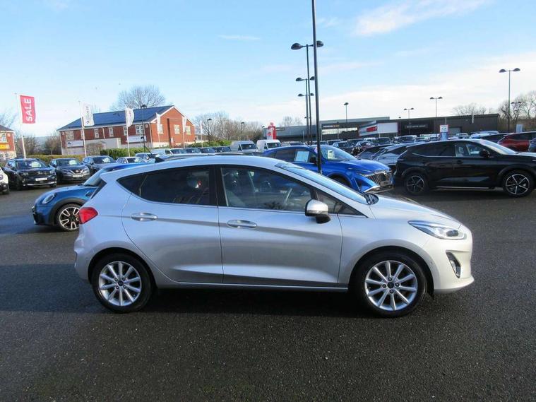 Bluetooth system, Electric power steering, Ford easy fuel, Trip computer, 2 USB ports, Auxiliary input socket, DAB Digital radio, Steering wheel mounted controls, Auto dimming rear view mirror, Automatic headlights, Body colour bumpers, Body colour door handles, Body colour electric adjustable heated door mirrors with integral indicators, Body colour rear spoiler, Chrome beltline trim, Chrome lower window surround, Cornering front fog lights, Electric front windows/one touch facility, LED Night signature to rear lights, LED rear lights, Power foldable door mirrors with puddle lights, Quickclear heated windscreen, Rain sensing wipers and auto dimming rear view mirror, Rear privacy glass, Rear wiper, Tinted glass, Upper front grille chrome surround, 12V Accessory socket in centre console, 3 spoke leather trimmed steering wheel with audio control, 60/40 split folding rear seat, Adjustable head restraints, Ambient lighting, Boot carpet, Centre console with armrest and illuminated cupholders, Chrome inner door handles, Cloth upholstery, EATC - Electronic Auto Temperature control, Footwell illumination, Front and rear velour floor mats, Front map reading lights, Front seat and rear pockets, Height adjustable driver's seat, Illuminated glovebox, Leather gear knob, Leather trimmed handbrake handle, Load area light, Luxury woven headliner, Overhead console with sunglasses holder, Pollen filter, Rake/reach adjustable steering wheel, Rear centre head restraint, Driver assistance pack - Fiesta/Titanium/Titanium X/Active B+O/Active X/ST-Line X, NCAP Pack - Fiesta, 3 point seatbelts on all rear seats, ABS+EBA, Curtain airbags, Driver and passenger airbags, Drivers knee airbag, Electronic stability control with hill start assist, Front passenger airbag deactivation, Front side airbags, Seatbelt warning, Tyre pressure monitoring system, MyKey system, Remote central locking & engine immobiliser, Thatcham Cat.1 alarm,