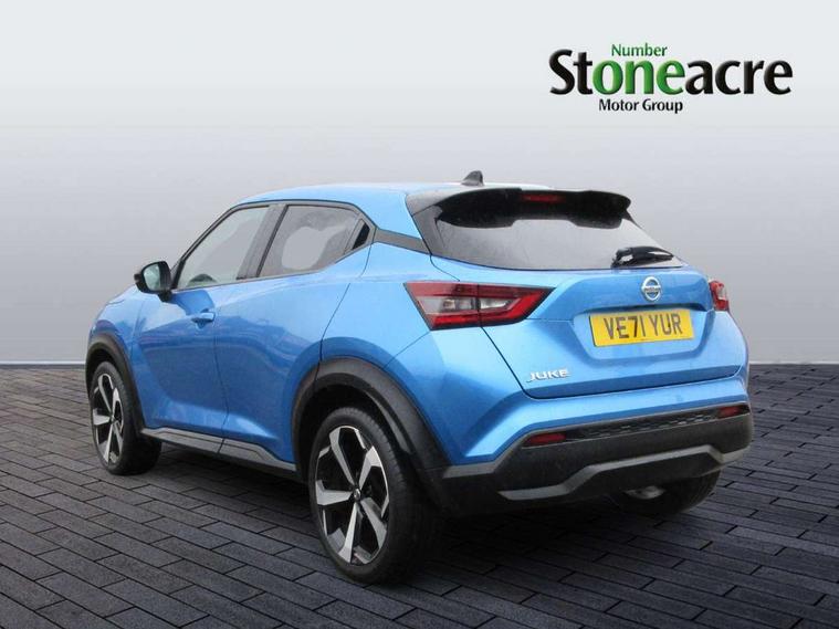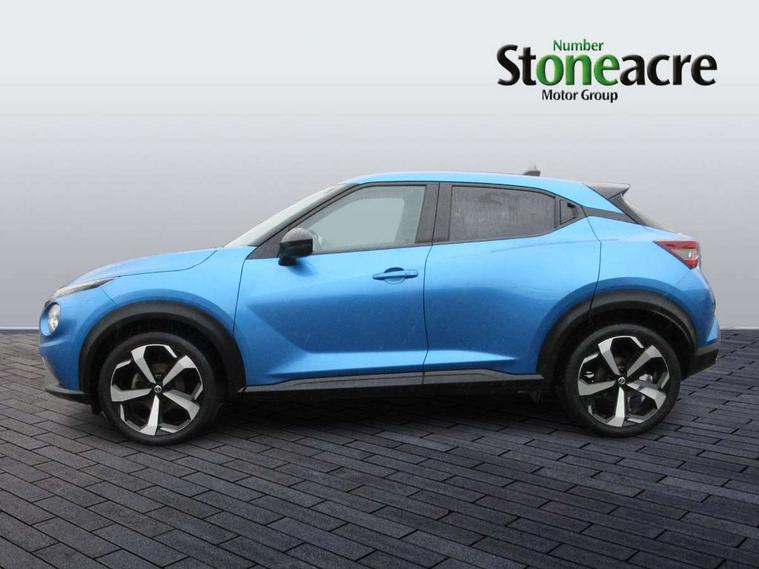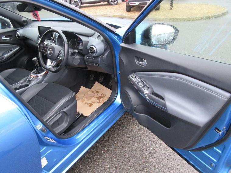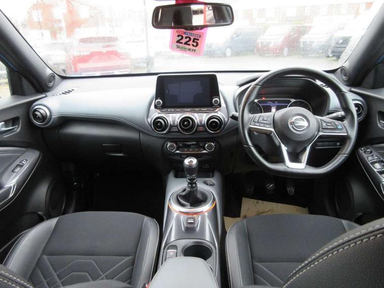 7" full colour TFT screen combimeter, Apple CarPlay and Google Android auto, Drive modes select (Eco, normal and sport), eCall emergency call system, Emergency and breakdown call, Front parking sensor, Idle start/stop system, Intelligent lane intervention, Lane departure warning system, Nissan connect 8" touch screen entertainment system, Nissan connect nav with TomTom traffic, Nissan connect services and Wifi connection, Outside temperature sensor, Power Steering, Rear parking sensor, Traffic sign recognition, Trip computer, Voice recognition, Gasoline particulate filter, Bluetooth system, USB, Aux-in and 12V socket, Bose personal plus audio system with 8 speakers(4 speakers and 2 headrest speaker for driver and passenger seats), Bose personal sound stage control, DAB Digital radio, Rear console USB port, Auto dimming interior rear view mirror, Auto headlights, Automatic hazard signal with emergency stop signal, Body colour bumpers, Body colour door handles, Electrically adjustable door mirrors with integrated indicators, Follow me home headlights, Front and rear electric window with one touch driver window, Heated and auto folding door mirrors, High beam assist, LED daytime running lights, LED front fog lights, LED headlamps, LED rear fog lamp, LED rear lamps, Rain sensor windscreen wipers, Rear privacy glass, Rear side wing doors, Rear wiper, Thermaclear heated windscreen, Three blink turn signal, 3 height adjustable rear headrests, 3 seat bench in 2nd row, 60/40 split folding rear seat, Automatic climate control, Card holder on driver sunvisor, Cloth/Synthetic leather upholstery, Door ambient lighting, Driver and passenger sliding and reclining seats, Driver seat back pocket, Driver side rear coat hanger, Driver/passenger sunvisors and vanity mirrors, Front and rear cabin lights, Front armrest, Front door pockets with bottle holders, Front head restraints, Front passenger isofix child seat anchorage point, Front/rear passenger grab handles, Gear console ambient circle lighting, Grey synthetic leather kneepad, Heated front seats, Height adjustable driver's seat, Height adjustable passenger seat, Internal chrome door handles, Leather gearshift knob, Leather steering wheel, Luggage board, Luggage space lighting, Monoform sporty seats, Multifunction steering wheel, Passenger seat back pocket, Rear door bottle holders, Single front passenger seat, Telescopic steering wheel adjustment, Two cupholders in front centre console, Two rear isofix child seat anchorage points with top tether, Welcome light and console tray ambient lighting, Advanced safety shield pack - Juke, ABS with EBD and brake assist, Active ride control, Active Trace Control, Driver and passenger airbags, Driver and passenger side airbags, Electric handbrake with auto hold function, Electronic Stability Programme (ESP), Front and rear curtain airbags, Height adjustable seatbelts, Hill start assist, Intelligent emergency braking with pedestrian and cyclist recognition, Rear door child safety locks, Seatbelt reminder for driver/front passenger and rear seats, Single tone horn, Three 3 point rear seatbelts, Traction control, Tyre pressure monitoring system, VDC Dynamic Vehicle Control, Ventilated rear brake discs, Alarm, Immobiliser, Intelligent Key with push button starter, Remote central locking,