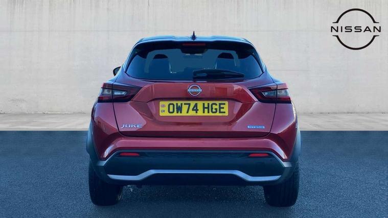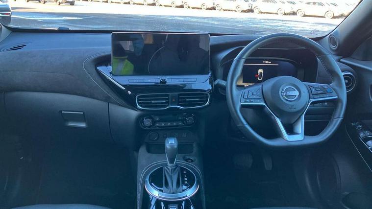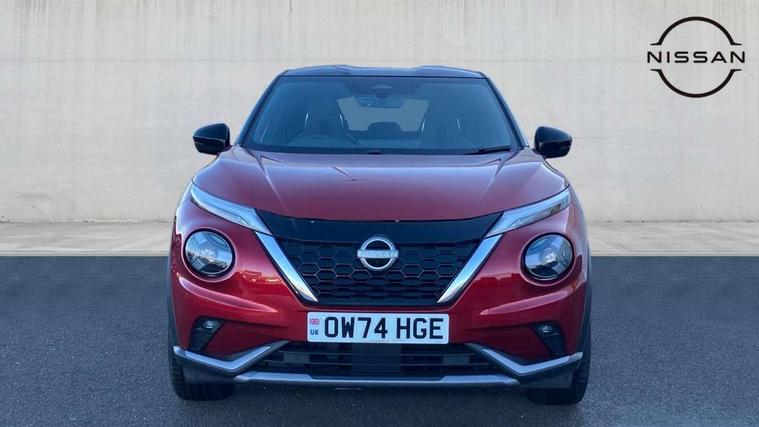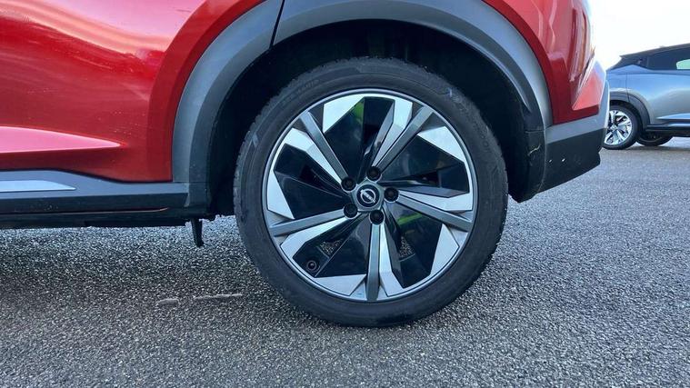 12.3" full colour TFT screen combimeter, Drive modes select (Eco, normal and sport), e-Pedal step, Emergency and breakdown call, EV mode switch, Front parking sensor, Intelligent driver alert system, Intelligent lane intervention, Lane departure warning system, Nissan connect 12.3" touch screen entertainment system, Nissan connect nav with TomTom traffic, Nissan connect services, Outside temperature sensor, Power Steering, Rear parking sensor, Stop/start button, Traffic sign recognition, Trip computer, Voice recognition, WiFi connectivity, Wireless Apple CarPlay and Google Android auto, Wireless Smartphone charger, 10 Bose speakers 6 speakers and 2 headrest speakers for driver/passenger seats, 2 X Rear console USB port, Bluetooth system, USB, Aux-in and 12V socket, Bose personal sound stage control, DAB Digital radio, Auto dimming frameless rear view mirror, Automatic hazard signal with emergency stop signal, Body colour door handles, Electrically adjustable door mirrors with integrated indicators, Follow me home headlights, Front and rear electric window with one touch driver window, Heated and auto folding door mirrors, High beam assist, LED 3rd brake light, LED daytime running lights, LED front fog lights, LED headlamps, LED rear fog lamp, LED rear lamps, One touch passenger window, Rain sensor windscreen wipers, Rear privacy glass, Rear side wing doors, Rear wiper, Roof spoiler, Shark fin roof antenna in solid Black, Three blink turn signal, 3 height adjustable rear headrests, 3 seat bench in 2nd row, 60/40 split folding rear seat, Automatic climate control, Card holder on driver sunvisor, Door ambient lighting, Driver seat back pocket, Driver side rear coat hanger, Driver/passenger sunvisors and vanity mirrors, Front and rear cabin lights, Front armrest, Front door pockets with bottle holders, Front head restraints, Front/rear passenger grab handles, Gear console ambient circle lighting, Height adjustable driver's seat, Internal chrome door handles, Leather gearshift knob, Luggage board, Luggage space lighting, Monoform sporty seats, Multifunction steering wheel, Passenger seat back pocket, Rear door bottle holders, Single front passenger seat, Smooth synthetic leather steering wheel, Synthetic leather kneepad, Telescopic steering wheel adjustment, Two cupholders in front centre console, Two rear isofix child seat anchorage points with top tether, Welcome light and console tray ambient lighting, Heat pack with height adjustable passenger seats - Juke, Interior personalisation pack - Juke, ProPilot pack - Juke Auto, Satin grey exterior personalisation pack - Juke, ABS with EBD and brake assist, Active ride control, Active Trace Control, Driver and passenger airbags, Driver and passenger side airbags, Electric handbrake with auto hold function, Electronic Stability Programme (ESP), Front and rear curtain airbags, Height adjustable seatbelts, Hill start assist, Intelligent emergency braking with pedestrian and cyclist recognition, Rear door child safety locks, Seatbelt reminder for driver/front passenger and rear seats, Three 3 point rear seatbelts, Traction control, Tyre pressure monitoring system, VDC Dynamic Vehicle Control, Alarm, Immobiliser, Intelligent key and start push button with walk away lock and approach unlock functions, Remote central locking, 19" Aero alloy wheels, Tyre puncture repair kit,