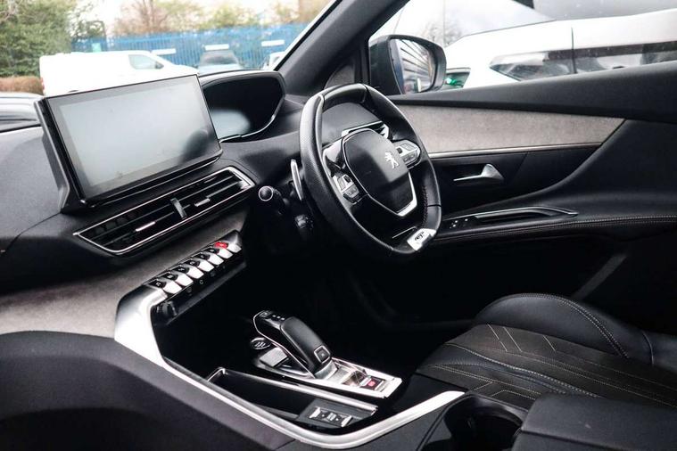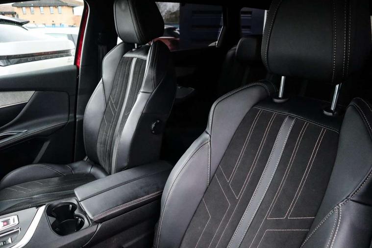 10" High Definition Capacitive Touchscreen, 3D connected navigation + voice control, Bluetooth telephone connection, Drive mode selector (Eco, Normal and Power), Driving timer alert system, Emergency services call system, Extended traffic sign recognition, Exterior temperature indicator with ice warning, Lane departure warning system, Mirror screen with Apple CarPlay and Android auto, Multi function trip computer, Passive blind spot monitoring without Steering correction, Peugeot i-cockpit with configurable 12.3" headup digital instrumental panel and compact sports steering wheel, PEUGEOT SOS and assistance, Rear passenger USB charging sockets (x2) (type A), Speed limit recognition and recommendation, Sports button, Voice recognition for radio and telephone, Dynamic stability control and electronic anti-skid system, Bi Tuner radio including DAB, Focal premium HiFi sound system, USB socket, Auto self levelling headlights, Automatic activation of hazard warning lights, Black diamond roof and nera black door mirror shells, Body colour door handles, Body coloured rear spoiler, Body protectors in black, Chrome side window trim, Dark tinted rear side and tailgate windows, Door mirrors with auto dipping function in reverse gear, Dynamic frameless design in front radiator grille, Electric folding door mirrors with exterior courtesy LED lighting, Electrically heated door mirrors, FOCAL tweeter speaker grilles in 'belem bronze metal effect finish, Frameless electrochrome rear view mirror, Front windscreen wiper with magic wash cleaning system, Full LED headlights with fog mode, Gloss black B and C pillar and aerodynamic deflector trim, Gloss black rear cluster connecting strip, GT emblem (front wings and tailgate), Headlights left on audible warning, Heated rear windscreen with integrated antenna, LED daytime running lights in fang style, LED front indicator, LED rear lights including reversing lights, scrolling indicators and PEUGEOT '3Claw Effect' light signature (with daylight function), LED rear number plate lighting, LED side indicator lights integrated into door mirrors, LED third brake light, One touch electric front/rear windows with pinch protection, Rear side wing doors, Rear windscreen wiper with auto activation when reversing, Silver front lower bumper, Twin exhaust effect trim, 2 cupholders in front centre console, 2 separate seats in 3rd row, 3 bench rear seats in 2nd row, 3 x 12V power sockets, 4 Grab handles retractable and damped, Aikinite stitching in armrest, gear lever and dashboard facia, Aluminium pedals, Automatic and dual zone diffusion air conditioning system, Blue ambient lighting for connecting zone, Blue ambient lighting to front door panels, central storage and cupholders, Blue ambient lighting to head up instrument panel, Brumeo fabric trimmed door armrests, Central front armrest with butterfly wing opening, Tramontane double stitching and illuminated storage compartment, Electric power steering with reach and rake adjustable steering column, Flocked front door pocket interior with blue ambient lighting, Flocked glovebox interior, Fold flat front passenger seat with picnic table, Footwell lighting, Front ambient lighting, Front interior light with reading spotlights (x2), row 2 interior light with reading spotlights (x2), Front passenger seat manual adjustment (longitudinal and back rest angle), Gear shift indicator, Height adjustable driver seat, Height adjustable passenger seat, Illuminated glovebox, Illuminated vanity mirror, Isofix child seat fittings x 3 in the second row, LED interior lighting, Map pocket on front seat backs, Mistral floor mats with Aikinite contrast stitching, Mistral full grain perforated leather steering wheel with aikinite stitch detail and satin chrome 'GT' emblem, Rear ventilation system, Retractable parcel shelf, Roof lining and windscreen pillars in Mistral black, Satin chrome digital instrument panel and touchscreen trim, Satin chrome front door panel recess trim, Satin chrome interior door handles, Satin chrome scorpion's tail and toggle switch trim, Seatbelt not fastened audible and visual alert for front seats, Seatbelt unfastened on the move audible and visual alert for front and rear seats, Single front passenger seat, Third row seats (can be stored under bootfloor or removed completely), Twin rear coat hooks, Children's pack - 5008, Drive Assist Plus Pack - 5008, Driver sport pack - 5008, Visibility pack - 5008, Visio Park 2 pack - 5008, ABS + EBD + EBA, Adaptive driver and front passenger airbags including passenger airbag deactivation function, Electronic parking brake, ESP and ASR traction control with deactivation switch, Five 3 point rear safety belts, Front and rear curtain airbags, Front optimised safety headrests and rear retractable headrests (x3), height adjustable, Front side airbags, Front three point retractable seatbelts height adjustable with pre tensioners and force limiters, Front ventilated disc brakes, Hill start assist, Manual child lock in rear doors, Rear disc brakes, Rear three-point retractable seatbelts (x3) with pre-tensioners and force limiters in the outer rear seats, Two tone horn, Automatic door locking when moving off, Child lock control of rear doors and windows, Electronic code immobiliser, key operated exterior door lock from the left hand door, Keyless start, Perimetric and volumetric alarm with lift and tilt sensor, Peugeot Open and Go System, Remote control central locking with two plip keys, Satin chrome dash trim, Puncture repair kit including compressor, sealant cartridge and towing eye,