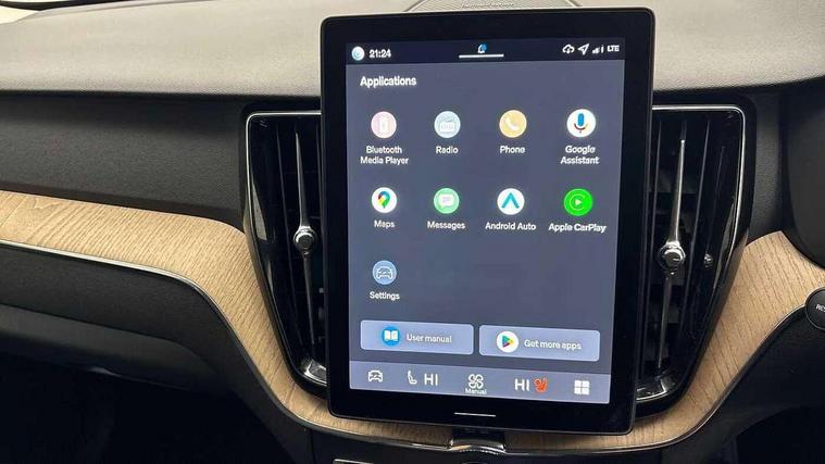 11.2" centre console touch screen, 12.3" Progressive Driver Display, 360 degree surround view parking camera with side proximity sensors, Adaptive cruise control, Adjustable steering wheel force, Android auto (Wired), Apple carplay (wired), Bluetooth handsfree system, Drive mode settings, Driver alert control with lane keeping aid, Emergency services call system, Front and rear park assist, Google Automotive Services, Intelligent speed assistance, Oncoming Lane Mitigation, PAS, Power operated tailgate with handsfree opening and closing, Service interval indicator, Speed limiter, Speed sensitive steering, Trip computer, Volvo cars services with app, Volvo on call with App, Wireless/Inductive Mobile Phone Charging, 2 phase on board charger 6.4kW (home charging limited to 3.7kW), 6m 3 phase 16amp Type 2 / mode 3 charge cable, 8 speed automatic transmission with start/stop + manual change functions, Electric rear axle drive, Recharging port located in nearside front wing, DAB Digital radio, Low speed exterior sound speaker, Premium Sound by Harman Kardon, dirac unison, dolby pro logic II surround sound, 13 speakers/600W output and fresh air subwoofer, Steering wheel remote infotainment controls, Adaptive brake lights with high level LED brake lights, Auto dimming interior + exterior mirrors, Automatic headlight levelling system, Automatic LED Headlights + Active high beam incorporating daytime running lights, Electric adjustable/heated/auto power folding door mirrors, Electric front+rear windows, Front aluminium tread plates, Heated front windscreen, High gloss black door mirrors and window surround, High gloss black front and rear bumper decoratives, High gloss black mesh front grille with high gloss black surround, Home safe and approach lighting, Integrated roof rails in high gloss black, Puddle lights, Rain sensor with automatic windscreen wiper activation, Rear side wing doors, Rear wiper, Roof antenna, Roof spoiler, Tinted windscreen, Visible VIN plate, 12V socket in front tunnel console and luggage compartment, 2 zone electronic climate control with Clean zone air quality system and pollen filter, 3 seat bench in 2nd row, 3 Spoke tailored steering wheel with chrome trim, A-pillar parking ticket holder, Air purifier particulate matter (PM) 2.5 filter, B Pillar ventilation, Bright metal luggage scuff plate, Centre console cupholders and storage, Charcoal floor mats, Front and rear courtesy lights, Front and rear door pocket illumination, Front cupholder illumination, Front footwell illumination, Front reading lights, Front seat cushion extensions, Glovebox compartment with illumination, Head restraints for all seats, Heated front seats, Heated steering wheel, Height/reach adjustable steering column, Illuminated luggage compartment, Illuminated vanity mirrors + ticket holder, Inner door release handle illumination, ISOFIX attachment on outer rear seats, Load cover, Load protection net, Multi directional lumbar support, Power driver seat with memory + exterior mirrors memory, Power height adjustable passenger seat, Power passenger seat with memory, Quilted nordico leather upholstery, Rear armrest with cupholder, Rear footwell and front and rear side step illumination, Rear reading lights, Rear seat concealed storage, Single front passenger seat, Tailgate illumination and ambient door lighting, Underfloor stowage compartment, Versatile split folding rear seat - 60/40, Driver assist pack without Adaptive cruise control - XC60, 5 three point seatbelts, City safety with steering support with Pedestrian + cyclist + front collision warning with full auto brake and rear auto brake, Drivers knee airbag, Dual stage driver/passenger airbags, Electronic parking brake with auto hold, First aid kit, Front seats SIPS airbags, Hill descent control - Off-road drive mode, Hill start assist, IC (Inflatable Curtains) - Full Length, Passenger airbag cut-off device, Power child locks on rear doors, Road sign information display, Run off Road Mitigation, Run off Road Protection, Seatbelt reminder and pretensioners, SIPS (Side Impact Protection System), Slippery road and hazard light alert, Stability and Traction Control with Spin control, Engine Drag Control and Corner Traction Control, Tyre pressure monitoring system, Vehicle deceleration control with Anti-lock Brake System, Electronic Brake Distribution and Emergency Brake Assist, Warning triangle, WHIPS whiplash protection system - front, Anti-theft alarm including immobiliser/volume sensor + level sensor, Key integrated remote control central locking + fuel flap with deadlocking system and auto open/close power windows, Keyless Drive (includes Keyless Entry and Keyless Start), Locking wheel nuts, Private locking for tailgate, Summer tyres, Tyre sealant kit + 12v compressor,