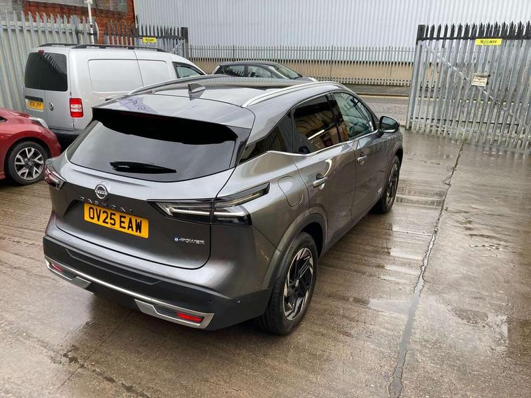 2 front USB-C ports, 2 rear USB-C ports, 360 degree Intelligent around view monitor with moving object detection, Blind spot intervention, Blind spot warning, Drive assist custom mode, Drive modes (sport, normal, eco), Driver drowsiness and attention warning, e-Pedal step, Electric speed sensitive power steering, Emergency and breakdown call, Emergency lane keep assist, Emergency Stop Signal (ESS), Engine start/stop button, EV mode switch, Event data recorder, Front and rear parking sensors, Full Digital 12.3" TFT Digital Combimeter, Google virtual personal assistance, Idle stop/start system, In-car WIFI hotspot, Intelligent Cruise control (ICC), Intelligent forward collision warning, Intelligent speed assist, Lane departure warning system, Nissan connect 12.3 inch touchscreen infotainment system, Nissan connect navigation with google maps, Nissan connect services 2.0 (Google Automotive System), Outside temperature sensor, Rear cross traffic alert, Reversing detection, Traffic jam pilot, Wireless Apple CarPlay/Android Auto, Wireless charging pad, Limited slip differential, 6 speakers, AM/FM audio system with DAB, Bluetooth audio streaming, Auto dimming frameless rear view mirror, Auto rear wiper when reversing, Body colour mirror caps, Body coloured door handles, Bodyside mouldings, Chrome side window finisher, e-POWER badging, Electric auto folding door mirrors, Electrically adjustable and heated door mirrors with LED turn indicator, Follow me home headlights, High beam assist, Intelligent auto headlights, LED 3rd brake light, LED daytime running lights, LED Headlights, LED rear lights, One touch front and rear electric windows with remote opening and closing, One touch passenger window, Partially body coloured bumpers, Rear privacy glass, Rear roof spoiler, Rear side wing doors, Rear styling plate, Shark fin antenna, Splash free rain sensing wipers, Super UV and infrared cut glass, Three blink turn signal, 3 bench rear seats in 2nd row, 3 rear headrests, 60/40 split folding rear seat bench, Chrome interior door handles, Cloth upholstery, Dark headlining, Driver seat back pocket, Dual zone automatic climate control with pollen filter, e-POWER shifter, Front door with bottle holders, Height adjustable front headrests, Luggage board system, Luggage space lighting, Multifunction steering wheel, Passenger seat back pocket, Rear door bottle holders, RGB ambient light (Full area coverage), Single front passenger seat, Smooth leather steering wheel, Tilt/telescopic adjustable steering wheel, Two rear isofix child seat anchorage points with top tether, 3x3 point rear seatbelt pretensioners + load limiters, Autonomous emergency braking, Child locks on rear doors, Curtain and front side, far side airbags, Driver and passenger airbags, Driver, passenger and 2nd row rear seat belt reminder, Electric handbrake with auto hold function, Front seatbelt pretensioners + load limiters, Height adjustable front seatbelts, Hill start assist, intelligent front emergency braking, Rear automatic braking, Tyre pressure monitoring system, Vehicle dynamic control, Engine immobiliser, Intelligent key with walk away lock and approach unlock functions, Remote central door locking with deadlocking, Thatcham alarm, 18" Diamond cut alloy wheels, Tyre puncture repair kit,