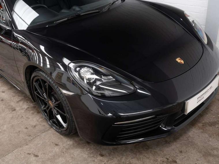 Connect Plus, Apple CarPlay, telephone module, wireless internet access, carfinder, remote vehicle status, remote service, vehicle track, Digital displays for vehicle speed, chosen gear, odometer, trip odometer and clock, Instrument cluster with central rev counter and high-resolution 4.6 inch colour display, Porsche Communication Management (PCM) including online navigation module, mobile phone preparation, audio interfaces and voice control system, 4 valves per cylinder, Aluminium block and cylinder heads, Direct fuel injection (DFI), Gasoline particulate filter, Integrated dry-sump lubrication with an on-demand oil pump, Porsche Doppelkupplung (PDK), Porsche Stability Management (PSM), ABS with extended brake functions, Turbocharger with intercooler, VarioCam Plus variable valve timing and switchable valve lift, Water cooled with thermal management, DAB Digital radio, Integrated compatible SIM including Porsche Connect Services, Wifi and music streaming, Aerodynamic wipers, Automatic headlight activation including welcome home lighting, Automatically extending rear boot spoiler, Body colour bumpers, Electrically adjustable heated exterior mirrors on door waist rails, aspherical on driver's side, Green tinted heat insulating glass, Heated rear windscreen, Intelligent lightweight body in Aluminium/Steel composite construction, Porsche logo on trim strip and model designation on rear apron in high gloss silver colour, Power windows with one touch operation and door seal protection, Separate auxiliary lights in the front end with LED indicators and position lights, Top tinted windscreen, Twin tract sports exhaust system with central tailpipe in stainless steel, Wide opening rear hatch with heated screen, Windscreen washer system with two wiper speeds and washer jets, 12V sockets in passenger footwell and centre console storage compartment, Adjustable fan with air recirculation and defroster functions, Clothes hooks on front seat backrests, Elevated centre console with uncovered storage compartment and closed storage compartment, Front and rear luggage compartments, Front headrests, LED reading lights, orientation, ignition lock, additionally luggage compartment and glove compartment lighting, Smooth finish leather on steering wheel rim, gear lever and door handles, SPORT button to activate dynamic driving settings for engine, transmission (with PDK), Storage compartments in each doors, Three way catalytic converter and on board diagnostics for monitoring emission control system, Two individual cup holders (integral to dashboard trim strip), Electrically controlled parking brake, Front and rear 4 piston aluminium monobloc fixed calipers, disc internally vented and cross drilled, front/rear disc diameter, brake calipers in black, Front and rear lightweight spring strut axle, Full size driver and passenger airbags, Porsche side impact protection doors with thorax airbag in outer backrest side bolster and head airbag for driver/passenger in door panel, Tyre pressure monitoring system, Alarm system with interior surveillance, Anti-theft wheel bolts, Auto start/stop function including coasting (in connection with PDK), Engine immobiliser with in key transponder, central locking and remote control, Tyre sealing compound and electric air compressor kit,