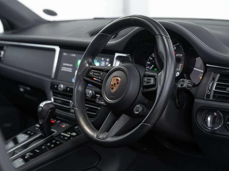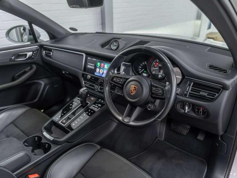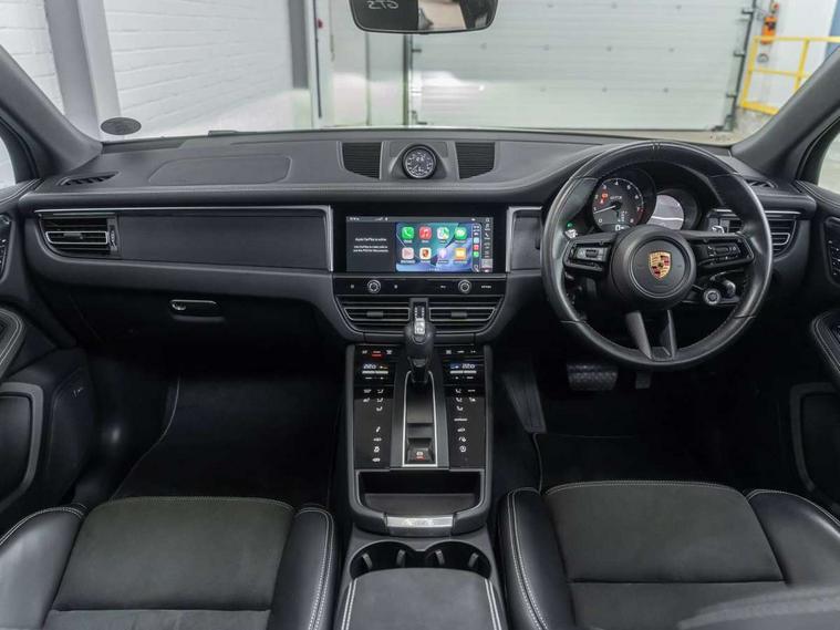 Analogue clock on dashboard, Automatic start/stop system, Automatic tailgate, Digital boost pressure gauge on colour display of instrument cluster, eCall emergency call system, Instrument cluster with high resolution 4.8-inch TFT display, gear indicator for PDK, service interval display, external temperature indicator, fuel gauge, Off-road button, On board computer, Porsche Communication Management (PCM) including online navigation module, mobile phone preparation, audio interfaces and voice control system, Sports button in centre console, 7-Speed Porsche Doppelkupplung (PDK) with automatic mode and manual controls (gearshift paddles) on steering wheel, 75 litre fuel tank, Direct fuel injection (DFI), Gasoline particulate filter, VarioCam Plus variable valve timing and switchable valve lift, 2 USB sockets in rear centre console, Apple CarPlay with Siri voice recognition, Connect Plus including online navigation, LTE communication module with SIM card reader, wireless internet access, Porsche Car Connect services, DAB Digital radio, Porsche Vehicle Traking System Plus (PVTS Plus), Two USB C charging and connectivity ports in the front centre console storage compartment, Active radiator grille shutters, Automatic headlight activation including welcome home lighting, Bumper system with high strength cross members and two deformation elements + One threaded fixture point for towing eye contained in onboard tool kit, Dynamic cornering lights, speed-sensitive headlight and dynamic range control, adverse weather function, four-point LED daytime running lights, Electric front and rear windows with remote closing function + anti trap + one touch, Electrically folding and heated exterior mirrors, Front light modules with LED position lights and direction indicators, Front windscreen wipers with two speeds, intermittent wipe and rain sensor, Front with integrated cooling air intakes, Fully galvanised body, Heated rear window with automatic switch off, High gloss black side window trims, High level 3rd LED brake light integrated into roof spoiler, Loading edge protection in aluminium, Rear side wing doors, Rear window wiper with intermittent function and washer jet, Roof spoiler with fixed double wing design and fin like look in high gloss black, Switchable sports exhaust system, Tinted LED taillights with three-dimensional lighting graphics, integrated fourpoint brake lights and light strip, Towbar preparation, Twin sports tailpipes in black with sports exhaust, 3 adjustable rear headrests, 3 rear seats, 4 way adjustable front head restraints, 40:20:40 split folding rear bench seat, Cloth hook b-pillar, Fold up centre console armrest with fore/aft adjustment, Front and rear bottle holders in door panels, Front passenger seat, Glove compartment, Isofix fastening system for child seats on outer rear seats, Luggage compartment cover, Particle/pollen filter with active carbon filter, Rear armrest with 2 cupholders, Storage bin in centre console, Storage compartment in side of luggage compartment and storage compartment in spare wheel recess, Storage pocket in front and rear doors, Two integrated cup holders in front with variable diameter, Two socket 12V power outlets in front console and luggage compartment, Uncovered storage compartment in centre console, Ambient comfort lighting pack - Macan, Lower exterior trim package in painted exterior colour - Macan, 3-point automatic seatbelts with front and outer rear seats pretensioners and force limiter + manually height adjustable seatbelt + reminder warning, 6-piston aluminium monobloc fixed caliper brakes at front, internally vented brake discs, Auto hold function, Brake discs with diameter of 390mm at front and 356 mm at rear, Child locks on rear doors, Curtain airbags along entire roof frame and side windows from A pillar to the C pillar, Electronic parking brake, Front passenger airbag deactivation facility for installation of child seats indicator in overhead console, Front side airbags integrated into seat, Full size driver and passenger airbags, Multi-Collision braking, Porsche hill control (PHC), PTM(Porsche Traction Management) and All-wheel drive with map-controlled multi-plate clutch, Roll over sensor for curtain airbag and seatbelt pretensioners, Side impact protection in doors, Tyre pressure monitoring system, Vehicle stability system, Porsche stability management (PSM) including ABS, ASR, ABD, MSR and trailer stability management, Vented discs brake with combination floating calipers at rear, Alarm system with ultrasonic interior surveillance, Engine immobiliser with key transponder, Remote control central locking, Accent trims with silver coloured finish, Wheel centres with full colour Porsche crest,