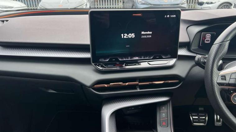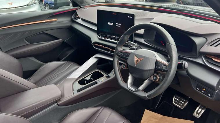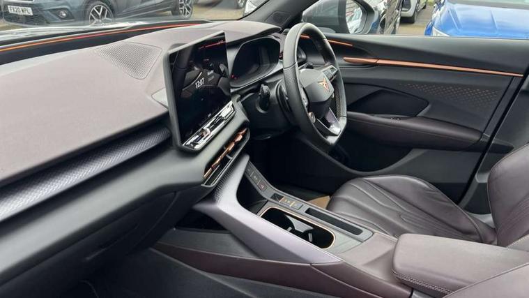 10.25" digital cockpit and configurable dashboard, Adaptive cruise control with follow-to-stop and speed limiter, Advanced driver alert system, Advanced lane assist with semi-automatic vehicle control in a medical emergency and traffic jam assist, Driving profile selection (DCC- Comfort, performance, CUPRA, Individual, Dynamic road sign display, E-call, Electric tailgate with virtual pedal, Emergency steering support with turn assist, Front and rear parking sensors, Front assist (Forward collision warning with automatic braking) with multifunction camera and front cross traffic assist, Head up Display, Intelligent park assist, Media system with Nav - 12.9" touch display, voice control, full link phone (wired/wireless), DAB and Steering wheel mounted controls, Rear traffic assist, Side and exit assist, Speed sensitive power steering, Start/stop system with regenerative braking, Top view camera (front camera, rear camera, 2 side cameras), Wireless phone charger, Adaptive chassis control with a 2-valve shock absorber, Auto dimming rear view mirror, Black roof rails, CUPRA 3D rear lights with ceremony & swiping indicator and illuminated logo, Dark tinted rear windows, Daytime running lights with automatic headlight control and Coming and Leaving home function, Door mirrors with memory function and lowing function on passenger mirror, Electric front/rear windows, Electrically adjustable, heated and folding door mirrors, Front fog lamps with cornering function, Heat reflecting windscreen, High beam assist, Rain sensing wipers, Rear fog light on one side, back up light on both sides, Rear side wing doors, Rear wash/wipe, Third brake light, Welcome lights (within exterior mirror housing), 3 seat bench in 2nd row, Black roof lining, Cupra sports pedals, Driver seat memory function, Electrically adjustable front seats including lumbar support, Four x USB Type C ports (2 in front and 2 in rear), Front and rear head restraints, Front and rear reading lights X 4, Front centre armrest, Heated front seats, Heated leather wrapped multi function sports steering wheel with tiptronic, Illuminated interior front door sills, Isofix, Leather upholstery, Operating voltage 12V, Single front passenger seat, Smart wraparound interior lighting, Sunvisors with illuminated mirror, Three zone climate control with control panel in rear, Unsplit rear seat bench, split folding backrest, with centre armrest, Variable luggage/load compartment floor, Pure performance pack - Terramar, 3 point seatbelts in front with pretensioner and electric height adjustment, 3 point seatbelts on all rear seats, Brake control system - ESC and brake booster, Child proof door locks, Driver and front passenger airbags, Electronic parking brake, Front and rear disc brakes, Front interaction airbag, Front passenger airbag deactivation switch, Front side airbags with curtain airbags, Pre-crash front and rear seat belt tensioner, window closure and hazard lights, Tyre pressure monitoring system, Visual and acoustic seat belt reminder, electric contact in front and rear, Anti theft alarm, Keyless locking and starting system with keyless access, Locking wheel bolts, Black decorative trims, Chrome interior detailing, Performance tyres in polmer coating, Tool kit,