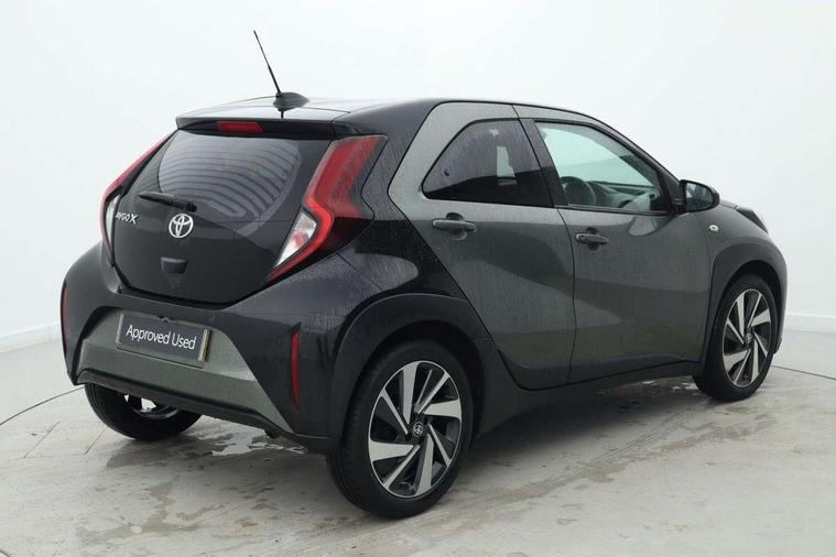 4.2" TFT colour screen, Adjustable speed limiter, Analogue speedometer, Bluetooth connectivity, Digital tachograph, Driver attention alert system, eCall emergency call system, ECO-driving indicator, Electric power steering, Front and rear parking sensors with auto brake, Intersection turn assist, Key reminder warning, Noise reduction kit, Pre collision system with emergency steering assist, Remote boot door release on key, Reversing camera with static guide lines, Smart entry and push button start, Speed limit display, Start and stop, Wireless charger, Wireless Smartphone Integration includes Apple CarPlay and Android auto, Vehicle Stability Control (VSC), 4 speakers, 9" HD multimedia display touch screen with Toyota smart connect, DAB digital audio broadcast, USB connector, Auto headlights, Auto wipers, Automatic headlights cut-off, Automatic high beam On/Off switch, Bicycle towing hook, Black fog light surrounds, Black side protection mouldings, Black wheel arch mouldings, Body colour door handles, Body coloured front bumper, Boot door scuff plate, Eclipse black rear bumper, Electric heated door mirrors, Follow me home headlights, Front and rear underruns in silver, Front fog lights, Front power windows, Gloss black door mirrors, Gloss black upper front grille, Headlight cut-off reminder, LED daytime running lights guide, LED front light guide, LED High mounted stop lamp, LED projector headlights, Manual day/night rear view mirror, Manual headlight levelling, Pagoda roof, Power adjustable door mirrors, Privacy glass, Rain sensor, Rear combination lights LED bulb type, Rear side wing doors, Rear windscreen defogger, Rear windscreen wiper, Remote hazard lights system, Short antenna, Variable intermittent windscreen wipers, 12v power outlet - front, 2 seat bench in 2nd row, 3 spoke leather steering wheel, 50/50 split folding rear seat, Adhesive roof headlining, Adjustable speed limiter switch on steering wheel, Audio and telephone switches on steering wheel, Auto air conditioning, Black roof lining, Body colour satin anodised insert on steering wheel, Boot light, Centre room light, Chrome interior door handles, Chrome surround on air conditioning buttons, Clean air filter, Floor mats, Front and rear cup holders, Front head rest deco art, Front head restraints, Gear shift indicator, Height adjustable driver seat, Intelligent adaptive cruise control switch on steering wheel, ISOFIX child restraint system on rear seats, Lane departure alert switch on steering wheel, Leather gearshift knob, Light blue ambient lighting in centre console, Manual tilt steering wheel, Manually reclining and sliding driver seat, Manually reclining and sliding front passenger seat, Multimedia switches on steering wheel, Paddle shift levers on steering wheel, Partial synthetic leather upholstery, Pollen filter, Rear door pockets, Rear head restraints, Remote air-conditioning system, Satin silver insert on gear shift knob, Single compartment glovebox with lights, Single front passenger seat, Soft tonneau cover, Sun visors with mirror on driver and passenger side, Voice recognition switch on steering wheel, Toyota safety sense pack - Aygo X, Anti lock braking system + Electronic brake force distribution, Child safety door lock, Emergency brake light signal (EBS), Hill start assist control (HAC), Passenger airbag on/off switch, Seat belt reminder for front and rear seats, Supplement restraints system (SRS) - 6 airbags, Traction control, Tyre pressure warning system, Immobiliser, Remote power door locks, Black wheel centre caps, Tyre repair kit,