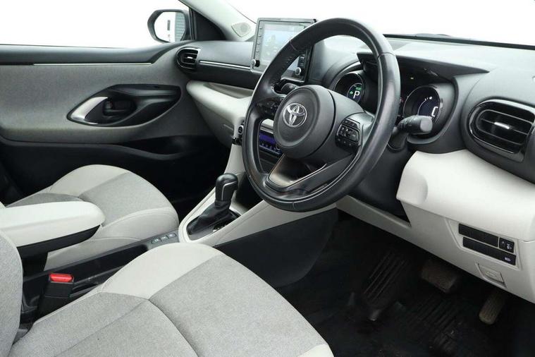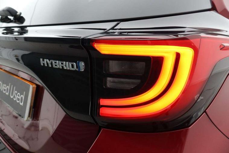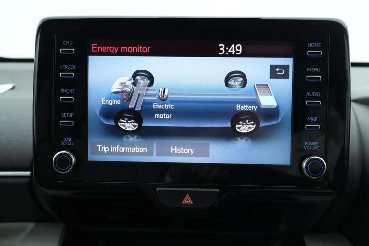Adaptive cruise control, Adjustable speed limit with speed warning, Blind spot monitoring, Bluetooth connectivity, Colour binocular inspired displays with digital speedometer, E-call, Electric power steering, Front and rear parking sensors and intelligent clearance sonar with automatic braking, Hybrid energy display, Multi information display switches on steering wheel, Reversing camera, Smartphone integration with Apple CarPlay and Android auto, Vehicle Stability Control (VSC), 6 speakers, 8" Multimedia display touch screen, Toyota Touch 2 with DAB, USB connection, Acoustic windscreen glass, Automatic headlights, Automatic windscreen wipers with rain sensor, Automatically retractable door mirrors, Body coloured door mirrors, Electric adjustable heated door mirrors, Follow me home headlights, Front auto power windows with anti jam protection, Full LED rear lights, LED daytime running lights, LED front fog lights, LED Headlights, LED High mounted stop lamp, Painted front grille, Rear auto power windows with anti jam protection, Rear privacy glass, Rear side wing doors, Rear spoiler, Rear wiper, Satin lower front grille, Shark fin antenna, Turning signal integrated indicators in door mirrors, 3 adjustable rear headrests, 3 spoke leather steering wheel, 60/40 split folding rear seat, Adjustbale boot height, Coat hooks in rear grab handles, Cup holders (2 front & door), Data Communication Module (DCM) connected services, Dual zone automatic air conditioning, Fabric seat with partial synthetic leather upholstery, Front armrest, Front sport seats, Glovebox, Height adjustable driver's seat, Height adjustable passenger seat, Isofix seat fixing, Leather gearshift, Map pockets on the backs of the front seats, Pollen filter, Shopping bag hooks, Single front passenger seat, Tilt/telescopic steering column, 3 point seatbelts on all rear seats, ABS+EBD+Brake assist, Active headrests, Electronic parking brake, Emergency brake light system (EBS), Front passenger airbag on/off switch, Front seatbelt reminder, Hill start assist control (HAC), Rear child proof door locks, Rear seat belt reminder, Supplemental Restraint System (SRS) 8 airbags: Driver & passenger's airbags, dual side curtain airbags, side impact airbags, front centre airbag, Toyota Safety Sense 2, Precollison + Night time Pedestrian & Cyclist Detection, Lane Trace Assist, Auto High Beam, Intelligent ACC & Road Sign Assist, Tyre pressure warning system, Alarm/immobiliser, Keyless smart entry with push button start, Remote powered central double locking doors, Satin chrome interior styling, Soft touch instrument panel, Space saver spare wheel,