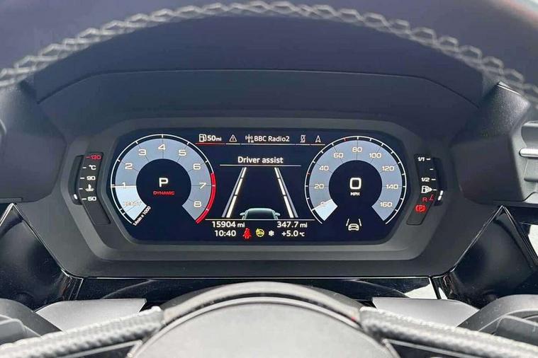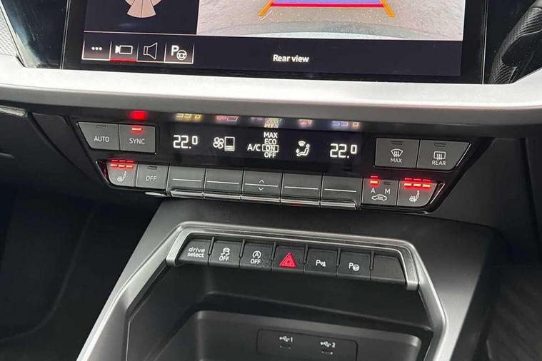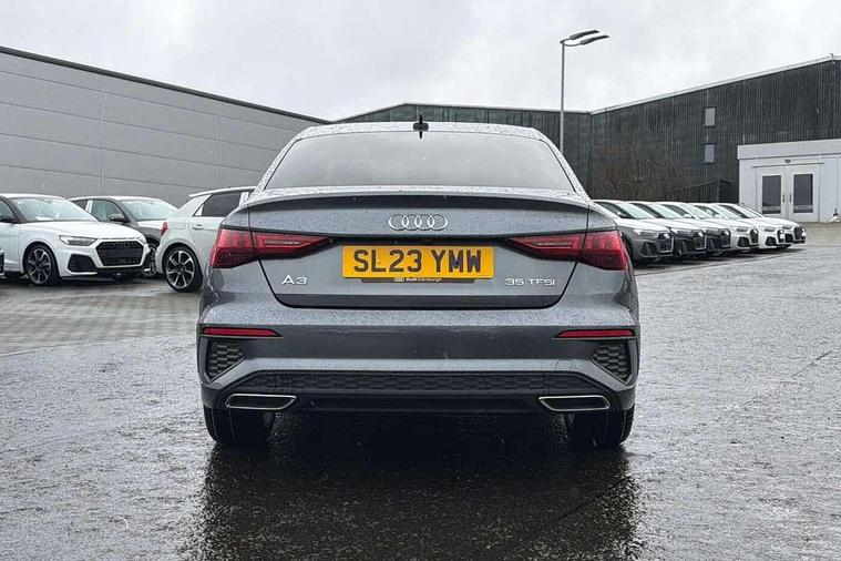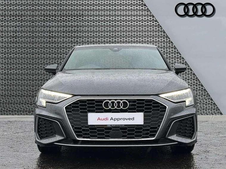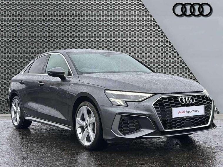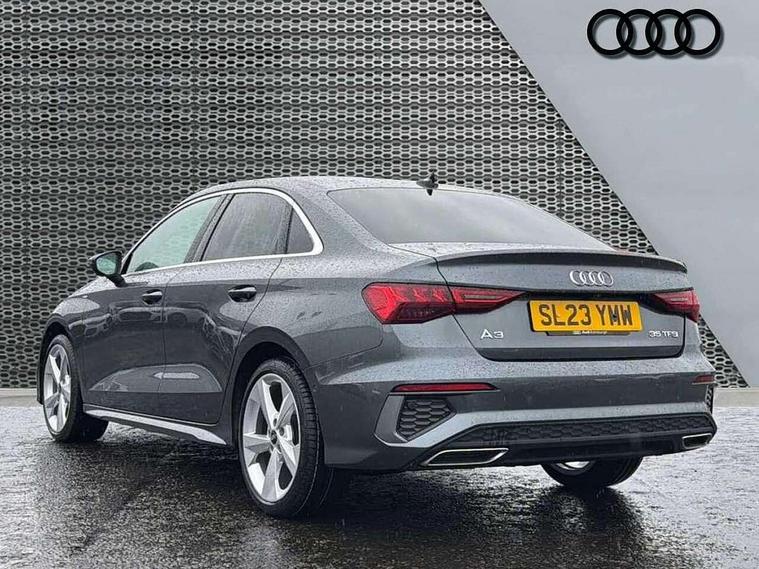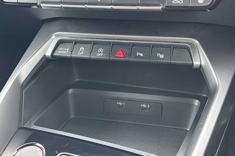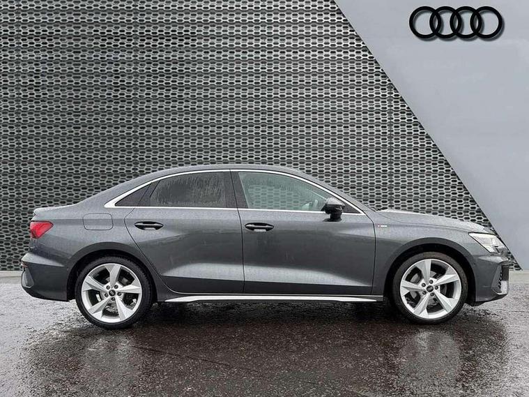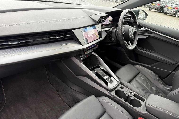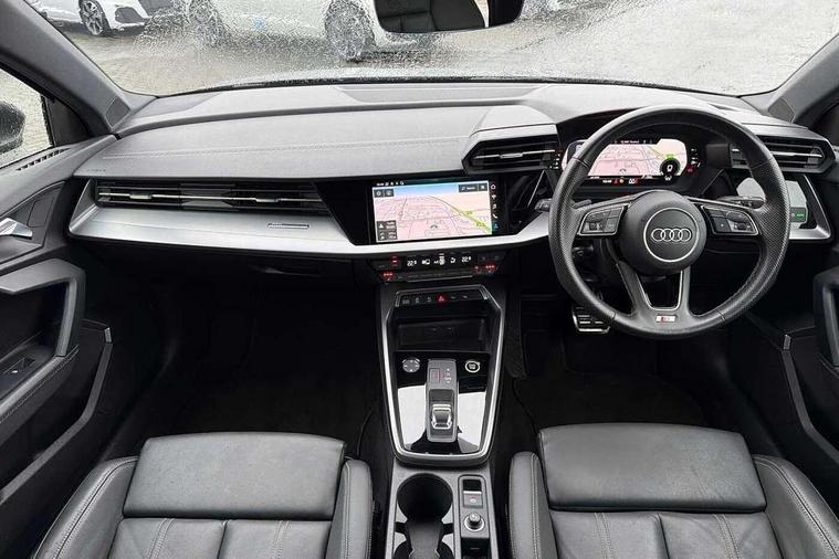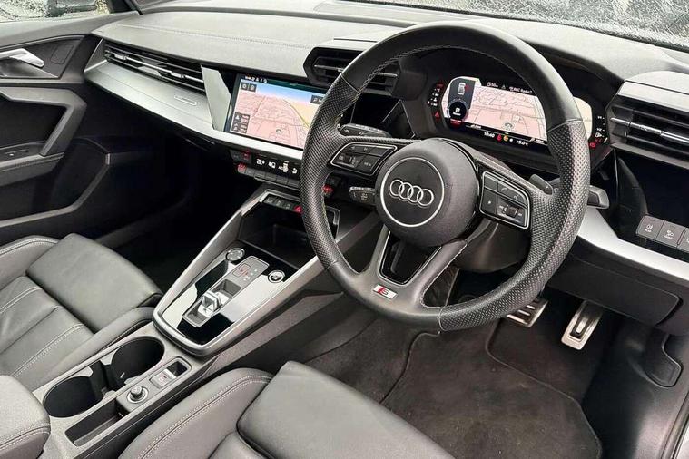 Audi connect emergency call and service, Audi drive select (Auto, Comfort, Dynamic, Efficiency and Individual), Audi smartphone interface, Audi Virtual Cockpit - 10.25" digital and colour instrument cluster, Automatic start/stop system with recuperation, Bluetooth interface, Collision avoidance assistant, Electromechanical power speed sensitive steering, Lane departure warning system, MMI Navigation Plus with high resolution 10.1" colour touch screen display, Service indicator, Voice control system with natural language interaction, Sports suspension, 2x USB Type C ports (for charging and data transfer), 6 passive loudspeakers, CD player, DAB Digital radio, 3rd brake light, Acoustic glass windscreen, Aluminium window trim, Auto dimming frameless rear view mirror, Body colour exterior mirrors, Electrically adjustable/heated/folding/auto dimming door mirrors with integrated LED indications + kerb view function for passenger side, Front electric windows, Illuminated door sills with aluminium inserts at the front with S logo, LED daytime running lights, LED headlights with LED rear lights and dynamic rear indicators, Light and rain sensors, Model and engine designation badges at rear, Privacy glass - dark tinted rear window, rear door and side windows, Rear boot, Rear electric windows, Rear side wing doors, S line bumpers, S roof spoiler, 12V socket and storage compartment in front centre console, 3 seat bench in 2nd row, 3 spoke leather multifunction steering wheel with gear shift paddles, 4 way electrically adjustable lumbar support for driver and front passenger, 60/40 split folding rear seat bench, Black cloth headlining, Dual zone electronic climate control, Front and rear centre armrest in leather, Front and rear headrests, Front/rear floor mats, Height and reach adjustable steering wheel, Interior lighting - glove compartment light and right hand side, Luggage compartment floor covering, Manual boot compartment lid, Manually adjustable front seats, Seat side bolsters, Single front passenger seat, Stainless steel pedals and front footrest in black, Twin leather upholstery with front sports seats S embossed logo, Aluminium interior elements pack - A3, LED interior lighting pack - A3 Saloon, S line styling pack - A3 Saloon, 3x3 point rear seat belts, Driver and front passenger airbag with passenger airbag deactivation, Electronic Stabilisation Control (ESC) including ABS, ASR and EDL, First aid kit with warning triangle and 2 safety vests, Front side airbags with head airbags and interaction airbag, Pre-sense front with pedestrian and cyclist detection, Seatbelt monitoring, Tyre pressure loss indicator, Anti theft alarm, Anti-theft wheel bolts, Electronically operated child locks, Immobiliser, Remote control central locking, Aluminium air vent surrounds, Dark spectrum aluminium inlays, accent surfaces in the dashboard and centre console in platinum grey silk effect paint finish,
