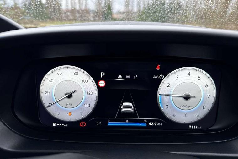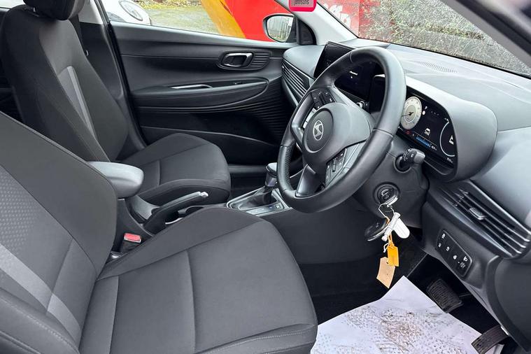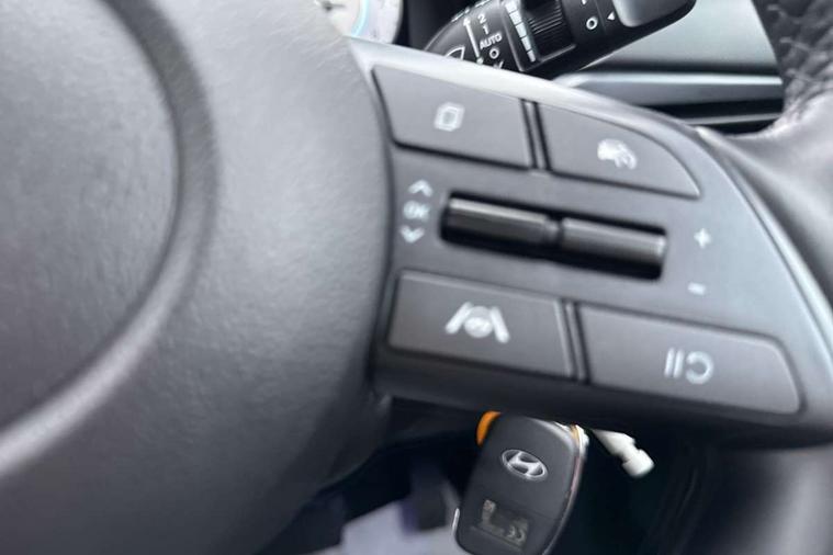 10.25" touchscreen + navigation, 2nd Gen eCall, 8" Touchscreen DAB Radio with android auto and apple carplay, Forward collision assist with car, pedestrian and cycle detection, Front parking sensor, Intelligent speed assist, Intelligent speed limit warning, Lane follow assist, Lane keep assist, MAP OTA updates, PAS, Rear parking sensor, Rear view camera with dynamic guidelines, USB C port front, USB C Port in rear, Automatic headlights with dusk sensor, Electric adjustable heated door mirrors, Electric folding door mirrors, Front grille mesh pattern design, High beam assist, LED 3rd brake light, LED daytime running lights, LED Headlights, LED taillights, Privacy glass - Rear windows and tailgate, Rain sensor, Rear side wing doors, Rear wiper, Repositioned flat metal hyundai emblem, Trailer wiring, 3 seat bench in 2nd row, Adjustable head restraints, Automatic air conditioning, Cloth upholstery, Floor mats, Heated front seats, Heated steering wheel, Leather steering wheel, Multi colour ambient lighting, Single front passenger seat, 3x3 point rear seatbelts, ABS with front and rear diagonally split, Autonomous emergency braking, Child locks on rear doors, Front ventilated disc brakes, Rear solid disc brakes, Tyre pressure monitoring system, 17" Alloy wheels, Tyre repair kit,