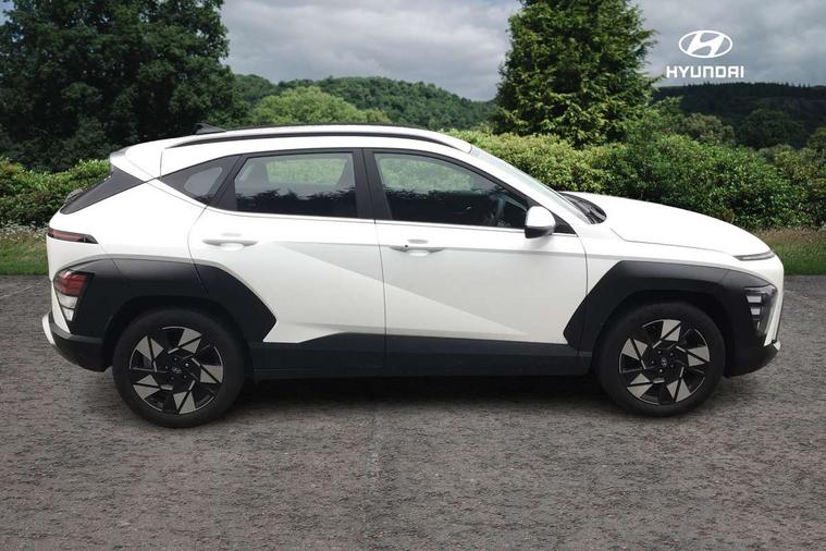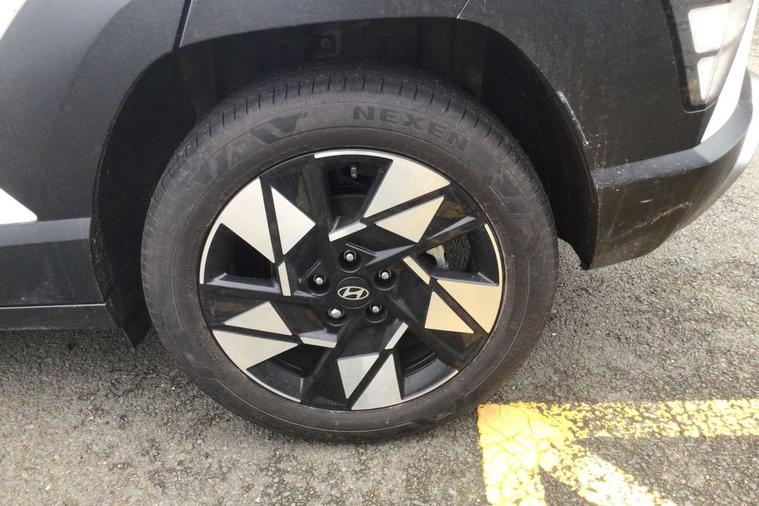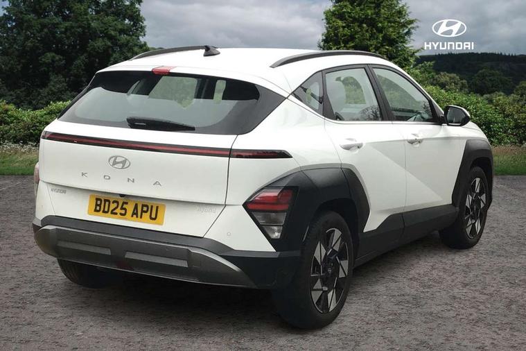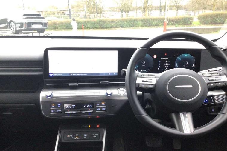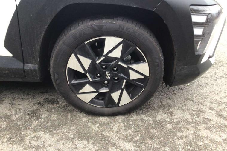 12.25" digital instrument cluster, 12.3" touchscreen centre console display satellite navigation with bluelink, live services and mapcare, Bluetooth connectivity with voice recognition, Driver status monitor (DSM), Driver supervision instrument cluster with 12.3" LCD display, eCall emergency call system, Feature on demand - Enabled, Forward collision avoidance assist (FCA 1.5) - Car, pededstrian, cycle and junction turning, Front parking sensor, HDA - Highway Drive Assist Level 1.5, Intelligent speed limit assist, Lane follow assist, Lane keep assist, Leading vehicle departure alert (LVDA), Parking system with rear camera and guidance system, PAS, Rear parking sensor, Rear view camera with dynamic guidelines, Roadside assistance, Smart cruise control with stop and go functionality, Wireless Smartphone Integration includes Apple CarPlay and Android auto, 2 front USB C and 2 rear USB C charging points, DAB Digital radio, Speakers - Front, rear and tweeters, Steering wheel audio, phone and cruise controls, Auto dimming rear view mirror, Automatic headlights with dusk sensor, Automatic windscreen wipers with rain sensor, Black painted wheel arch inserts, Body colour exterior door handles, Body coloured door mirrors, Door mirror LED indicator lights, Electric front windows with anti-trap mechanism and one touch control, Electric rear windows, Electrically adjustable and heated door mirrors, Full LED MFR headlights, LED daytime running lights, LED taillights, LED upper and lower rear lights, Power folding door mirrors, Rear roof spoiler with integrated LED brake light, Rear side wing doors, Rear skid plate - silver, Rear wiper, Roof rails, Tinted glass in front and rear doors, Windscreen auto defog function, 12V power outlet in front console, 2 zone climate control, 3 seat bench in 2nd row, Adjustable head restraints, Cloth upholstery, Driver and passenger front seat pockets, Driver's seat lumbar support, Driver/passenger manual seat height adjustment, Driver/passenger sunvisors and illuminated vanity mirrors, Floor mats, Height/reach adjustable steering column, Leather steering wheel, LED centre interior light, LED front interior light, Luggage compartment LED lighting, Luggage shelf, Metal paint effect interior door handles, Rear centre armrest with cupholders, Shift by wire SBW, Single front passenger seat, Vertical adjustment rear head restraints, Trailer wiring package - Kona, Airbag - front, front side, curtain and centre front airbag, Anti-lock brake system (ABS), Childproof rear door locks, Downhill brake control, Electric parking brake, Electronic stability control, Fixed 3 point for second row centre passenger seatbelt, Hill start assist control (HAC), Rear seat alert, Tyre pressure monitoring system, Alarm/immobiliser, Rear occupant alert, Remote central locking, Smart key with keyless entry and start/stop button, Five year annual vehicle health checks, 18" Alloy wheels, Temporary mobility kit (TMK),