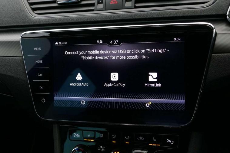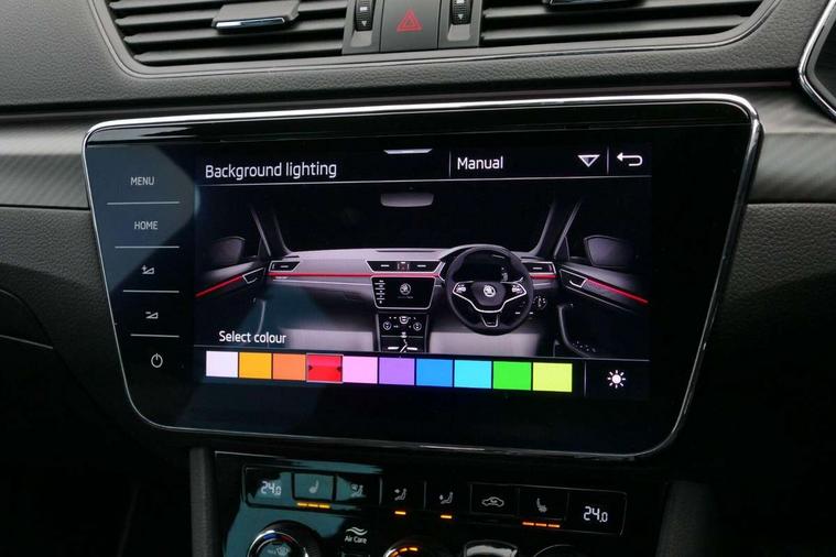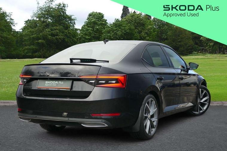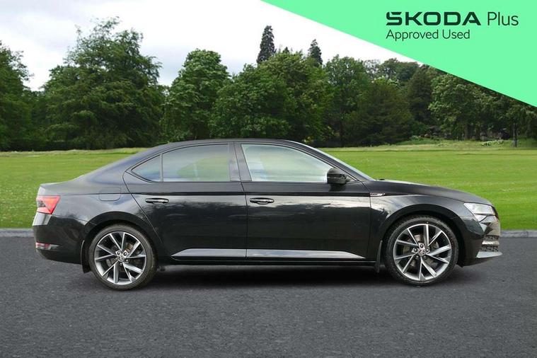 Bluetooth system, CareConnect and Emergency Call, Columbus HDD satellite 3D map navigation with 9.2" colour touch screen, web radio, integrated Wi-Fi, Driver fatigue sensor, Front assist with pedestrian protection, Progressive dynamic steering, Stop/start engine system and energy recovery, Virtual cockpit, Voice control system, Wireless smartlink apple carplay, SmartLink+ android auto, XDS+, 2 USB ports, Bolero radio with 8" touchscreen display, DAB Digital radio, 3rd brake light, Aero front windscreen wipers with intermittent function, Auto dimming rear view mirror, Black rear badge, Body colour door handles, Cornering front fog lights, Electrically adjustable heated and folding door mirrors with memory function, Front and rear electric windows, Full matrix LED headlights with AFS LED DRL integrated with headlight washer LED rear lights(High function), dynamic indicators and lighting animation, Gloss black exterior door mirrors with sports styling including front grill, side strip and window surrounds, Gloss black grille surround with gloss black rib elements, Gloss black rear spoiler, Gloss black strip between rear lights, Light assistant (coming/leaving home/tunnel light), Privacy glass, Rain sensor, Rear exhaust diffuser styling elements, Rear side wing doors, Sport Line badging, 12v power point in centre console, 3 seat bench in 2nd row, Black roof headlining, Black textile floor mats, Carbon optic interior elements, Electric auxiliary air heater, Front and rear footwell illumination, Front armrest with storage box, Height adjustable front and rear head restraints, Ice scraper, Illuminated and cooled glovebox, Interior lights with control switches, Isofix child seat fittings on outer rear seats, LED front and rear reading lights, Microsuede/leather upholstery with silver diamond stitching sports seats, One umbrella compartments in driver door with one umbrella in drivers door, Overhead glasses storage compartment, Rear centre armrest with cupholders, Removable parcel shelf, Single front passenger seat, Split folding rear seats, Storage compartment with cover in luggage compartment side panels, Ticket holder on A Pillar, LED package plus - Superb, 3 rear seatbelts, 7 airbags - Front, front side, curtain, driver's knee airbag with front passenger deactivation switch, Driver and passenger seatbelts with warning light, Electronic parking brake, ESC including ABS, EBV, MSR, ASR, EDS, HBA, DSR, RBS, CBC, multi-collision brake (MKB) and Auto hold, Hill start assist, Power operated child lock in rear doors, Tyre pressure monitor, Alarm with interior monitoring tilt sensor and back up horn, Electronic engine immobiliser, Keyless entry and start/stop, Remote central locking with SAFE system, Third remote key,