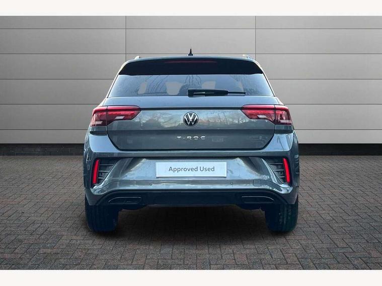 10.25" Digital cockpit pro, Bluetooth mobile phone interface, Driver alert system with fatigue detection, Driver tips and journey analysis, Emergency call service, Lane keeping system Lane Assist, Modified key software - reduce switch off time for key status change to Long no motion, Online services, Park assist including front and rear parking sensors, Service interval indicator, Tailgate/trunk lid release from outside, Think blue trainer driver tips and journey analysis, Warning sound and light for front seatbelts unfastened, Wireless app connect, Battery regeneration during braking, Start/stop function with battery regeneration, Diversity antenna for FM reception, Front and rear 6 speakers, Music playback - MP3, WMA and AAC files, Premium USB cable in choice of either Apple or Android smartphone compatibility, SD card slot, Simultaneous pairing of 2 compatible mobile devices, Title and cover art display, We Connect and We Connect Plus functionality, 3rd brake light, Auto dimming interior rear view mirror, Automatic hazard lights activation under emergency braking, Automatic headlight control with LED separate daytime running lights with coming/leaving home function, Extended roof spoiler, Exterior mirrors aspherical on driver side, convex on front passenger side, External USB type C socket and charging sockets, Front windscreen wiper with intermittent wipe and 4 position delay, Heated rear window, LED Plus headlamps, LED rear combination lamps, LED rear number plate lights, LED tail lamp rear comination lamps, Power windows with comfort operation and circuit breaker, R-Line design body coloured bumpers, Rain sensor, Rear exhaust tailpipe, Rear fog light on one side and reversing lights on both sides, Rear side wing doors, Rear wash/wipe with intermittent wipe setting, Remote electrically foldable door mirrors, puddle lights and reverse activated passenger's door mirror, 12V power socket in centre console, 3 rear head restraints, 3 seat bench in 2nd row, 4 load lashing points in luggage compartment, Air care climatronic air conditoning system with active combination filter and 2-zone temperature control, Black roof lining, Chrome plated radiator grille inserts, air vent surrounds and light switch surrounds, Door and side trim panel with leatherette insert, Drawer under drivers seat, Front + rear carpet mats, Front centre armrest, Front cupholders x 2, Front footwell illumination, Front reading light, Front scuff plates with R logo, Instrument lighting, white adjustable panel illumination, Interior ambient lighting and surround lighting, Interior light delay, Isofix child seat preparation, Leather gearshift handle, Load-through provision with cup holder when folded down ('Unsplit rear seat bench, split folding backrest, with centre armrest), Luggage compartment lighting, Single front passenger seat, Stainless steel pedals, Storage compartment in left and right luggage area, Storage compartment in rear doors, Storage compartments in driver and front passenger doors, Sunvisors with illuminated vanity mirrors, Variable boot floor, height adjustable and removable, Driver assistance pack without proactive passenger protection - T-Roc, 3 point height adj front seatbelts + pretensioners, 3 point seatbelts in outer rear with ECE label, ABS, Child locks on rear doors, Driver and front passenger airbag with front passenger airbag deactivation, Driver and front passenger safety-optimised head restraints, Drivers seatbelt reminder, Electronic parking brake, Electronic Stability Control (ESC) inc EDL (Electronic Differential Lock) and ASR (Traction Control), Front and rear passengers curtain airbag system including front side airbags, Front assist with city emergency braking and pedestrian monitoring, Front seat side impact airbags, Hill start assist, Predictive pedestrian protection, Rear disc brakes, Single tone horn, Tyre pressure loss indicator, Volkswagen roadside assistance, Alarm with interior protection, Anti-theft alarm system with interior monitoring, backup horn, and towing protection, Remote central locking with SAFELOCK, radio remote control with 2 remote control folding keys, Trims for alloy wheels,