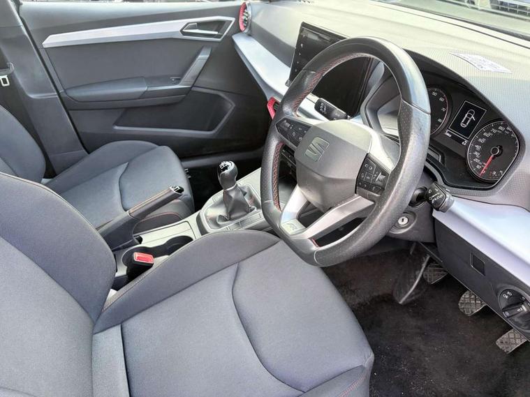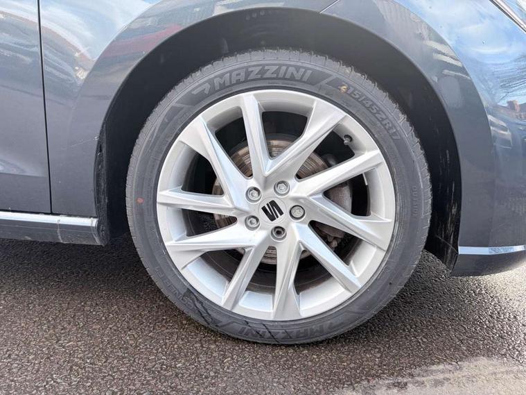 'Lights On' Reminder warning buzzer, 9.2" touchscreen navigation system with type C USB socket, Voice control and DAB/AM/FM radio, Auto start and stop system, Bluetooth audio streaming with handsfree system, Digital clock, E-call, Full link smartphone integration with mirror link, wireless apple carplay, Google android auto + USB Type C cable for apple and android devices, Lane assist, Low fuel warning light, Outside temperature gauge, Power Steering, Seat connect with safety, service, remote and online, SEAT drive profiles and ECO function, SEAT logo boot release, Speed limiter, Trip computer, Sports suspension, Auxiliary input socket, Radio/MP3 player, SD card slot, Steering wheel mounted controls, Anti theft roof antenna, Auto dimming rear view mirror, Automatic rain sensing wipers, Black door mirrors, Body colour bumpers, Body colour door handles, Brilliant black window surrounds, Dark tinted rear windows, Electric adjustable/heated/folding door mirrors, Electric front windows, Electric headlight adjustment, Electric rear windows, Front/rear fog lights, FULL LED automatic headlights with dynamic headlight range control, coming and leaving home, LED daytime running lights, LED tail lights, Rear roof spoiler with FR twin exhausts, Rear side wing doors, Rear wiper, Third brake light, 3 seat bench in 2nd row, 60/40 split folding rear seat, Ambient interior lighting, Chrome detailing and black headlining, Cloth upholstery, Dual zone climate control with combination filter, Front courtesy lights, Front cupholders x 2, Front reading lights, Gear shift indicator, Glovebox, Height adjustable front and rear headrests (five), Height adjustable front seats, Height/reach adjust steering wheel, Illuminated air vent surrounds, Illuminated boot, Instrument lighting with brightness control, Isofix, Leather multifunction flat bottomed sports steering wheel, Passenger sunvisor, Single front passenger seat, Sports seats, Sunvisors with mirror and driver side card holder, 3 point seatbelts on all 3 rear seats, ABS, Active front headrests, Child locks on rear doors, Electronic stability control, Energy recovery system, Front assist forward collision warning and autonomous emergency braking, Front driver and passenger side airbags with curtain airbag and front passenger airbag deactivation, Hill hold control, Multi-Collision braking, Seat belt reminder for front and rear seats, Tiredness recognition system, Tyre pressure monitoring system, Electronic engine immobiliser, Locking wheel bolts, Perimeter alarm and interior monitoring with backup horn and tow away protection, Remote central locking + deadlocks, 17" Alloy wheels in Brilliant silver,