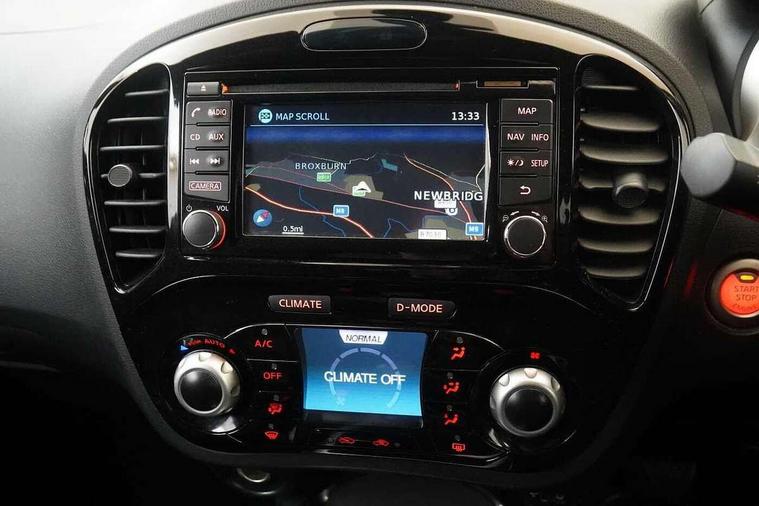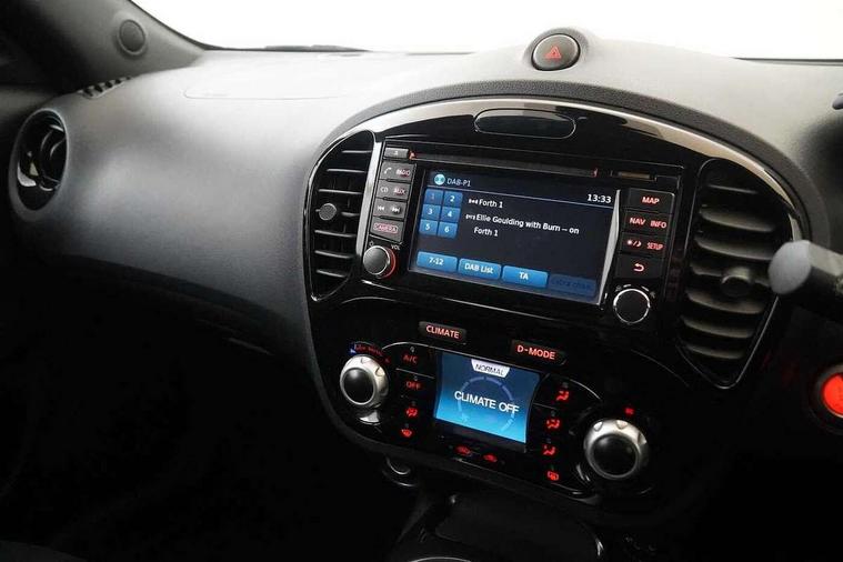 Bluetooth system, Colour rear view camera, Cruise control + speed limiter, Electric speed sensitive power steering, Nissan connect sat nav system, Push button starter, Service interval indicator, Trip computer, 6 speakers, Aux input, DAB Digital radio, Steering wheel mounted audio controls, Stereo radio/CD player and MP3 facility, USB port, 2 speed wipers+variable intermittent wipe, Automatic headlights, Body colour bumpers, Body colour door handles, Electric door mirrors, Electric folding door mirrors, Electric front/rear windows, Front fog lights, Heated door mirrors, LED daytime running lights, Privacy glass, Rain sensor, Rear wiper, 12V socket, 60/40 split folding rear seat, Artificial leather/suede upholstery, Climate control, Front armrest, Front cupholders x 2, Front door pockets with bottle holders, Front head restraints, Front seat belt pre-tensioners with load limiters, Gear shift indicator, Glovebox, Height adjustable driver's seat, Internal chrome door handles, Isofix child seat preparation, Leather steering wheel and gear knob, Luggage area under floor storage box, Map reading lamp, Passenger seat back pocket, Pollen filter, Rear headrests, Rear tonneau cover integrated into tailgate, Sports seats, Steering wheel rake adjustment, ABS + EBD + EBA, Child locks on rear doors, Driver and passenger airbags, Driver and passenger side airbags, ESP + traction control, Front and rear curtain airbags, Height adjustable front seatbelts, Passenger airbag deactivate switch, Three 3 point rear seatbelts, Tyre pressure monitoring system, VDC Dynamic Vehicle Control, Warning triangle and first aid kit, Alarm, Immobiliser, Intelligent Key, Remote central locking, 17" Sport alloy wheels, Tyre repair kit,