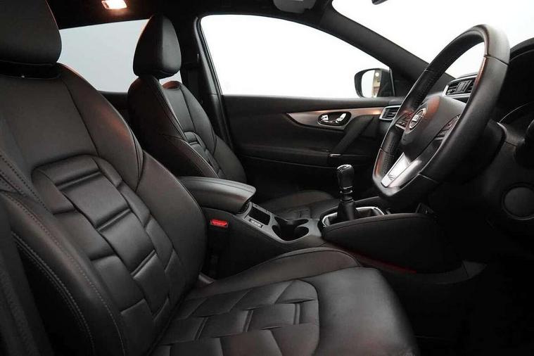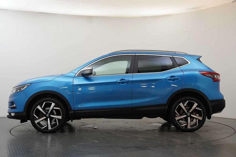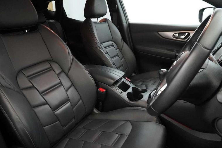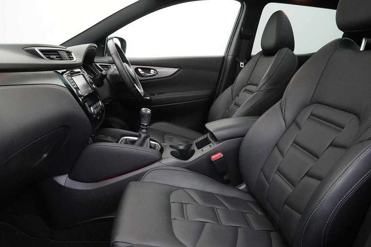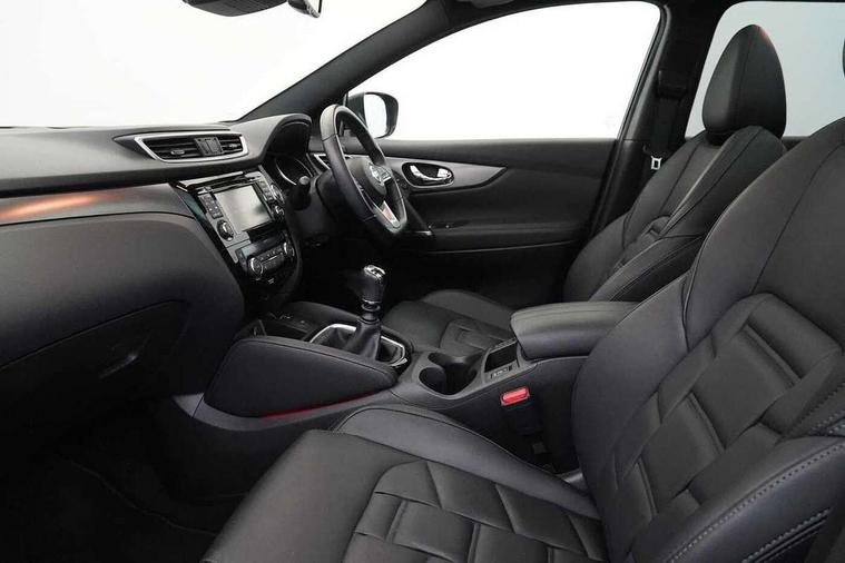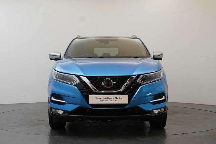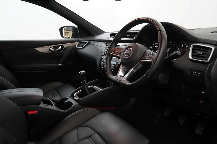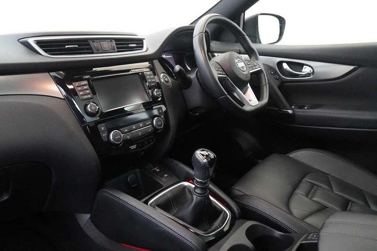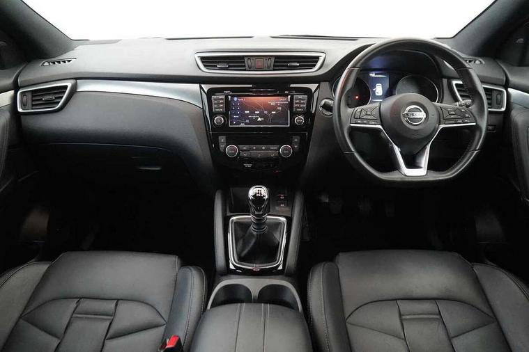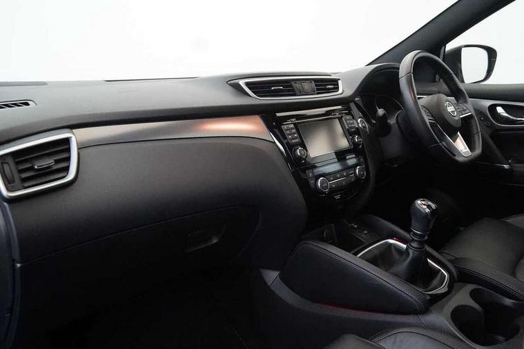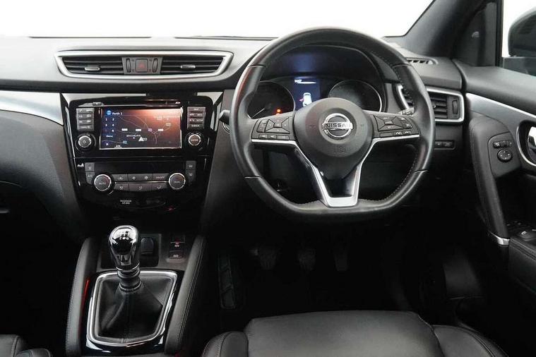Advanced drive assist display 5'' TFT coloured screen, Android Auto, Apple CarPlay preparation, Bluetooth connectivity, Cruise control + speed limiter, Electric speed sensitive power steering, Front parking sensors, Intelligent around view monitor, Intelligent parking assist, Lane departure warning system, Nissan connect evo 7" touchscreen navigation and entertainment system, Normal or sport selectable steering, Outside temperature sensor, Push button starter, Rear parking sensors, Rear view camera, Service interval indicator, Smartphone integration, Stop/start system, Tomtom connected services, Traffic sign recognition, Trip computer, Voice control system, Nissan chassis control (intelligent ride control, intelligent trace control, intelligent engine brake), AM/FM radio, CD audio system, Aux-in socket, Bose premium 8 speaker system, DAB Digital radio, Steering wheel mounted audio controls, USB port, Anti dazzle rear view mirror, Auto wipers, Body colour bumpers, Body coloured door handles, Chrome window surround, Daytime running lights dip function when turn signal applied, Electric folding door mirrors, Electric front and rear windows with one touch illuminated window controls, Electric front/rear windows, Electrically adjustable door mirrors, Front fog lights, Gloss silver door mirror caps, Heated door mirrors, High beam assist, Intelligent auto headlights, LED indicators in door mirrors, Matt silver roof rails, Panoramic sunroof with one touch shade, Privacy glass, Rear roof spoiler, Rear wiper with reverse link, Shark fin antenna, Underbody vortex generators, 2 X front 12v power sockets, 3 height adjustable rear headrests, 60/40 split folding rear seat, Ambient lighting in centre console, Boot lighting, Centre console storage box/armrest, Chrome interior door handles, Configurable luggage board system, Dark headlining, Dual zone climate control, Electric 4-way lumbar support for drivers seat, Electrically adjustable driver seat, Electrically adjustable passenger seat, Front and rear door pockets with bottle holders, Front and rear seat belt pre-tensioners with load limiters, Height adjustable front headrests, Individual rear seat reading lights, Leather D shaped steering wheel, Leather gear lever, Leather knee pad, Manual lumbar support on passenger seat, Map reading lamp, Memory for drivers seat/door mirrors, Monoform front seats with plastic backboard, One touch electric shade, Parcel shelf stow function under luggage board, Pollen filter, Rear armrest with 2 cupholders, Synthetic leather wrapped door handle with contrasting stitching, Tilt/telescopic adjustable steering wheel, Heat package - Qashqai, LED pack - Qashqai, Safety shield plus pack - Qashqai, 6 airbags - Driver, front passenger, curtain and side airbags, ABS, ESP, EBD and brake assist, Auto hold function, Child locks on rear doors, Electronic parking brake, Front and rear seat belt warning, Front passenger airbag deactivation, Height adjustable front seatbelts, Hill start assist, Intelligent emergency braking with pedestrian recognition, Three 3 point rear seatbelts, Tyre pressure monitoring system, Anti-theft immobiliser, Intelligent Key, Remote central locking, Thatcham Cat.1 alarm, Carbon graphite dash trim, Tyre puncture repair kit,
