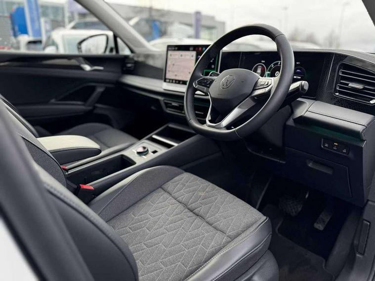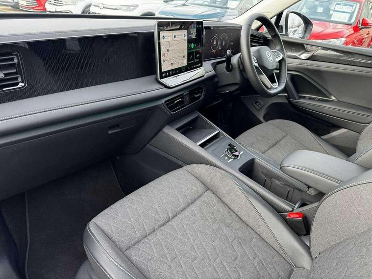Adaptive cruise control (ACC), Advanced driver attention and drowsiness monitor, Bluetooth mobile phone interface, Car2X technology, Digital Cockpit Pro - 10.25" high resolution dash display screen with customisable menus and information, Dynamic road sign display, E-Sim card for online connectivity, eCall emergency call service, Front Assist - Autonomous emergency braking with pedestrian and cyclist monitoring, Lane change system, Side assist, Rear traffic alert and Exit warning system, Lane keeping system Lane Assist, Oncoming vehicle braking when turning including swerve support, Park assistance plus with front and rear parking sensors, Power assisted steering with speed sensitive, Start/stop system with regenerative braking, Warning signal and warning light for front and rear seatbelts not fastened, Wireless App-Connect, Front wheel drive, Digital radio reception (DAB), Diversity antenna for FM reception, Auto dimming interior rear view mirror, Automatic headlight control system, Body coloured bumpers and air intake with chrome trim, Body coloured door handles, Body-coloured exterior mirror housings, Coming/leaving home lighting function, Heat insulating glass in side and rear windows, Heat insulating windshield, Heated rear window, High level 3rd brake light, Illuminated door handle recesses, Illuminated lightline between headlamps, Puddle lights and reverse activated passengers door mirror, Rain sensor windscreen wipers, Rear fog light on one side, reversing light on both sides, Rear side wing doors, Rear wiper, 12V outlet in center console rear and in luggage compartment, 12V socket in centre console, 3 bench rear seats in 2nd row, Air care climatronic 3 zone air conditioning system with rear air conditioning control panel, Carpet mats, front and rear, Ceramique headlining, Door and side trim panel in foam film and woven fabric, Front centre armrest, ISOFIX anchors for child seats on outer rear seats and front passenger seat compatible with i-Size, Mechanical rear seat release, Power adjustable lumbar support in front, Rear bench seat, split folding, longitudinally movable and folding with load-through hatch and centre armrest, Safety optimised front head restraints, Single front passenger seat, Sun visors with illuminated vanity mirrors, Three rear head restraints, Variable luggage compartment floor, Comfort package with park assist plus and Safelock - Tiguan, Design package - Tiguan, 3 point seat belt for centre rear seats, 3 Point seat belts in front with pretensioners, 3 point seatbelts in outer rear with ECE label, Driver and front passenger airbag with front passenger airbag deactivation, Electronic parking brake with auto hold, Front and rear curtain airbags, Front and rear side airbags, Front centre airbag, Front disc brakes, Hill start assist, Manual child proof rear door locks, Rear disc brakes, Two tone horn, Warning triangle, Soul instrument panel,