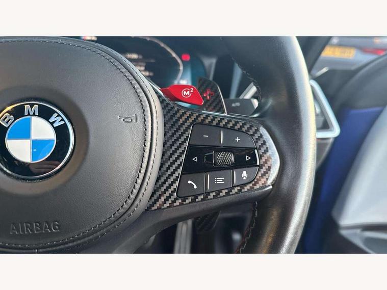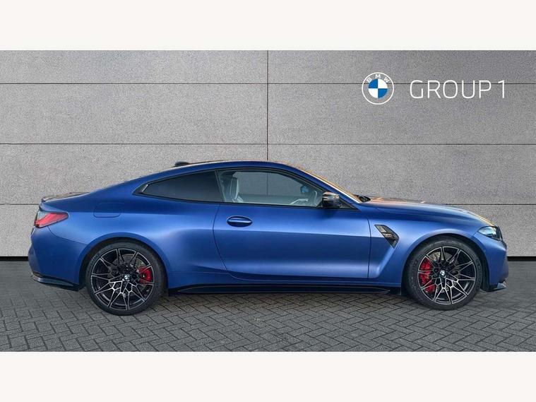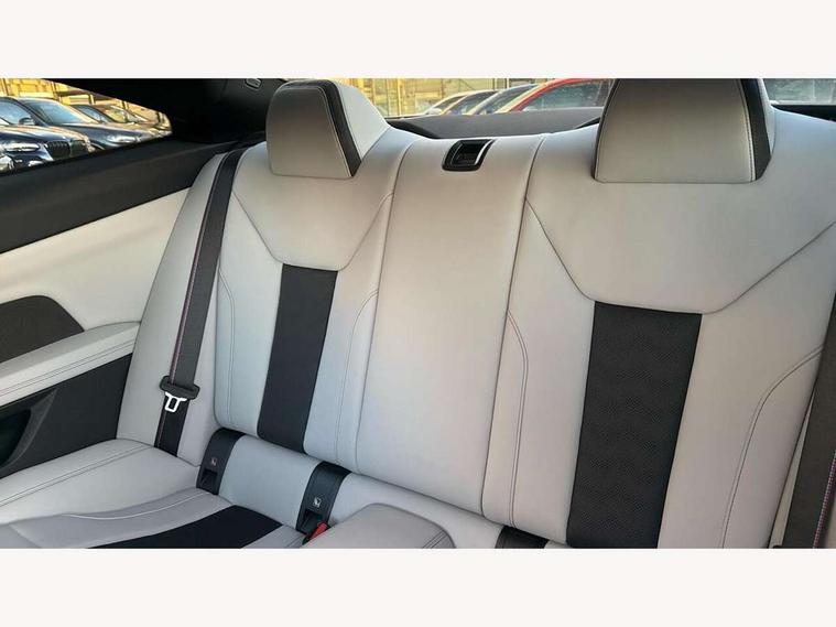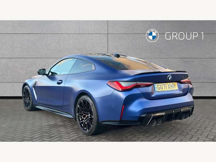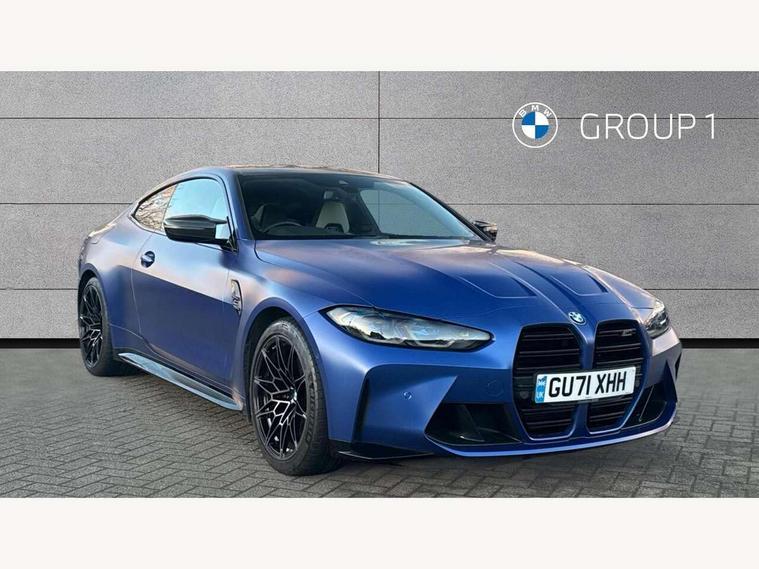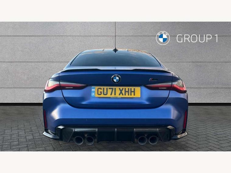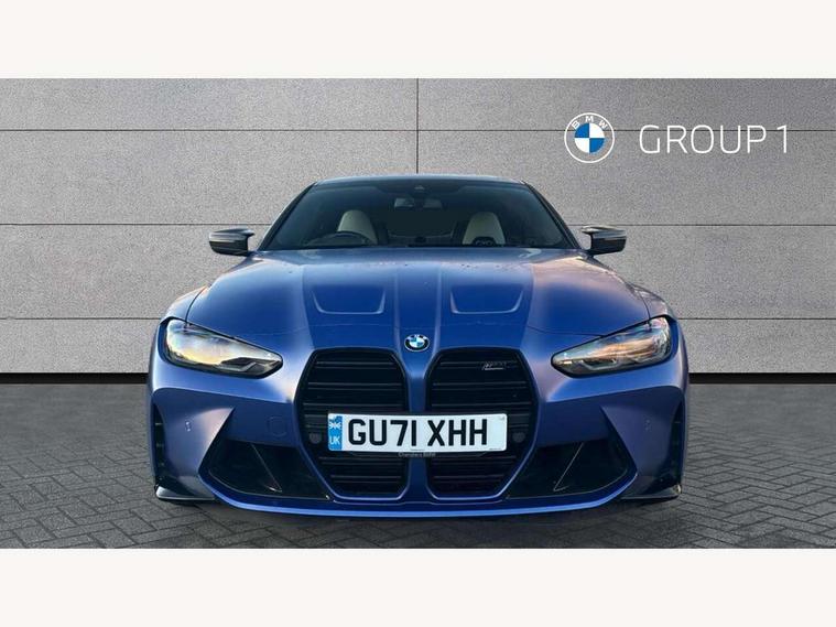 Automatic start/stop system, Bluetooth with USB, BMW gesture control, BMW iDrive controller on centre console, BMW legal emergency call, BMW Live Cockpit Professional sat nav system with 12.3" instrument display and high resolution control display, BMW Online services, BMW Teleservices, Brake pad wear indicator warning light, Door/boot open warning light, Electric Power Steering (EPS) with Servotronic, Head up Display, Instrument cluster with extended contents, Lights on warning, Oil sensor for level and grade, warning by check control system, Oil temperature gauge, On board computer, On board diagnostics, Optimum shift indicator, Outside temperature display, Pull away assistant, Run flat indicator, Service interval indicator, Speed limiter, Adaptive M Sport suspension, M Drive Professional including track mode, laptimer, traction control & Drift analyser, M Sport differential, M steptronic sport transmission with drivelogic, 8 programmable favourite buttons, Auxiliary point for auxiliary devices, BMW professional radio/CD/MP3, DAB Digital radio, Harman/Kardon loudspeaker system, Auto dimming driver's door mirror, Auto dimming rear view mirror, Automatic headlights + automatic windscreen wipers, Black chrome exhaust tailpipes, Black model designation badges, BMW high gloss shadow line with extended contents, BMW Individual shadowline lights, Body colour bumpers, Body colour door handles, Carbon fibre reinforced plastic (CFRP) roof, Day time running light, Door mirror integrated indicators, Door sill finishers with aluminium inserts, Dynamic brake lights, Electric adjustable heated door mirrors, Electric folding door mirrors, Follow me home headlights, Front and rear bumper system, Front electric windows with open and close fingertip control, anti trap facility and comfort closing, Heat protection, sun protection glazing, Heated rear window with automatic switch off, High beam assistant, High gloss black frameless kidney grille with M badge, LED number plate light, LED tail lights with 3D L-shaped LED light design, M designation, Mirror glass aspheric on driver's side, convex on passenger side, Rear fog lights, Rear reflectors, Shark fin roof aerial, Visible VIN plate, Welcome lighting, Windscreen wipers with integrated washing jets, 12V power socket in front centre console with blanking plug, 2 cupholders in front centre console, 2 rear head restraints, 40:20:40 manually split folding rear seat with two tilt positions for backrest, Ambient lighting, Anthracite headlining, Carbon fibre centre console incl. cover for cupholders, Carbon fibre decorative steering wheel finishers, Carbon fibre shift paddles, Carbon fibre strip in instrument panel on front passenger side, Compartment in front of cupholder, Driver/passenger sunvisors with illuminated vanity mirrors + covers, Electric front seats + driver memory, English handbook, Footwell lighting, Front and rear door exit lights, Front door storage bins with bottle holder, Front interior light, Front isofix attachment + airbag deactivation, Front seat backrest width adjustment, Front seats lumbar support, Front/rear door armrests, Gearshift lever with embossed M badge, Heated front seats, Height adjustable front headrests, Interior mirror lighting, Isofix on 2nd row outer seats, Lockable/illuminated glovebox, Luggage compartment lighting, Rake/reach adjustable steering wheel, Storage compartment in rear doors, Storage tray and compartment with cover in centre console, Three zone automatic air conditioning, Toolkit located in luggage compartment, Additional storage compartment pack - M4, Connected package professional - M4, High gloss shadowline exterior trim pack - M4, 4 x 3 point seatbelts, ABS/EBD, Automatic Stability Control (ASC), Brake energy regeneration, Brake fade compensation, Compound structure brake discs, Cornering brake control (CBC), Crash sensor, Driver/Front Passenger airbags, Dry braking, Dynamic brake control, Dynamic Stability Control with M Dynamic mode, Dynamic Traction Control - DTC, Electromechanical parking brake, Front and rear head airbags, Front seat side impact airbags, Front seatbelt pretensioners + load limiters, Hill start assist, M Sport seat belts, Seatbelt warning, Side impact protection, Two tone horn, Tyre pressure sensor, Warning triangle and first aid kit, Electronic immobiliser, Remote central locking, Thatcham cat 1 remote alarm, Vehicle Key with 4 buttons including the integrated key, Galvanic finish to control surrounds, High gloss black interior trim, Tyre repair kit,