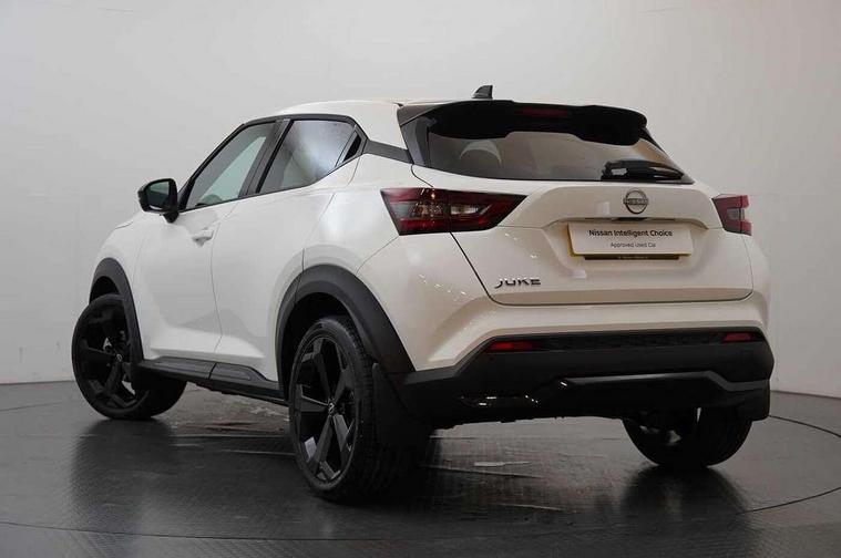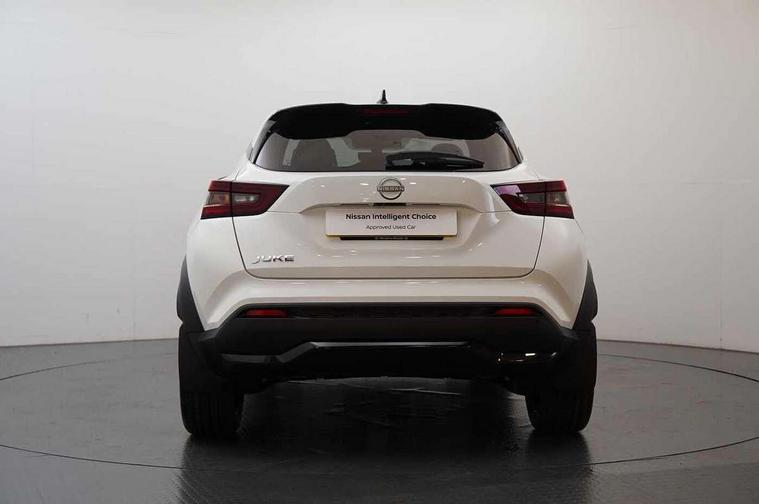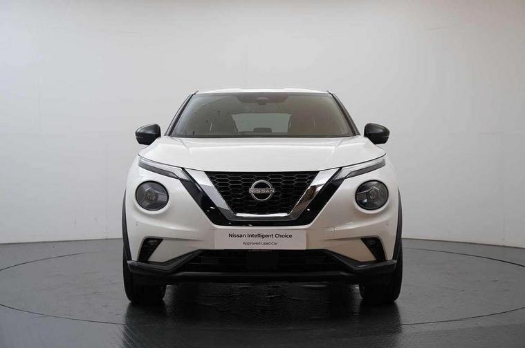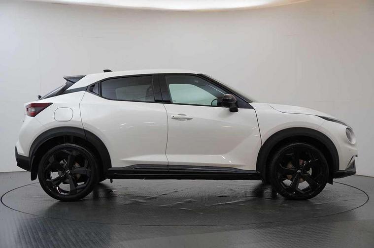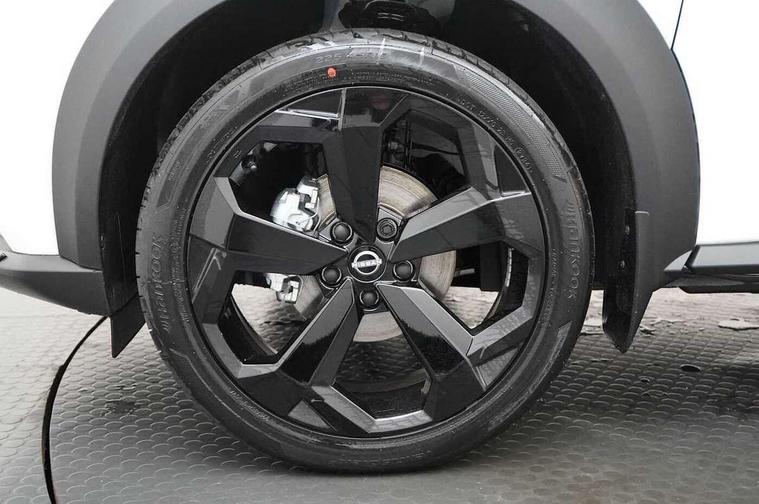 12.3" full colour TFT screen combimeter, Drive modes select (Eco, normal and sport), Emergency and breakdown call, Front parking sensor, Idle start/stop system, Intelligent driver alert system, Intelligent lane intervention, Lane departure warning system, Nissan connect 12.3" touch screen entertainment system, Nissan connect nav with TomTom traffic, Nissan connect services, Outside temperature sensor, Power Steering, Rear parking sensor, Stop/start button, Traffic sign recognition, Trip computer, Voice recognition, WiFi connectivity, Wireless Apple CarPlay and Google Android auto, Wireless Smartphone charger, 10 Bose speakers 8 speakers and 2 headrest speakers for driver/passenger seats, 2 X Rear console USB port, Bluetooth system, USB, Aux-in and 12V socket, Bose personal plus audio system, DAB Digital radio, Auto dimming frameless rear view mirror, Automatic hazard signal with emergency stop signal, Body colour door handles, Electrically adjustable door mirrors with integrated indicators, Follow me home headlights, Front and rear electric window with one touch driver window, High beam assist, LED 3rd brake light, LED daytime running lights, LED front fog lights, LED headlamps, LED rear fog lamp, LED rear lamps, One touch passenger window, Rear privacy glass, Rear side wing doors, Rear wiper, Roof spoiler, Shark fin roof antenna in solid Black, Solid black door mirrors, Three blink turn signal, 3 height adjustable rear headrests, 3 seat bench in 2nd row, 60/40 split folding rear seat, Card holder on driver sunvisor, Door ambient lighting, Driver seat back pocket, Driver side rear coat hanger, Driver/passenger sunvisors and vanity mirrors, Front and rear cabin lights, Front armrest, Front door pockets with bottle holders, Front head restraints, Front/rear passenger grab handles, Gear console ambient circle lighting, Height adjustable driver's seat, Internal chrome door handles, Luggage board, Luggage space lighting, Monoform sporty seats, Multifunction steering wheel, Passenger seat back pocket, Rear door bottle holders, Single front passenger seat, Smooth synthetic leather steering wheel, Synthetic leather kneepad, Synthetic leather shift knob, Synthetic leather upholstery, Telescopic steering wheel adjustment, Two cupholders in front centre console, Two rear isofix child seat anchorage points with top tether, Welcome light and console tray ambient lighting, Advanced safety shield pack - Juke Manual, Comfort pack - Juke, Heat pack with height adjustable passenger seats - Juke, ABS with EBD and brake assist, Active ride control, Active Trace Control, Driver and passenger airbags, Driver and passenger side airbags, Electric handbrake with auto hold function, Electronic Stability Programme (ESP), Front and rear curtain airbags, Height adjustable seatbelts, Hill start assist, Intelligent emergency braking with pedestrian and cyclist recognition, Rear door child safety locks, Seatbelt reminder for driver/front passenger and rear seats, Three 3 point rear seatbelts, Traction control, Tyre pressure monitoring system, VDC Dynamic Vehicle Control, Alarm, Immobiliser, Intelligent key and start push button with walk away lock and approach unlock functions, Remote central locking, 19" Alloy wheels, Tyre puncture repair kit,