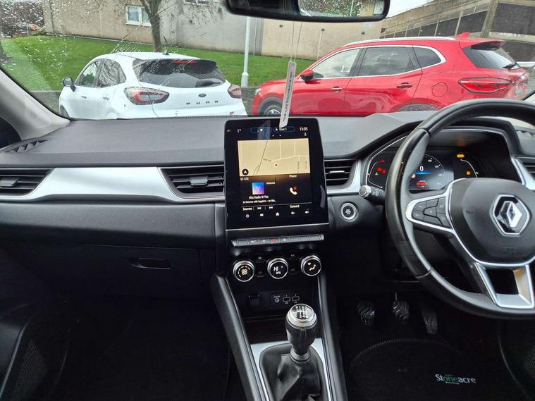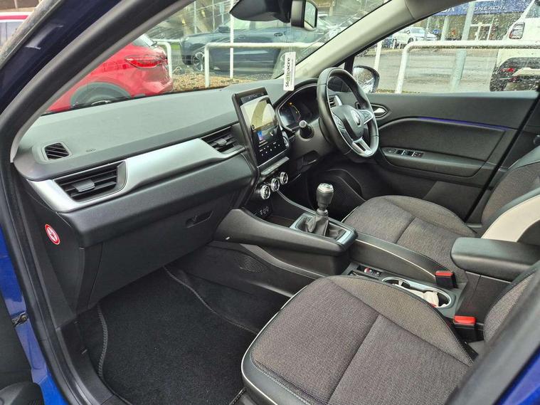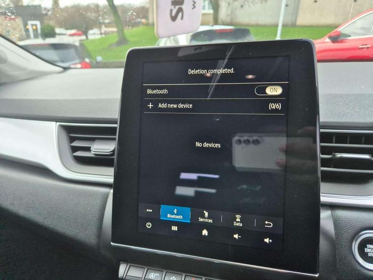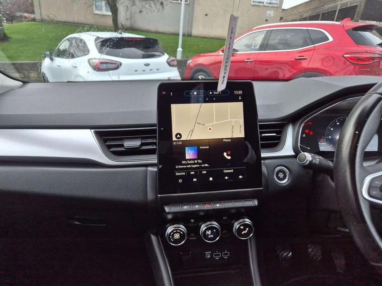 Blind spot warning, Cruise control + speed limiter, eCall emergency call system, Eco mode, Front and rear parking sensors with rear view camera, Gear change indicator, Lane departure warning system, Lane keep assist, Multisense system - Ambient lighting and Driving mode selector, Renault automatic emergency assist, Traffic sign recognition, Trip computer, Variable assistance power steering, Wireless Mobile Phone Charger, EasyLink Nav 9.3" touchscreen, 4x20W amp, FM DAB, sound auditorium, 2xUSB, 1xJack, Bluetooth, smartphone integration plus, Apple carplay/Android auto, Auto dimming rear view mirror, Automatic front wipers with rain sensors, Automatic headlights, Automatic high beam - AHB, Body colour door handles, Body coloured bumpers, Body coloured door mirrors, Electric adjustable/heated/folding door mirrors, Electric front windows + one touch + anti-pinch, Electric rear windows, Extra tinted glass in rear windows and tailgate, Full C-shape LED front and rear signature lighting with daytime running lights at the front and at the rear, Gloss black side door protection with chrome effect, LED front fog lights, Rear fog lights, Rear wiper, Roof bars, Shark fin antenna, Variable speed on front windscreen wipers, 12V Accessory socket, 3 rear headrests, 5.2L front glovebox, 60/40 split folding rear seat bench, Automatic climate control with one touch demist function, Centre console storage tray, Front head restraints, Heating system with pollen filter, Height adjustable driver's seat, Height/reach adjust steering wheel, ISOFIX child seat fixing points on rear outermost seats, Leather steering wheel, Middle console with armrest and storage, Rear air vents, 3 rear seatbelts, ABS+EBA, AEBS, Distance warning alert, Driver and front passenger, side, head and curtain airbags, Driver height adjustable seat belt, Electric parking brake with auto hold function, Electronic stability control, Front and rear no seatbelt warning sound, Front dash warning indicator in case of heavy braking, Front driver and passenger side airbag deactivation, Hill start assist, Rear door and window child locking function for rear door, Tyre pressure warning light, Anti drill door locks and locking fuel cap, Deadlocking system, Hands free keycard with push button and start/stop function, RAID (Renault Anti-Intruder Device) automatic door locking, Remote central locking with thatcham approved immobiliser, Black soft touch dashboard with black gloss air vent surrounds,