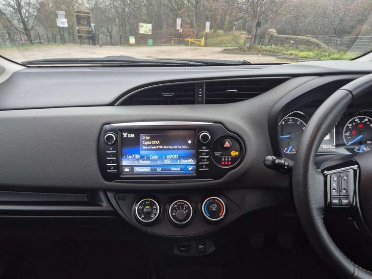 Bluetooth system, Cruise control, External temperature gauge, Fuel indicator with low level warning, Lane departure warning system, Lights on warning, Multi-information display, Power Steering, Rear parking sensor, Rear view camera, Road sign assist - RSA, TFT display screen, Touch 2 Go navigation system, Trip computer, 6 speakers, Auxiliary input socket, DAB Digital radio, Steering wheel mounted audio/telephone controls, Touch 2 touchscreen Radio with iPod connectivity, USB connection, 2 speed front wipers + intermittent wipe, Auto high beam, Auto up and down function on drivers window, Body colour bumpers, Body colour door handles, Body coloured door mirrors, Chrome fog light surround, Daytime running lights, Door mirror integrated indicators, Drivers window one touch up/down, Electric adjustable heated door mirrors, Electric front windows, Follow me home headlights, Front fog lights, Green tinted glass, Heated rear windscreen, Projector headlights, Rain sensitive windscreen wipers, Rear wiper, Turning signal integrated indicators in door mirrors, 3 spoke leather steering wheel, 60/40 split folding rear seat, Boot light, Cloth upholstery, Driver seat height adjust, Driver/passenger vanity mirrors with covers, Front cupholders x 2, Front map reading lights, Front seats with lumbar support, Glovebox, Height adjustable front head restraints, Height adjustable rear seat head restraints (x3), Isofix system on outer rear seats, Leather gear knob, Manual air conditioning, Rear cupholder, Removable rear parcel shelf, Sliding front seats, Tilt/telescopic steering column, 3 point seatbelts on all rear seats, ABS+EBD+Brake assist, Active headrests, Collision mitigation braking system, Curtain airbags, Driver and passenger airbags, Drivers knee airbag, Emergency brake light system (EBS), Front passenger airbag on/off switch, Front seatbelt reminder, Front side airbags, Height adjustable front seatbelts with pre-tensioners and load limiters, Hill start assist control (HAC), Passenger airbag deactivate switch, Rear child proof door locks, Rear seat belt reminder, Road sign information display, Seatbelt warning lamp and buzzer, Toyota safety sense including Road sign assist, Pre collision system, auto high beam and lane departure alert), Tyre pressure monitoring system, Vehicle stability control VSC + traction control, Engine immobiliser, Remote central locking, Instrument panel in grey, Space saver spare wheel,
