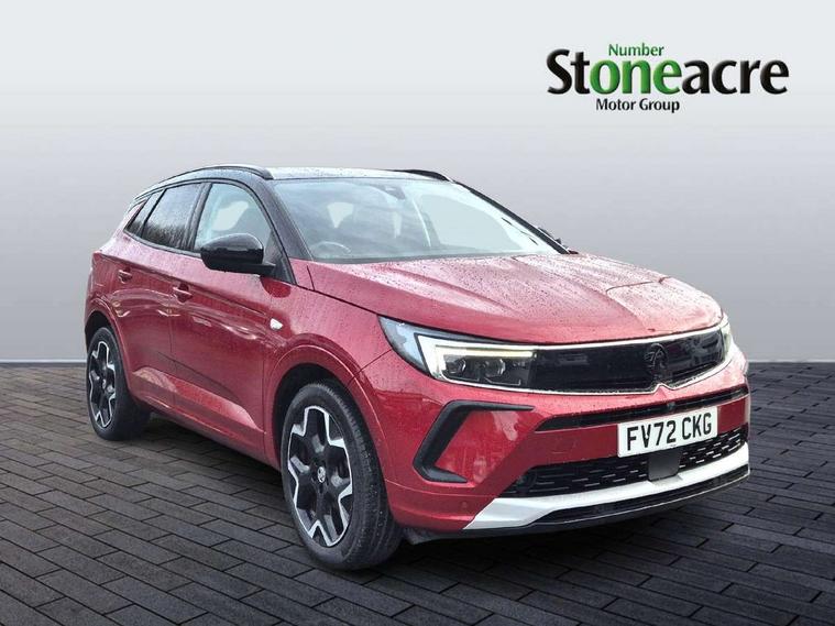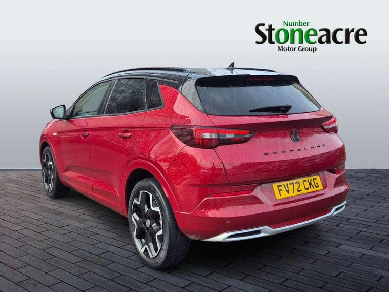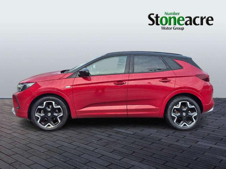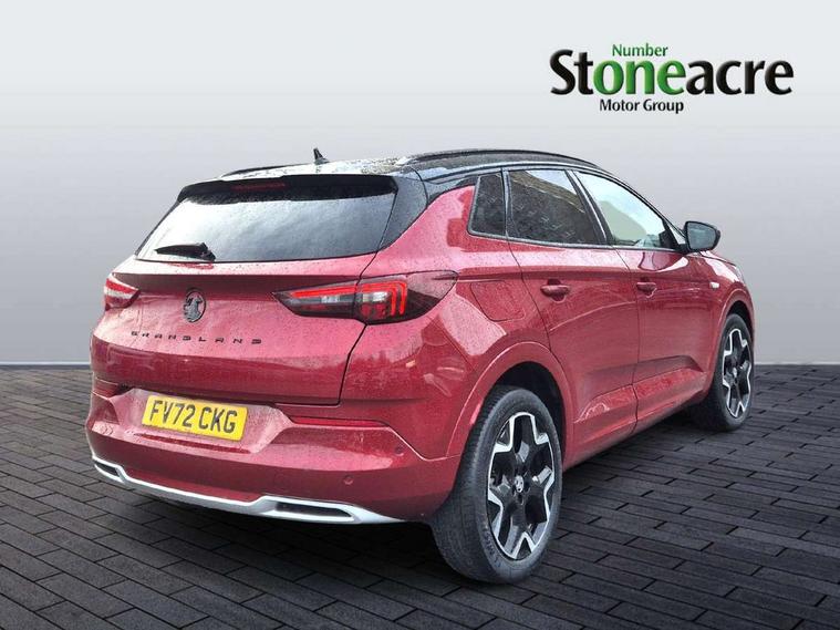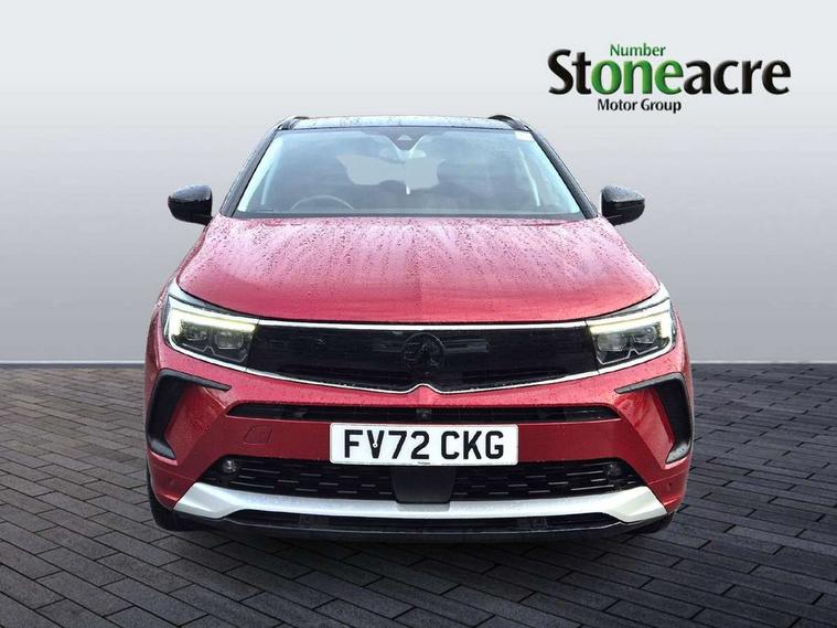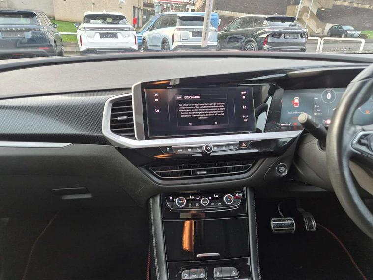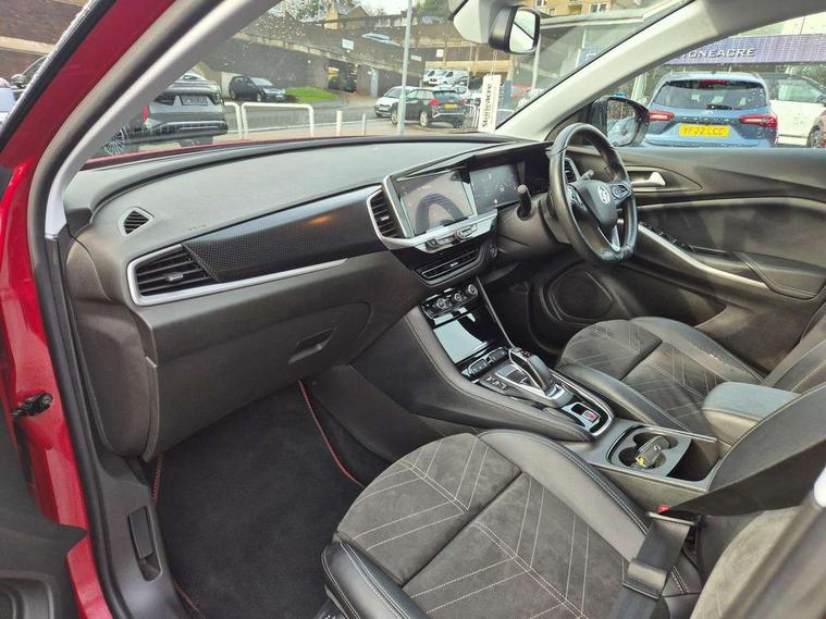 12" colour digital cluster, Central facia display with digital clock, outside air temperature and audio information, Digital fuel gauge with low fuel level warning light, Digital rev counter, Digital speedometer, Digital water temperature gauge with warning light, Driver drowsiness alert system, Driver information - Total mileage, service indicator, oil life, Front and rear parking distance sensors with 360 degree rear view camera and advanced park assist, Gearshift up/down indication light, Highway integration assist (Lane positioning assistant and Adaptive cruise control), Lane departure warning system, Lane keep assist, Lights on audible warning, Multi function trip computer - Trip odometer, vehicle range, average speed and fuel economy, instantaneous fuel economy and driving time, Multimedia navi pro with 10" colour touch+ sat nav+AM/FM/DAB radio, bluetooth audio streaming/mobile phone portal, Apple carplay/Android auto, USB, Power operated tailgate with foot sensor, Side blind spot alert, Speed sensitive electric power assisted steering, Speed sign recognition, Vauxhall connect including Emergency call (SOS e-call) and Breakdown call (b-call), Wireless charger for mobile devices, Six speaker - four front + two rear, Steering wheel mounted audio/phone/cruise controls, Alloy effect front and rear skid plates, Automatic lighting control, Automatically dimming anti dazzle rear view mirror, Black door mirrors, Black side window trim, Body colour door handles, Body colour lower front and rear bumpers, protective wheel arches and lower door cladding, Body colour upper front bumper, Collapsible windscreen wipers, Dark tinted rear side and tailgate windows, Door to door illumination, Electrically operated front and rear windows with safety auto reverse and one touch up/down facility, Front wiper system spraying directly from wipers, Hazard warning lights, Heated rear screen with timed cut off, Heated windscreen, High beam assist, High gloss black Griffin for Vizor and tailgate with high gloss black Grandland tailgate lettering, High gloss black roof rails, High level centre rear brake light, IntelliLux adaptive LED pixel headlights and LED tail lights, Intermittent rear window wash/wipe, LED daytime running lights, LED front fog lights, Magic wash, Manual headlight beam levelling, Rain sensor windscreen wipers, Rear side wing doors, Rear spoiler, Reversing light, Shark fin aerial, Silver effect protective front and rear skid plate, Soundproof insulated windscreen, Tinted windows, Twin electrically adjustable and heated power door mirrors (wide-angle on drivers side) with automatic timed cut-off, Two speed windscreen wipers with variable intermittent wipe, Upper and lower bumper design, Vizor front grille, Welcome lighting, 12v plug in front console and 12v plug in boot, 3 bench rear seats in 2nd row, 3 spoke flat bottom leather steering wheel with satin chrome effect bezel, 4 way electric driver lumbar support, 4 way passenger electric lumbar support, 60/40 split folding rear seat with centre rear seat armrest and load though facility, Advanced predictive logic control system using a sun sensor, Alcantara upholstery, Alloy sports pedals, Ambient centre console downlighter, Automatic air direction and fan speed with manual override, Charcoal filter, Chrome effect interior door handles, Covered storage compartment in centre console and in driver armrest, Driver's centre armrest, Drivers and front passengers seat with height, reach, tilt, backrest adjustment and seat cushion extension, Dual zone electronic climate control, Ergonomic active drivers sports style seat, Ergonomic active front passenger sports style seat, Front door pockets with 2.6 litre capacity, Front seat back storage pockets, Fully carpeted luggage area, Height adjustable headrests, Illuminated driver/passenger sunvisors with vanity mirror, Illuminated luggage area, ISOFIX on front passenger and rear outer seats, Luggage compartment cover, Reach + rake adjustable steering column, Rear centre seat head restraint, Rear door pockets with 1.8 litre capacity, Rear passenger compartment heating ducts, Rear reading lights, Two drinks holders in centre console, Winter pack - Grandland, Anti-lock braking system (ABS), Automatic emergency braking with pedestrian detection, Child proof locks on rear doors, CSC - Cornering stability control, Deactivation switch for front passenger front and side impact airbags, Deflation detection system, Driver airbag, Dual seatbelt pretensioners on front seats, EBD - Electronic brakeforce distribution, Electronic parking brake, Electronic stability program (ESP) including traction control, Front passenger airbag, Front seat side impact airbags, Full size curtain airbags for driver, front seat passenger and outer rear seat passengers, Hill start assist, Hydraulic Brake Assist (HBA), Inertia reel lap and diagonal seatbelts for all seats, Load limiters on outer rear seatbelt retractors, Pretensioners on outer rear seatbelt retractors, Smart seatbelt reminder for front and rear seats, Tyre pressure monitoring system, Deadlocking system, Electronically protected audio equipment, Engine deadlock immobiliser, Keyless entry and start, Locking wheel nuts, Remote control central locking activation switch on driver door, Remote security alarm system, Black door panels with black premium leather effect inserts, Dax decor facia panel with palladium medium finish, 19" diamond cut bi-colour alloy wheel, Tyre inflation kit,