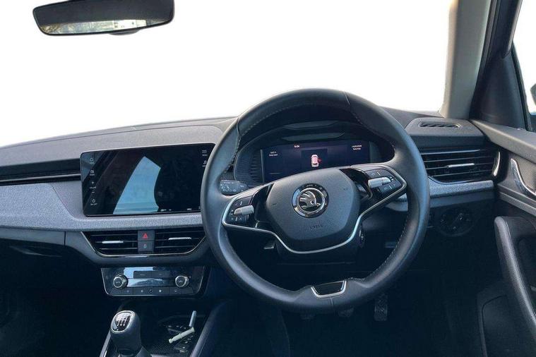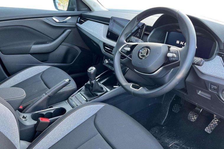 Advanced driver attention and drowsiness monitor, Bluetooth system, E-call, Front assist system, PAS, Rear parking sensors, Rear view camera, Service indicator, Speed limiter, Traffic sign recognition, Virtual cockpit with 10.25" display, Voice control system, Wireless smartlink, 4 USB C ports, 8 Speakers, 8.25" Skoda infotainment display, 9.2" Skoda navigation display, DAB Digital radio, Auto dimming rear view mirror, Automatic headlight control with coming home and leaving home feature, Black roof rails, Body colour bumpers, Body colour door mirrors and handles, Chrome grille surround, Front and rear electric windows, Full LED headlights, Heated rear window, LED brake lights, LED daytime running lights, LED front turning lights, LED high beam, LED low beam, LED third brake light, Rear LED fog light, Rear side wing doors, Rear wiper, Ticket holder inside windscreen, 12V socket in luggage compartment, 3 seat bench in 2nd row, Black hotstamping, Cargo elements, Chrome inner door handles, Driver and passenger sun visors with vanity mirror, Dual zone climate control, Front and rear roof lights, Front centre armrest, Front head restraints, Glove compartment with illumination, Height adjustable driver seat, Height adjustable front passenger seat, Ice scraper, Inner circulation control with pollen filter, ISOFIX on front passenger seat, Isofix preparation for back seats, Krepp recycled decor inserts, Leather gearknob and handbrake lever, Loft cloth upholstery, Manual lumbar support for front seats, Net package and top tether hooks in boot space, Net under rear shelf, Overhead glasses storage compartment, Pocket on the back of both front seats include mobile phone pockets, Rake/reach adjustable steering wheel, Reading lights, Satin black door inserts, Single front passenger seat, Textile floor mats, Third rear headrest, Top tether for front passenger seat, Umbrella in driver's door, 3x3 point rear seatbelts, Airbags - driver and front passenger, Disc brakes, ESP, Extended and predictive pedestrian/cyclist protection, Front passenger airbag deactivation switch, Front side airbags with curtain airbags, Hill hold control, Manual leather parking brake, Manual rear child locks, One tone horn, Seatbelt reminder for driver an co-driver, Traction control, Tyre pressure monitor, Anti-theft alarm system with interior monitoring, backup horn, towing protection and remote central locking with SAFE system, Anti-theft wheel bolts, Electronic engine immobilizer,