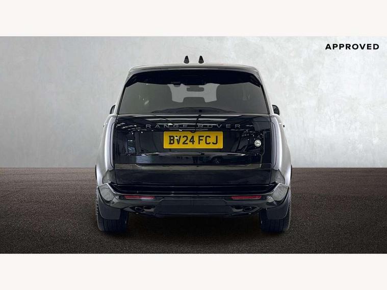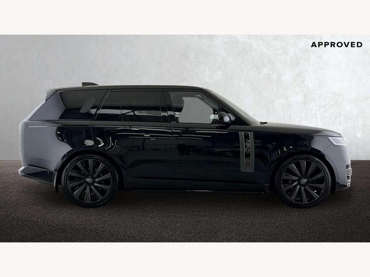13.1" Touchscreen, 3D surround camera inc frwd traffic detection, vehicle clearance guidance, 3D view, clearsight ground view, manoevure light, 360 parking aid, wade sensing, All Terrain Info Centre, All wheel steering, Android Auto, Apple car play, Blind spot assist, Bluetooth connectivity streaming, Configurable programs, Driver condition response, Eco mode, Electric power assisted steering (EPAS), Emergency call service, Front and rear parking aid, Head up Display, Interactive driver display, Lane keep assist, Rear collision monitor, Rear traffic monitor, Remote, Traffic sign recognition with adaptive speed limiter, Wi-Fi Enabled with data plan, Wireless device charging with phone signal booster, 8 speed automatic transmission, Active damper technology system, Adaptive dynamics, Adaptive off-road cruise control, All Wheel Drive (AWD), Automatic access height, Electronic active differential with torque vectoring by braking, Electronic air suspension with dynamic response pro, Terrain Response 2 Auto, Twin speed transfer box, Digital Audio Broadcast radio-DAB, Meridian 1600W signature sound system, Pivi pro including smart settings, Connected navigation pro, nuance speech, USB socket, Acoustic laminated windscreen, Animated directional indicators, Automatic headlights, Automatic levelling headlights, Centre high mounted stop light, ClearSight interior rear view mirror, Digital LED headlights with signature DRL and image projection, Electric windows with one touch open/close and anti trap, Flush deployable exterior door handles, Front and rear recovery eyes, Front fog lights, Headlamp power wash, Heated rear window, Heated washer jets, Illuminated aluminum treadplates with illuminated SV script, Laminated front and rear side glass, LED tail lights, Power fold, auto-dimming, heated door mirrors with approach lights, Rain sensing windscreen wipers, Rear boot, Rear fog lights, Rear side wing doors, Side repeater indicators in mirror, Solar attenuating windscreen, SV branded puddle lamps, SV etched roundel on side gill inserts, SV exclusive front bumper and grille design, SV exterior badge, SV white ceramic exterior badge with black SV roundel, Trailer stability assist, Winter wiper park position, 12V power sockets, 24-way heated and cooled, hot stone massage electric front seats with Executive Class Comfort Plus rear seats, 3 seat bench in 2nd row, Air quality sensor, Auto folding loadspace cover, Bright metal pedals, Cabin air purification pro, Cabin lighting, Centre console with armrest, Customer configurable single point entry, Driver and passenger front seat armrests, Easy boot loading, Electric rear side window sunblinds, Four zone climate control, Front and rear cupholders, Front and rear grab handles, Front head restraints, Gearshift paddles, Heated steering wheel, Hook in load space, Loadspace light, Luggage tie down in loadspace, Multifunction steering wheel, Rear centre armrest, Rear head restraints, Rear ISOFIX, Single front passenger seat, SV exclusive seat foams and sculpting, SV exclusive seat pattern embroidery/ perforation, SV exclusive speaker grille design, SV start up graphics in IP screen, Twin blade sunvisors with Illuminated vanity mirrors, Upper and lower glovebox, Versatile loadspace floor in tailgate, Online pack with data plan - Range Rover, 3x3 point rear seat belts, Anti-lock braking system (ABS), Brake hold function, Cornering brake control (CBC), Customer configurable autolock, DSC - Dynamic Stability Control, Electronic brake force distribution, Electronic parking brake, Electronic traction control, Emergency brake assist, Emergency braking, Front airbags with passenger seat occupant detector, Front side airbags, Hill descent control, Hill launch assist, Illuminated seat belt buckles, Low traction launch, Occupant protection assist, Power operated child locks, Roll stability control, Tyre pressure monitoring system (TPMS), Immobiliser, Intrusion sensor and alarm, Keyless entry, Locking wheel nuts, Remote central locking, SV exclusive key fob with white and black SV roundel,