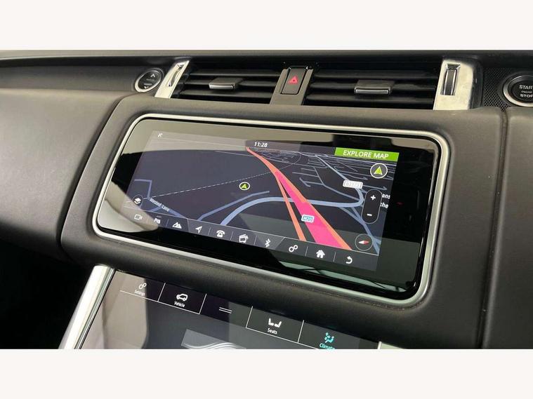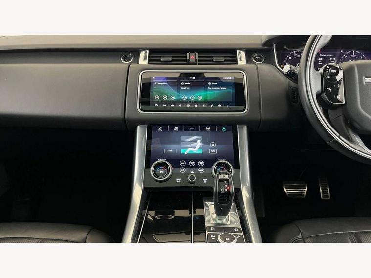 All Terrain Info Centre, Android Auto, Apple car play, Bluetooth connectivity, Electric power assisted steering (EPAS), Incontrol apps in vehicle touchscreen, Interactive Driver display instrument cluster, Mist sensor, Navigation pro system with 10" touch screen, app interface and media storage, Pro services and wifi hotspot, Push button start, Remote premium - Upgraded Incontrol remote app including remote climate control (engine dependent), remote lock + Unlock and remote beep + flash, TFT Virtual Instrument Panel, Touch pro duo system, Trip computer, Adaptive dynamics, All terrain progress control, Electronic active differential with brake torque vectoring, Electronic air suspension with dynamic response (active roll control), Engine cover, Gradient release control (GRC), Terrain Response 2 with dynamic program, Twin speed transfer box, Bluetooth audio streaming, DAB Radio (Digital Audio Broadcasting), Incontrol protect - SOS emergency call with automatic collision detection, optimised assistance call and Incontrol remote app essential, USB/aux input socket, Acoustic front and toughened rear side glass, Acoustic laminated front windows, Adaptive brake lights, Auto dimming interior rear view mirror, Automatic headlights, Body coloured side sills and bumpers corners, Centre high mounted stop light, Electric windows with one touch open/close and anti trap, Electrical towing preparation, Follow me home lighting, Front and rear recovery eyes, Front fog lights, Headlight power wash, Heated rear window, Heated windscreen includes heated washer jets, Illuminated metal tread plates with brand name script, LED rear lamps, Privacy glass (Tinted glass rear of B pillar), Rain sensing windscreen wipers, Rear fog lights, Rear side wing doors, Rear wash/wipe, Remote window closing, Side repeater indicators in mirror, Sport Badge in black, Standard bonnet, Trailer stability assist, Twin bright tailpipes, 2 way active front head restraints, 2 way rear head restraints, 3 seat bench in 2nd row, Auto air recirculation, Bright metal foot pedals, Centre console with armrest, Climate control memory, Customer configurable single point entry, Driver's footrest, Extended leather upgrade includes door top rolls and leather instrument panel mid section, Front and rear cupholders, Front door storage space, Front map lights, Front seat back map pockets, Front stowage pocket, Front/rear passenger grab handles, Heated steering wheel, Isofix child seat preparation, Leather steering wheel with Atlas inserts, Loadspace light, Loadspace mounting provisions, Lockable glovebox, Multifunction steering wheel, Perforated Windsor leather upholstery, Pollen filter, Power socket, Reach/rake electric adjustable steering column + entry/exit tilt away, Rear centre armrest, Rear ISOFIX, Roller blind loadspace cover, Satin chrome gearshift paddles, Single front passenger seat, Sports pedals, Three 12V accessory power outlets, Black Exterior pack - Range Rover Sport, Smartphone pack - Range Rover Sport, 3 point seatbelts on all seats, Anti-lock braking system (ABS), Brake pre-fill technology, Cornering brake control (CBC), Curtain airbags, Customer configurable autolock, DSC - Dynamic Stability Control, Dual stage driver/passenger airbags, EBD - Electronic brakeforce distribution, Electric parking brake, Electronic traction control, Emergency braking includes city, urban AEB and pedestrian, Front seatbelt pretensioners, Gradient acceleration control, Grey anodised brake calipers, Height adjustable front seatbelts, Hill descent control, Hill launch assist, Low traction launch, Passenger seat occupant detector with front airbags, Power operated child locks, Roll stability control, Seatbelt warning, TPMS (Tyre pressure monitoring system), Immobiliser, Intrusion sensor, Keyless entry, Locking wheel nuts, Perimetric and volumetric anti theft alarm, Remote locking, Grand black veneer,