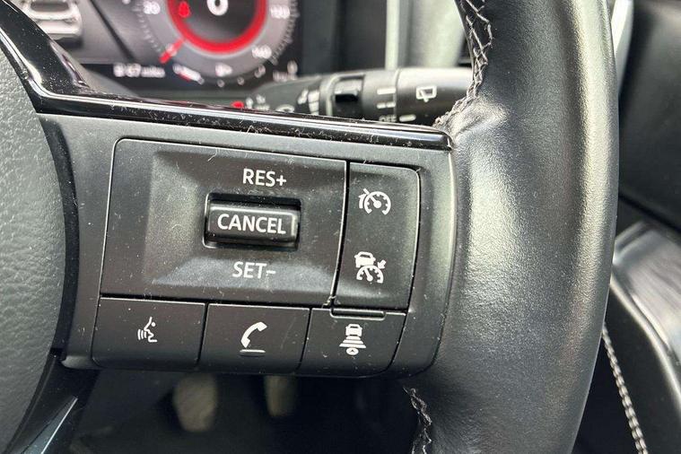 Android auto/Apple CarPlay (Wired), Blind spot warning, Drive modes (sport, normal, eco), Electric speed sensitive power steering, Emergency and breakdown call, Front and rear parking sensors, Full Digital 12.3" TFT Digital Combimeter, Google maps services - search, weather, 3D maps and Google street view, Idle stop/start system, Intelligent around view monitor, Intelligent Cruise control (ICC), Intelligent driver alert system, Intelligent forward collision warning, Intelligent lane intervention, Lane departure prevention, Lane departure warning system, Maximum speed limiter, Moving object detection, Nissan connect 12.3 inch touchscreen infotainment system, Nissan connect navigation, Push button starter, Rear cross traffic alert, Rear view camera, Remote control services - door locks, lights, horn and car locator, Telematics - notifications and connectivity services, TomTom live traffic services, Traffic sign recognition with legal speed adjustment, Trip computer, Virtual personal assistant and firmware over the air capability, Wireless apple carplay, 6 speakers, AM/FM audio system with DAB, Bluetooth audio streaming, Front USB connections (Type-A and Type-C), Rear USB charging only ports (Type-A and Type-C), Auto dimming rear view mirror, Auto rear wiper when reversing, Automatic hazard signal with emergency stop signal, Body colour mirror caps, Body coloured door handles, Bodyside mouldings, Chrome side window finisher, Door handle with button, Electric auto folding door mirrors, Electrically adjustable and heated door mirrors with LED turn indicator, Follow me home headlights, High beam assist, Intelligent auto headlights, LED daytime running lights, LED Headlights, LED rear lights, One touch front and rear electric windows with remote opening and closing, Partially body coloured bumpers, Privacy glass, Rear bumper with graphite insert, Rear reversing light (bulb lighting), Rear roof spoiler, Rear side wing doors, Rear styling plate, Shark fin antenna, Splash free rain sensing wipers, Super UV and infrared cut glass, Three blink turn signal, 12v power socket in dashboard and luggage, 2x Rear coat hooks, 3 bench rear seats in 2nd row, 3 rear headrests, 4 folding assist grip, 6 Luggage hooks - 4 on floor, 2 on side, 6-way manually adjustable driver's seat, 60/40 split folding rear seat bench, Ambient lighting around centre console, Centre console storage tray, Chrome interior door handles, Cloth monoform upholstery, Driver and front passenger sunvisors with illuminated vanity mirrors, Driver seat back pocket, Dual zone automatic climate control with pollen filter, Electrically adjustable lumbar support for driver, Front and rear door storage, Front centre console and armrest, Front cupholders x 2, Front door with bottle holders, Glovebox with light, Hard trunk cover, Height adjustable driver's seat, Height adjustable front headrests, Height adjustable passenger seat, Leather shift knob, Leather steering wheel, Luggage board system, Luggage space lighting, Manually adjustable passenger (slide recline + lifter), Multifunction steering wheel, Passenger seat back pocket, Rear armrest with 2 cupholders, Rear door bottle holders, Single front passenger seat, Soft PVC kneepad, Steering wheel switches, Sunglasses holder, Tilt/telescopic adjustable steering wheel, Two rear isofix child seat anchorage points with top tether, Welcome light and console tray ambient lighting, 3x3 point rear seatbelt pretensioners + load limiters, ABS with EBD and brake assist, Active brake limited slip, Auto hold function, Child locks on rear doors, Curtain and front side, far side airbags, Driver and passenger airbags, Driver, passenger and 2nd row rear seat belt reminder, Electronic parking brake, Front seatbelt pretensioners + load limiters, Height adjustable front seatbelts, Hill start assist, Intelligent blind spot intervention, Intelligent front emergency braking with pedestrian, cyclist recognition and junction assist, Intelligent rear automatic braking, Tyre pressure monitoring system, Vehicle dynamic control, Capless fuel filler, Engine immobiliser, Intelligent Key, Remote central door locking with deadlocking, Thatcham Cat.1 alarm, Interior instrumental panel B finisher, 18" Diamond cut alloy wheels, Tyre puncture repair kit,