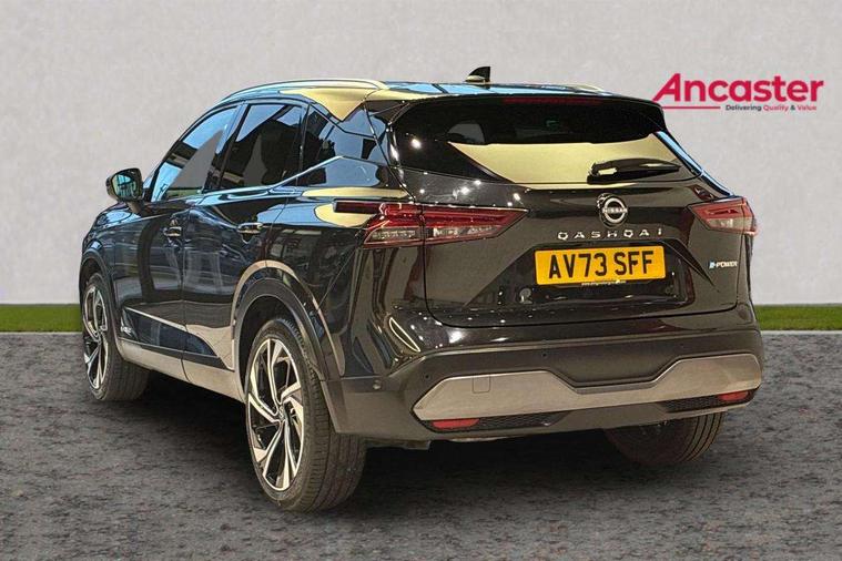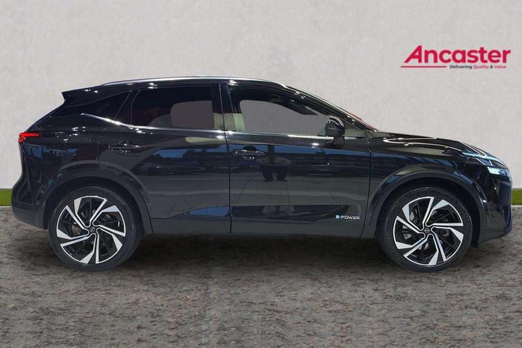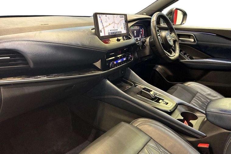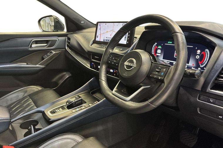 Advanced windscreen head up display, Blind spot warning, Drive modes (sport, normal, eco), e-Pedal step, Electric speed sensitive power steering, Emergency and breakdown call, Front and rear parking sensors, Full Digital 12.3" TFT Digital Combimeter, Google maps services - search, weather, 3D maps and Google street view, Hands free power tailgate, Idle stop/start system, Intelligent around view monitor, Intelligent Cruise control (ICC), Intelligent driver alert system, Intelligent forward collision warning, Intelligent lane intervention, Lane departure prevention, Lane departure warning system, Lane keep assist, Moving object detection, Nissan connect 12.3 inch touchscreen infotainment system, Nissan connect navigation, Pro pilot park assist, Push button starter, Rear cross traffic alert, Rear view camera, Remote control services - door locks, lights, horn and car locator, Telematics - notifications and connectivity services, TomTom live traffic services, Traffic sign recognition with legal speed adjustment, Trip computer, Virtual personal assistant and firmware over the air capability, Wireless Apple CarPlay and wired Android Auto, Wireless charging pad, 10 Bose speakers - 2 tweeters, 6 high and medium frequency door speakers and 2 in subwoofer, AM/FM audio system with DAB, Bluetooth audio streaming, Bose acoustimass bass box, Digital amplifier, Front USB connections (Type-A and Type-C), Rear USB charging only ports (Type-A and Type-C), Auto dimming rear view mirror, Auto rear wiper when reversing, Automatic hazard signal with emergency stop signal, Body colour mirror caps, Body coloured door handles, Bodyside mouldings, Chrome side window finisher, Door handle with button, Door mirror memory, e-POWER badging, Electric auto folding door mirrors, Electrically adjustable and heated door mirrors with LED turn indicator, Follow me home headlights, Front and rear LED turning signals, Headlights auto levelling system, Intelligent auto headlights, LED 3rd brake light, LED daytime running lights, LED front fog lights, LED headlights with adaptive driving beam, LED rear lights, One touch front and rear electric windows with remote opening and closing, Privacy glass, Rear bumper with graphite insert, Rear reversing light (bulb lighting), Rear roof spoiler, Rear side wing doors, Rear styling plate, Reverse tilting door mirrors, Shark fin antenna, Splash free rain sensing wipers, Super UV and infrared cut glass, Thermaclear heated windscreen, Three blink turn signal, 12v power socket in dashboard and luggage, 2x Rear coat hooks, 3 bench rear seats in 2nd row, 3 rear headrests, 4 folding assist grip, 6 Luggage hooks - 4 on floor, 2 on side, 60/40 split folding rear seat bench, Ambient lighting around centre console, Ambient lighting in front doors, Centre console storage tray, Chrome interior door handles, Dark black/blueish PVC wrapping, Dark headlining, Driver and front passenger sunvisors with illuminated vanity mirrors, Driver seat back pocket, Dual zone automatic climate control with pollen filter, e-POWER shifter, Electric 4-way lumbar support for drivers seat, Electric adjustable 4 way lumbar support for passenger seat, Electrically adjustable driver seat with massage and memory functions, Front and rear door storage, Front centre console and armrest, Front cupholders x 2, Front door with bottle holders, Glovebox with light, Hard trunk cover, Heated front seats, Heated steering wheel, Height adjustable driver's seat, Height adjustable front headrests, Height adjustable passenger seat, Leather steering wheel, Luggage board system, Luggage space lighting, Manually adjustable passenger (slide recline + lifter), Multifunction steering wheel, Passenger seat back pocket, Quilted premium leather upholstery, Rear armrest with 2 cupholders, Rear door bottle holders, Single front passenger seat, Soft PVC kneepad, Steering wheel switches, Tilt/telescopic adjustable steering wheel, Two rear isofix child seat anchorage points with top tether, Welcome light and doors with console tray ambient lighting, Glass roof pack with roof rails - Qashqai, 3x3 point rear seatbelt pretensioners + load limiters, ABS with EBD and brake assist, Active brake limited slip, Auto hold function, Child locks on rear doors, Curtain and front side, far side airbags, Driver and passenger airbags, Driver, passenger and 2nd row rear seat belt reminder, Electronic parking brake, Front seatbelt pretensioners + load limiters, Height adjustable front seatbelts, Hill start assist, Intelligent blind spot intervention, Intelligent front emergency braking with pedestrian, cyclist recognition and junction assist, Intelligent rear automatic braking, Tyre pressure monitoring system, Vehicle dynamic control, Advance intelligent key with driver memory storage (seats, mirrors, audio), Capless fuel filler, Engine immobiliser, Remote central door locking with deadlocking, Thatcham Cat.1 alarm, Interior instrumental panel C finisher, 20" Diamond cut alloy wheels, Tyre puncture repair kit,