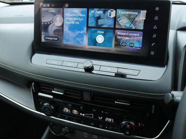 Advanced 10.8" head up display, Android auto wireless, Blind spot warning, Drive assist custom mode, Drive modes (sport, normal, eco), Driver drowsiness and attention warning, e-Pedal step, Electric speed sensitive power steering, Emergency and breakdown call, Event data recorder, Front and rear parking sensors, Full Digital 12.3" TFT Digital Combimeter, Google maps services - search, weather, 3D maps and Google street view, Hands free power tailgate, Idle stop/start system, Intelligent around view monitor, Intelligent Cruise control (ICC), Intelligent driver alert system, Intelligent forward collision warning, Intelligent lane departure warning, Intelligent lane intervention, Intelligent lane keep assist, Lane departure prevention, Maximum speed limiter, Moving object detection, Nissan connect 12.3 inch touchscreen infotainment system, Nissan connect nav with TomTom traffic, Propilot assist with Navi-Link, ProPilot park, Push button starter, Rear cross traffic alert, Rear view camera, Remote control services - door locks, lights, horn and car locator, Reversing detection, Telematics - notifications and connectivity services, Traffic jam pilot, Traffic sign recognition with legal speed adjustment, Trip computer, Virtual personal assistant and firmware over the air capability, Wireless apple carplay, Wireless charging pad, AM/FM audio system with DAB, Bluetooth audio streaming, Bose premium acoustimass bass box with digital amplifier, Bose premium sound system with 10 speakers, Digital amplifier, Front USB connections (Type-A and Type-C), Rear USB charging only ports 2 Type-C, Auto rear wiper when reversing, Body colour mirror caps, Body coloured door handles, Bodyside mouldings, Chrome side window finisher, e-POWER badging, Electric auto folding door mirrors, Electric sunroof/sunshade, Electrically adjustable and heated door mirrors, Follow me home headlights, Headlights auto levelling system, High beam assist, Intelligent auto headlights, LED 3rd brake light, LED daytime running lights, LED front fog lights, LED headlights with adaptive driving beam, LED rear lights, Memory function for door mirrors, One touch front and rear electric windows with remote opening and closing, Partially body coloured bumpers, Rain sensing wipers, Rear privacy glass, Rear reversing light (bulb lighting), Rear roof spoiler, Rear side wing doors, Rear styling plate, Reverse tilting door mirrors, Roof rails, Shark fin antenna, Smart rear view mirror with auto dimming, Splash free wipers, Super UV and infrared cut glass, Thermaclear heated windscreen, Three blink turn signal, 12v power socket in dashboard and luggage, 3 bench rear seats in 2nd row, 3 rear headrests, 40/20/40 folding rear seats with recline, Butteryfly console, Chrome interior door handles, Dark headlining, Driver and front passenger sunvisors with illuminated vanity mirrors, Driver seat back pocket, Electric adjustable 2 way lumbar support for driver, Electric adjustable 2 way lumbar support for passenger seat, Electric adjustable driver and passenger seat with memory function, Fore/Aft adjustable rear seats, Front and rear heated seats, Front centre console and armrest, Front cupholders, Front door with bottle holders, Heated steering wheel, Height adjustable driver's seat, Height adjustable front headrests, Height adjustable passenger seat, Leather shift knob, Leather steering wheel, Luggage board system, Luggage space lighting, Multifunction steering wheel, Passenger seat back pocket, Quilted premium leather upholstery, Rear armrest with 2 cupholders, Rear door bottle holders, Single front passenger seat, Sliding second row seats, Steering column mounted gear shift paddles, Tilt/telescopic adjustable steering wheel, Tri zone automatic climate control with pollen filter, Two rear isofix child seat anchorage points with top tether, Sky pack - X-Trail, 3x3 point rear seatbelt pretensioners + load limiters, ABS with EBD and brake assist, Active brake limited slip, Auto hold function, Child locks on rear doors, Curtain and front side, far side airbags, Driver and passenger airbags, Driver, passenger and 2nd row rear seat belt reminder, Electronic parking brake, Front seatbelt pretensioners + load limiters, Height adjustable front seatbelts, Hill start assist, Intelligent blind spot intervention, Intelligent front emergency braking with pedestrian, cyclist recognition and junction assist, Intelligent rear automatic braking, Tyre pressure monitoring system, Vehicle dynamic control, Advance intelligent key with driver memory storage (seats, mirrors, audio), Approach unlock and walk away lock, Engine immobiliser, Remote central door locking with deadlocking, Thatcham Cat.1 alarm, Tyre puncture repair kit,