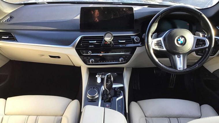 32GB hard disc drive (HDD) memory, Active Guard, BMW ConnectedDrive online services, BMW Live Cockpit Professional sat nav system with 12.3" instrument display and high resolution control display, BMW Teleservices, Brake pad wear indicator, Cruise control with brake assist, Driving experience switch, Electric boot lid - electrically opening/closing rear tailgate, Electric Power Steering (EPS) with Servotronic, iDrive touch controller with shortcut buttons, Intelligent emergency call, Multifunctional instrument panel, Oil sensor for level and grade, On board computer inc. average speed, fuel consumption, liquid crystal Info display, journey computer, outside temperature display, personal profile, On-board diagnosis - OBD, Powered by Operating System 7.0, Service interval indicator, Speed limiting function, Stop/start button, 48V Mild hybrid technology, Drive performance control with ECO PRO comfort + sport mode, Engine cover with twin turbo designation, M sport suspension, Petrol Particulate Filter, Steptronic transmission with gearshift paddles on steering wheel, DAB Digital radio, Favourite buttons, Acoustic glazing, All round anti-corrosion system, Automatically dimming rear view mirror, BMW Individual high gloss shadow line includes exterior mirror frame, window frame surround, B pillar finish, air breather in high gloss black, BMW Individual high gloss shadow line roof rails, Body colour door handles, Body coloured bumpers, Door handle illumination, Dynamic brake lights with LED technology, Electric front and rear windows with fingertip open/close + anti-trap facility and comfort closing function, Electrically adjustable and heated exterior mirrors includes integrated direction indicators and automatic parking function, Follow me home headlight function, Heated windscreen washer jets, High gloss black active air stream kidney grille, Independent opening for tailgate window, Interior rear view electrochromatic mirror with automatic anti dazzle function, LED daytime running lights, LED third brake light, M designation on front side panels, left and right in chrome, Rain sensor with automatic headlight activation, Trapezoidal visible exhaust tailpipes, 12V power socket in front and rear, 40/20/40 split folding rear seats with additional mechanism in luggage compartment, Armrest - front and rear integrated door trim, centre console includes storage compartment, rear centre includes 2 cupholders, Child seat ISOFIX attachment with rear outer seats includes top tether, Cup holders (2 front and 2 rear), Front and rear footwell lights, Front reading lights, Height and length adjustable steering column and activation via lateral lever on the steering column, Illuminated M door sill finishers, Lockable glove compartment with light, M specific pedals, M specific velour floor mats, Multifunction controls for leather steering wheel, Rear headrests, Retractable luggage compartment dividing net, Three spoke sport M leather steering steering wheel, Through loading system with 40/20/40 split folding rear seat, Ambient lighting pack - 5 Series, Connected package professional - 5 Series, Expanded exterior mirror pack - 5 Series, M Aerodynamic pack - 5 Series, 3x3 point rear seatbelts, Airbags - driver/front passenger, rear and side, first and second row seats head airbags, front passenger seat airbag deactivation + knee airbag, Anti-lock braking system (ABS), Automatic Stability Control (ASC), Brake assist function, Brake energy regeneration, CBC - (Cornering brake control), Crash sensor activating central locking release, hazard warning lights, fuel cut off and interior lighting, Deformation zones - front and rear with door reinforcements and bumpers up to 2.5 mph, DSC - Dynamic Stability Control, Dynamic brake control, Dynamic Traction Control - DTC, Electromechanical parking brake with automatic drive away release and auto hold function, Electronic brake force distribution, Engine drag torque control, Front and rear brake discs with interior ventilation, Front head restraints with anti-whiplash, Hill start assist, Mechanical child proof lock on rear doors, Passive protection for pedestrians, Side impact protection, Three point seat belts for all four seats, Two tone horn, Tyre pressure indicator, Warning triangle and first aid kit, Alarm system (Thatcham 1) with remote control and electronic engine immobiliser, Locking wheel bolts,