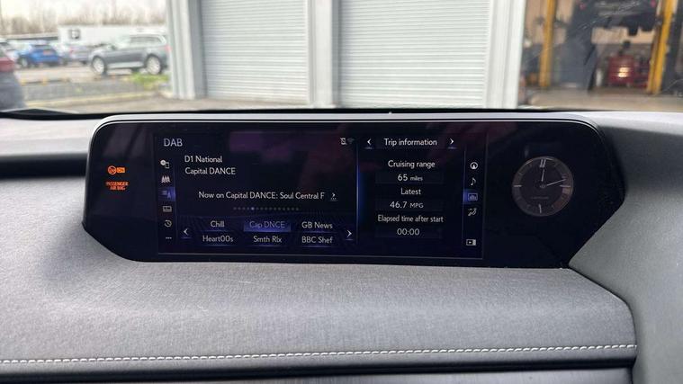 10" multimedia display, 360 degree panoramic view camera, 4 driving modes EV/Eco/Normal/Sport, Analogue clock with GPS function, Blind spot monitoring (BSM) with Rear cross traffic alert and auto brake (RCTAB), Bluetooth mobile phone connectivity, Drive mode selector, E-call, Electric power steering (EPS) with speed sensitive features, HUD - Head up Display, Intelligent parking sensors - 4 front and 4 rear, Kick sensor function, Lane change flasher function, Lexus safety systems+Dynamic Radar Cruise Control with Road Sign Assist, pre crash safety day/night, lane keep assist, sway warning system, auto high beam, Powered tailgate, Push button start, Trip computer, Vehicle Stability Control - VSC and drive mode controls on Instrument brinicle, Wireless Smartphone charger, Vehicle Dynamics Integrated Management (VDIM), 2 front USB and 2 rear USB charging points, AUX socket with VTR compatibility, DAB Digital radio, Mark Levinson sound system with 13 speakers, subwoofer and Clari-Fi TMMusic restauration, Multimedia 17 With remote touch pad, Acoustic windscreen, Auto dimming interior rear view mirror, Automatic folding door mirrors, Body coloured bumpers, Electric adjustable heated door mirrors with memory, Electric glass sunroof, Front and rear one-touch automatic power windows equipped with a jam protection, Headlamp washer, Headlight cleaners, Heated and electrically folding outside mirrors, Hidden exhaust pipe, Illuminated door handles with puddle light, Laminated acoustic side glass, LED daytime running lights, LED front and rear fog lights, LED low beam headlights with auto high beam with cornering, LED tail lights, Power back door system, Privacy glass, Rain sensor windscreen wipers, Rear wiper, Shark fin roof aerial, Towing preparation, 12V sockets in rear centre console and luggage compartment, 2 cup holders in the front and rear centre console, 2 way electrical lumbar adjustment for driver, 2 x fixed shopping bag hooks in boot, 2 x sun visors with vanity mirror and lamp, 4 x tie down hooks in the boot, 5 headrests, 60/40 split folding rear seat, 8 way driver/passenger electrically adjustable front seats, Active sound control, Card holder installed in driver and passengers sun visors, Centre armrest with storage, Driver and passenger door pocket, Driver's seat memory, Dual zone electronic climate control + Nano-E humidity sensor, Folding rear centre armrest with 2 cupholders, Glovebox, Heated and ventilated front seats, Heated steering wheel, Leather gear lever, LED interior illumination, Map pockets in the rear of passenger's front seat, Power adjustable leather steering wheel, Power tilt telescopic steering wheel, Rear air vents, Storage tray under audio panel, Tilt/reach adjustable steering column, Under deck storage, Under desk side storage, 10 airbags - front, side, knee, front and rear curtain airbag, 2 x Isofix child rear seat restraints, Anti-lock braking system (ABS), BAS (Brake Assist System), EBD - Electronic brakeforce distribution, ECB (Electronically Controlled Brake System), Electric parking brake, Front adjustable seatbelt anchor points, Hill start assist control (HAC), Passenger airbag cut-off device, Rear outer seatbelt+pre-tensioners, force limiter+tension reduction: 3-point with active safety link to PCS, Centre belt w/o pre tensioner+force limiter, Secondary Collision Brake (SCB), TRC (Traction Control), Tyre pressure warning, 2 x remote key fobs, Anti theft system : Alarm instruction sensor, glass breakage sensor and engine immobiliser, Locking wheel nuts, Remote central door locking, Smart entry, Speed sensitive power door locks, Two motion door lock with double lock, VIN Window etching,