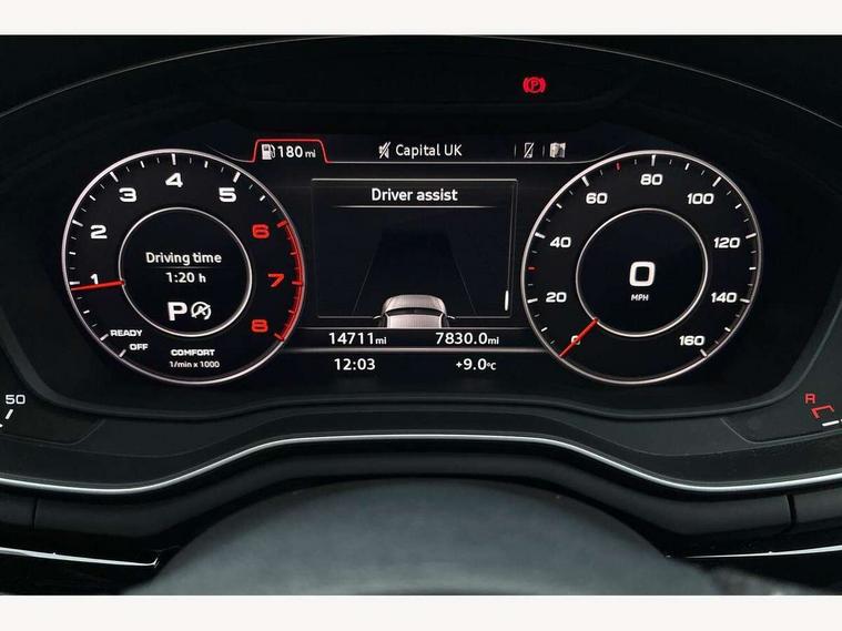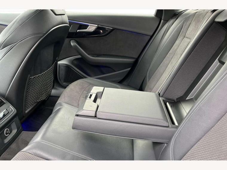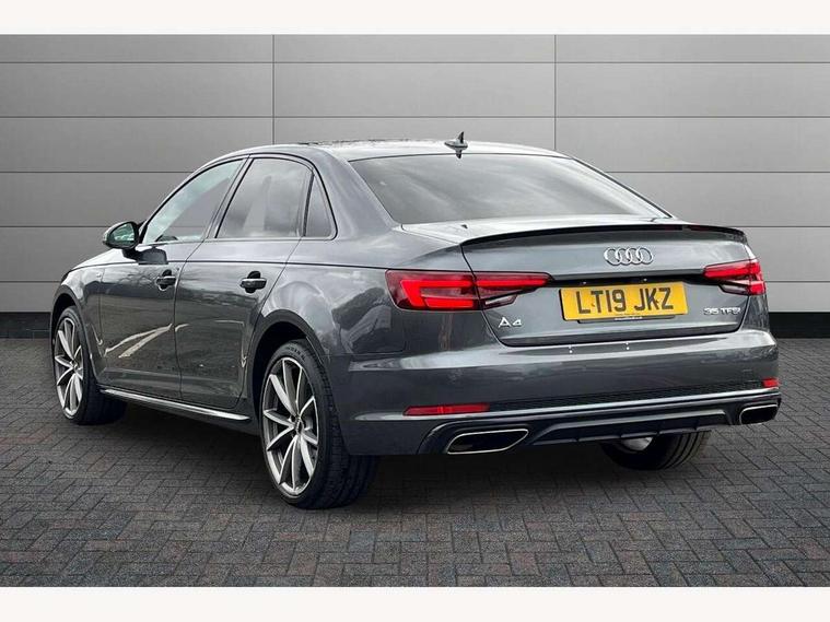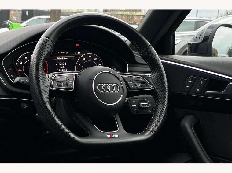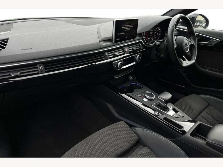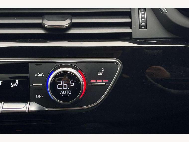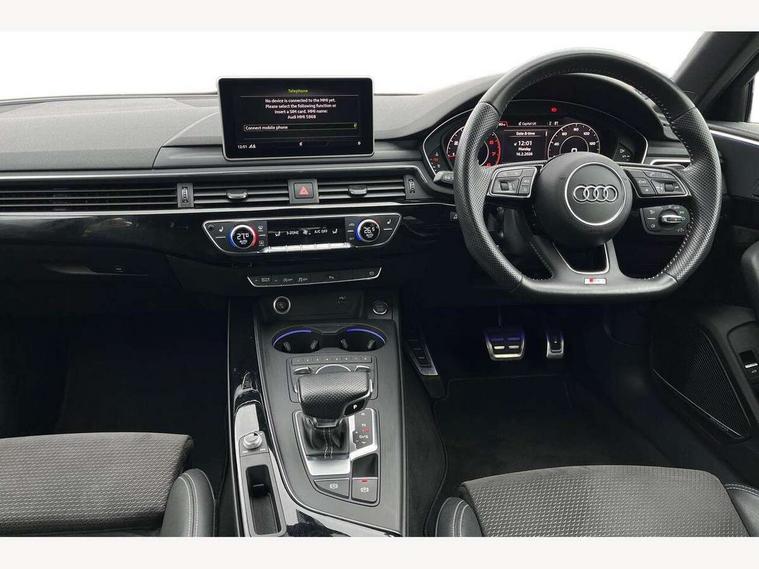 7" Colour driver information system, Audi connect safety and service (e-call), Audi drive select, Audi parking system plus with front and rear sensors, Audi Pre sense collision avoidance, Bluetooth interface, Electric boot release, Electromechanical power steering, MMI SD card Navigation, Service interval indicator, Stop/start button, Voice control system, 54 litre fuel tank, 2 USB interfaces and Aux-In jack, DAB digital radio module, Acoustic windscreen, Air inlets in titanium black, Auto dimming rear view mirror, Automatic headlights + automatic windscreen wipers, Body colour bumpers, Body colour door handles, Chrome rolled exhaust, Chrome tailpipe finisher, Electric front windows, Electric rear windows, Headlight range control, High beam assistant, High gloss black door mirrors, High gloss black triangular aperture at rear door, LED daytime running lights, LED indicators in door mirrors, Privacy glass with front acoustic glazing, Radiator grille and frame in Titanium Black, Rain and light sensors, Rear diffuser in Twilight grey matt, S Style rear spoiler, Titanium black front and rear air intakes, Titanium black window surround, 3 spoke flat bottom high multi-function leather steering wheel, 3 zone climate control, 4 way electric lumbar support for driver and front passenger, 40/20/40 split folding rear seats with rear centre armrest, Black cloth headlining, Contrast stitching on seats, steering wheel and gear lever gaiter, Front centre armrest, Front headrests, Front/rear floor mats, Height and reach adjustable steering wheel with full size airbag, Illuminated door sill finishers, Isofix child seat preparation for front passenger/outer rear seats inc passenger airbag deactivation, Jack and tool kit, Luggage compartment carpet, Perforated leather gearknob, Rear headrests, Stainless steel foot rest, Stainless steel pedals, Sunvisors with vanity mirrors, Top tether anchor plate for isofix child seat, Non Smokers pack, S line exterior styling pack - A4 Saloon, 3 point seatbelts on all rear seats, Adaptive driver and front passenger airbags, Electromechanical parking brake, Electronic stabilisation control including ABS, ASR and EDL, Front head airbags, Front seatbelt pretensioners + load limiters, Front side airbags, Multi-Collision braking, Pop-up bonnet for pedestrian protection, Seatbelt warning, Traction control, Tyre pressure warning, Variable restraint system, Warning triangle and first aid kit, Anti theft alarm, Keyless start, Locking wheel bolts, Remote central locking, Thatcham category 1 alarm + immobiliser, MMI radio plus with smartphone interface, Piano black finish inlay, Tyre repair kit,