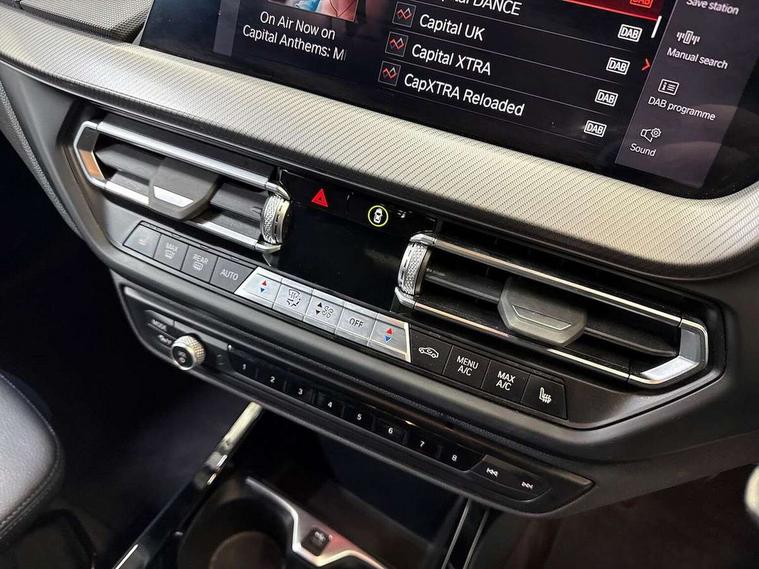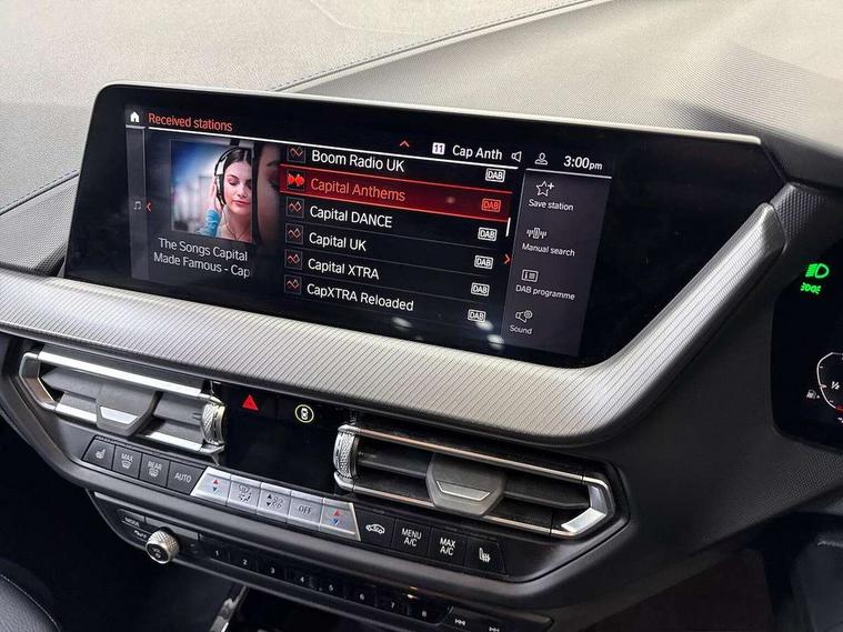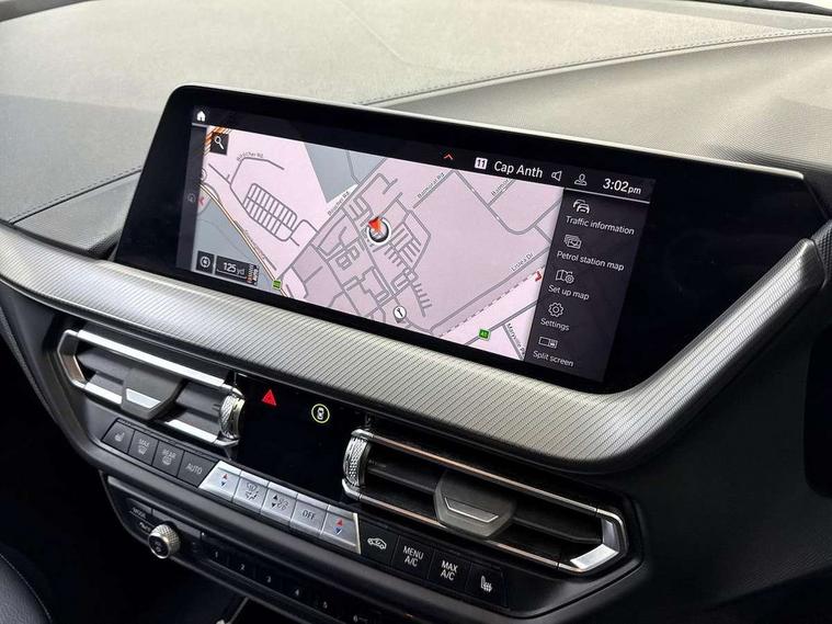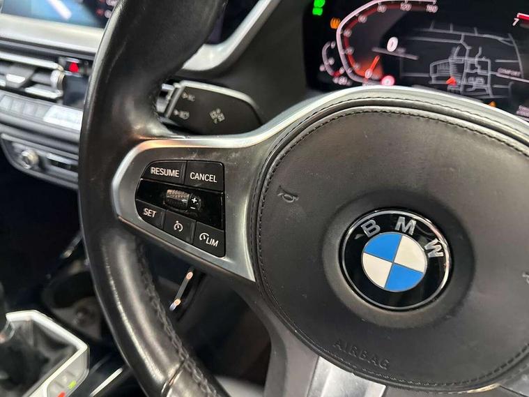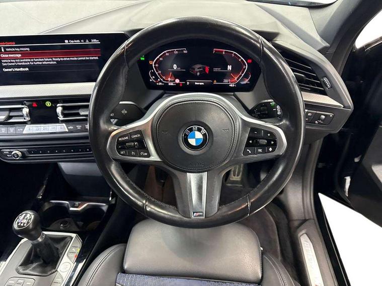 Active guard plus, Attentiveness assist, BMW ConnectedDrive online services, BMW Teleservices, Check Control warning system for monitoring of lights and door/luggage compartment open warning, Cruise control with brake assist, Eco pro mode, Front axle single joint with specific axle kinematics to minimise drive influences on steering + provide increased rigidity agile driving behaviour, Integrated owners handbook, Lane departure warning system, Oil sensor for level and grade, On board computer, Optimum shift indicator, Personal Profile, Pull away assistant, Rigidly mounted rear subframe - Multi link construction with separate spring / damper configuration and excellent driving characteristics, Speed limit Info including no-overtaking indicator, Speed limiter, Aluminium lightweight construction, Anti roll bar front and rear, Balancer shaft, Double VANOS twin scroll turbocharging system, Drive Performance Control, Electronic differential lock, High precision injection, M sport suspension, Petrol Particulate Filter, Twin tube gas filled shock absorbers with degressive characteristic curve, VALVETRONIC engine management, DAB Digital radio, Auto dimming rear view mirror, Automatic headlight beam throw control, Automatic windscreen wipers and automatic headlight, Body colour door handles, Body colour mirror caps, Body colour roof trims, Chrome 'M' logo side designation, Chrome exhaust twin tailpipes round 90mm in left, Chrome kidney grille frame with Satin Aluminium struts, Direction indicator side lights in exterior mirrors, Fading support, Folding side mirrors with auto dimming/folding wing mirrors with auto dimming, Follow me home headlights, Front and rear bumper system with replaceable deformation elements, Front and rear electric windows with open and close fingertip control, anti trap facility and comfort closing, Front door sill finishers in black plastic with M designation in metallic look, Green tinted heat protection glazing, Heated, electrically adjustable exterior mirror aspheric on driver side, convex on passenger side, High gloss shadowline window frame, Recess cover mirror frames and B/C pillar embelisher trim, High level third brake light, Integrated front windscreen with washer jets, LED daytime running lights, LED eyebrow turn indicators, LED front fog lights, LED Headlights, Lightweight engineering, Matt black air guide grilles, Matt black wheel arch trim, Model designation on electric bootlid, Nearside reverse light in rear light cluster, Preparation for high beam assistant, Rear fog lights, Rear side wing doors, Rear window wiper, Shark fin antenna, Trailer stabilisation logic, Visible VIN plate, Welcome lighting, 12V power socket in front centre console with blanking plug, 3 rear seat head restraints, 3 seat bench in 2nd row, 3 spoke sports leather steering wheel in black leather with black stitching and decorative finisher in pearl chrome, specific M badge + leather knob, Anthracite headlining, Black boot net with lashing eyes, Cargo function on 2nd seat row, Child seat ISOFIX attachment for two outer rear seats and front passenger seat with anchorage points, Conditioned based service, Driver and front passenger seat heating, Folding rear clothes hook, Four grab handles integrated in roof lining, Front and rear door pockets with bottle holders, Front and rear side armrest integrated into door trim, Front armrest, Front sports seats, Gearshift lever with M designation, Glove compartment, Height adjustable front head restraints, Luggage compartment for bag hooks on left and right, foldable luggage compartment liner and four lashing eyelets, Manual adjust steering wheel, Multi-function controls for steering wheel, Single front passenger seat, Storage compartment in centre console, Sun visors with vanity mirrors and insert tab, Two front centre console cupholders, Two zone automatic air conditioning, Velour floor mats, Additional interior lighting pack - 1 Series, BMW live cockpit professional pack- 1 Series, Connected pack professional - 1 Series, Interior lights pack - 1 Series, M Sport exterior styling aerodynamics pack - 1 Series, 2 tone horn, 3 point seatbelts on all seats, front pyrotechnic belt tensioners, stopper and belt force limiters, rear coded belt buckles, Airbags - Front driver/passenger, front and rear curtain head protection, front side, manual deactivation of front passenger airbag, Anti lock braking system (ABS) with brake assist, BMW emergency call, Brake drying, Braking readiness, Child proof locking system in rear door, City braking function, Comfort modes, Cornering brake control, Crash sensor activating central locking release, hazard warning lights, fuel cut off, interior lighting + activation of safety battery terminal clamp, Driver and front passenger seat belt security check, Dynamic stability control + (DSC+), Dynamic Traction Control - DTC, Electrically operated hand brake, Front and rear disc brakes, Seatbelt warning, Side impact protection, Tyre pressure monitoring system, Warning triangle and first aid kit, Central locking switch for all doors, fuel filler cap and luggage compartment, Deadlocking function system to all doors, Drive away locking system on all doors and luggage compartment with de-activated in iDrive settings, Locking wheel bolts, Remote control with integrated key with High-gloss Black inlay and M designation and 1 button for open/ close lock, window, open luggage compartment, Start/stop button illuminated in centre console with keyless engine start and auto start stop deactivation button, Thatcham Cat.1 alarm and immobiliser, Wheel slip limitation close to the actuator (ARB), Contrast stitching on instrument panel, Electrically powered 12V compressor, Reduced rolling resistance tyres,