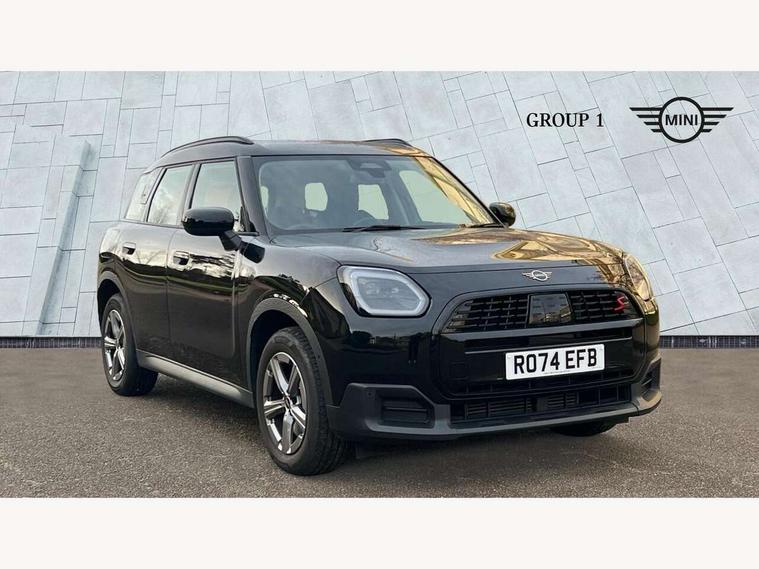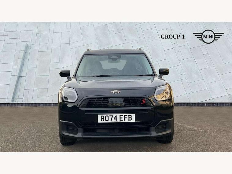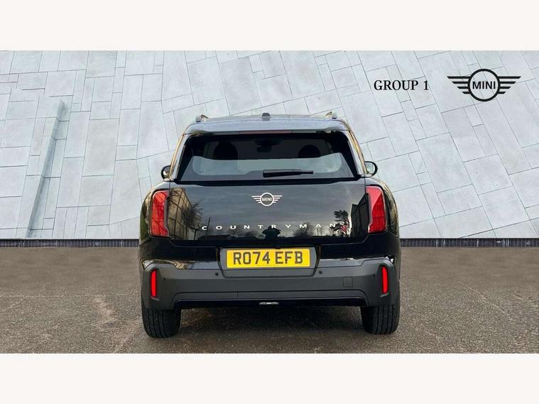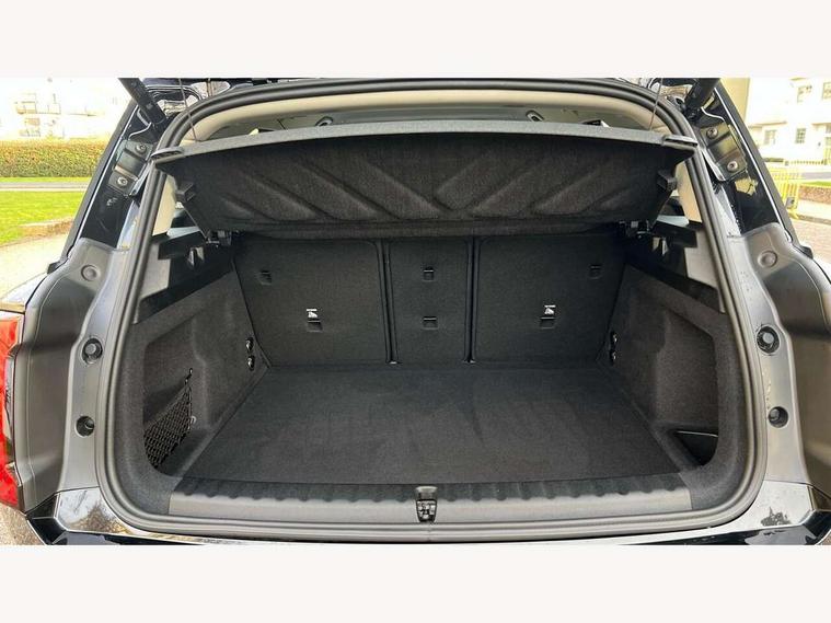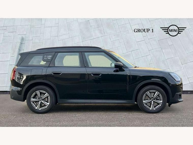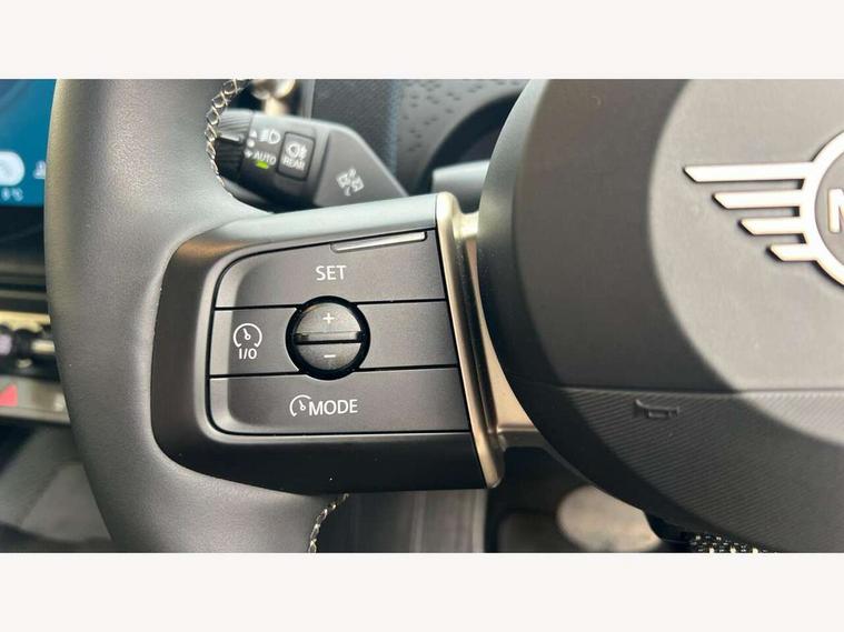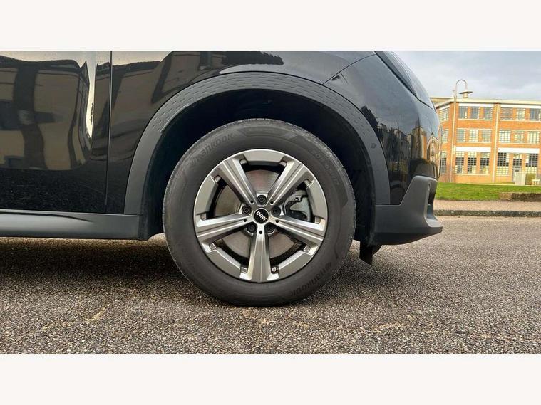 Bluetooth connection, Circular OLED Screen, Compatible mobile phone bluetooth with audio streaming, Cruise Control (DCC), Digital dashboard display, Driving assistant, Driving Assistant Plus Preparation, E-call, Electro-mechanical speed dependant steering assistance, MINI Experience Modes, MINI Head up display, Mini navigation system, MINI TeleServices, Parking assistant in camera and ultrasound based assistance system, rear view camera, parking aid and distance control, Auto transmission with Paddles, Larger capacity fuel tank, 6 speakers, DAB Digital radio, Personal eSim, Auto tailgate, Electric adjustable heated door mirrors, Front and rear electric windows, Heated rear window, High beam assistant, Interior rear-view mirror with automatic anti-dazzle function, LED daytime running lights, LED headlights with extended contents including Adaptable light signatures, LED rear lights, LED third brake light, Rain sensor with auto headlights, Rear side wing doors, Rear window wiper, Roof rails, 3 Seat sliding rear bench in 2nd row, 60/40 split rear bench seat, Auto air conditioning, Driver and front passenger seat heating, Floor mats, Front armrest, Front headrests, Heated steering wheel, Height and length steering column adjustment, Light headliner, Luggage compartment separating net, Rear headrests, Seat adjustment for rear seats, Single front passenger seat, Sport Vescin Steering Wheel, Sunvisors with vanity mirrors, Vescin/Cloth upholstery, Wireless charging tray, Interior and exterior mirror package - Mini Countryman, 3x3 point rear seat belts, 6 Airbags - front, side, head and seat belt tensioners, ABS, DSC - Dynamic Stability Control, Electronic handbrake, Electronic Stability Programme (ESP), Front ISOFIX (iSize), Hill descent control, Hill hold assist, Hill start assist, Manual rear child locks, Traction control, Tyre pressure monitoring system, Warning triangle, Alarm system with tilt sensor, monitoring doors, bonnet interior and tailgate, Auto drive away locking, Comfort access system, Deadlocking function, Electronic vehicle immobiliser, Locking wheel bolts, Remote control locking, Start/stop toggle with keyless go, Black/Blue dashboard knit, MINI Mobility Kit,