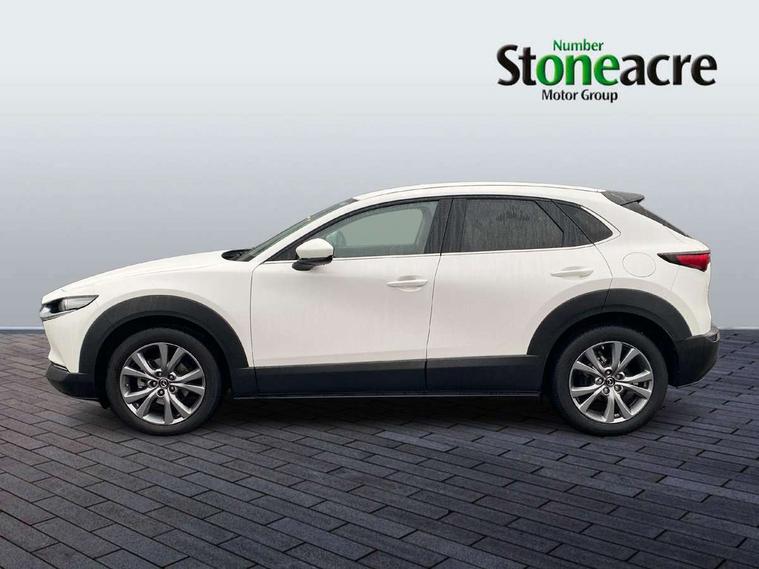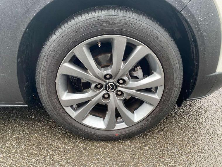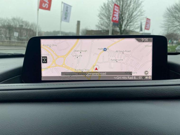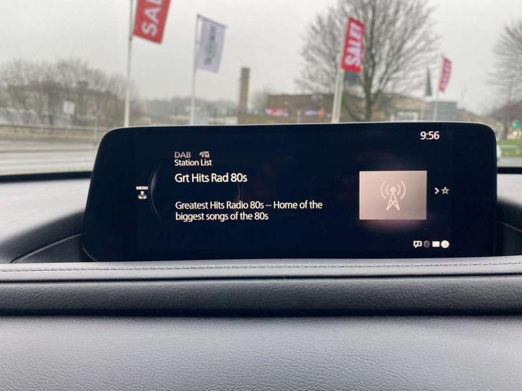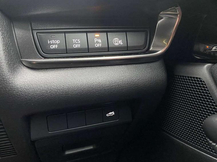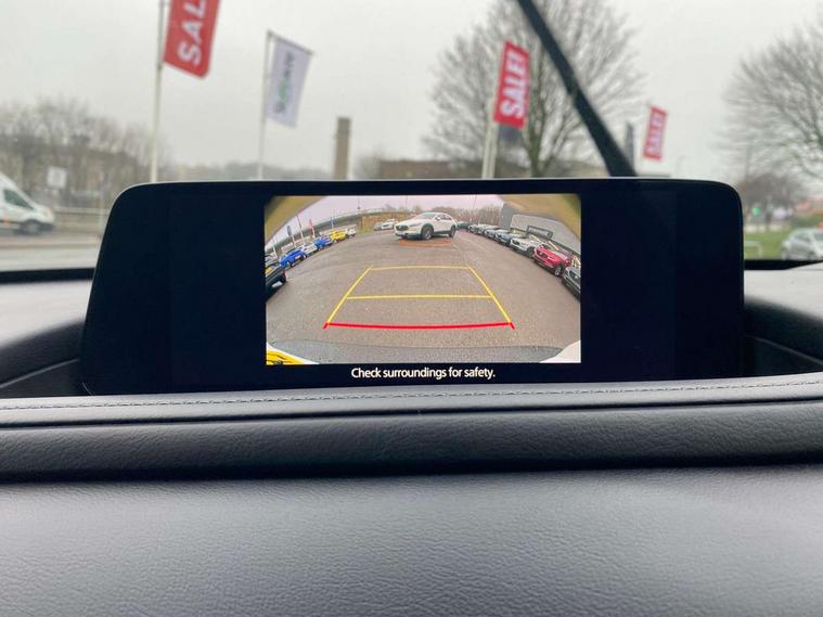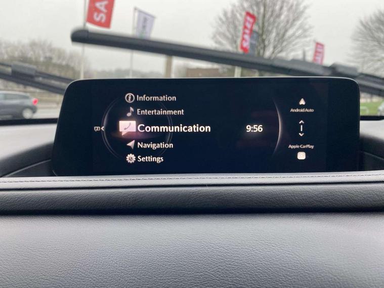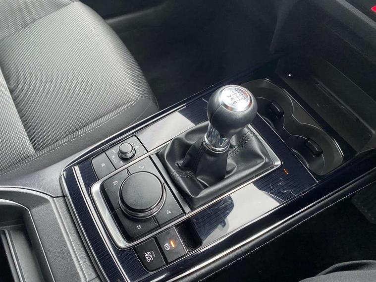 10.25" display with Mazda Connect infotainment, 7" TFT Colour driver instrument panel display, Adaptive cruise control (Mazda radar cruise control), Blind spot monitoring with rear cross traffic alert, Driver attention alert system, E-call with GPS, Emergency stop signalling system, Engine start/stop button, Front and rear parking sensors, Integrated Alexa Voice Assistant, Integrated bluetooth, Integrated Mazda navigation system, Intelligent speed assist, Lane keep assist system (LAS) with Lane departure warning system (LDWS), Mazda connected services, PAS, Power lift gate, Qi wireless charging, Reversing camera, Service indicator, Tailgate, Traffic sign recognition, Trip computer, Windscreen projected colour active driving display (HUD), Wireless Apple CarPlay/Android Auto, Cylinder Deactivation, i-stop, 2 x USB Type-C inputs, AM/FM and DAB radio, Bose surround sound system with 12 Speaker, Bose center point, Bass match and audio pilot technology, Multimedia Commander including separate volume dial, Steering wheel mounted audio/bluetooth controls, Adaptive LED Headlights, Auto dimming driver's door mirror, B-pillar and C-pillar garnishes in gloss black finish, Body coloured, electrically adjustable, heated auto power folding door mirrors with integrated indicators, Chrome finish signature wing in front grille, Coming/leaving home lighting function, Dual bright finish exhaust tip trim, Dusk sensing headlights, Electric front/rear windows with one touch auto up/down, Frameless auto dimming interior rear view mirror, Front kodo turn signal, Gloss black front grille, Gloss black rear roof spoiler, High beam assist, LED auto headlight levelling, LED signature daytime running lights, Privacy glass (rear side windows and rear screen), Rain sensing front wipers with adjustable speed and intermittent wipe, Rear fog lights, Rear side wing doors, Rear wiper, Signature LED rear combination lights, Third brake light, 12V power outlet in centre console, 3 seat bench in 2nd row, 60/40 split fold down rear seats, Bright interior trim accents with steering wheel centre bezel, surround of engine start / stop button and glove box handle, Cloth upholstery with interior accents, Dark cloth door panel inserts, Dashboard, door cards and front centre armrest in black cloth, Driver and front passenger visors with covered vanity mirror and driver ticket holder, Driver seat manual slide, recline, height and seat tilt adjust, Driver, front passenger and two rear door storage, Driver, Front passenger and two rear grab handles with coathooks, Dual zone climate control air conditioning with rear air vents, Folding rear centre armrest with two cup holders, Front and rear (x3) head restraints, Front and rear LED lighting, Front armrest, Front centre storage with two cupholders with lid, Front passenger seatback pockets, Front passengers seat manual slide, recline and height adjustment, Gear shift indicator, Glovebox illumination, Heated front seats with 3 stage setting, ISOFIX child seat anchorage points attached on outer rear seats, Leather wrapped gear shift knob, Leather wrapped steering wheel with telescopic and tilt adjustment, LED luggage compartment lighting, Light roof headlining and pillars, Roof mounted sunglasses holder, Single front passenger seat, 3 point ELR front seat belts x2 with pretensioners, 3 point ELR rear seat belts, Anti-lock braking system (ABS), Drivers knee airbag, DSC - Dynamic Stability Control, Electronic parking brake with auto disengage function and auto hold function, Front and rear curtain airbags, Front dual stage driver and single stage front passenger airbags, Front passenger airbag cut-off switch, Front side airbags, Front smart city brake support, G-Vectoring control plus, Hill launch assist, Manual child lock in rear doors, Mild Hybrid system with regenerative braking, Seatbelt reminder for driver/front passenger and rear seats, Traction control system (TCS), Tyre pressure monitoring system (TPMS), Remote central locking with deadlocking and automatic door lock when driving, Smart keyless entry, Thatcham accredited alarm and immobiliser, 18" Silver metallic alloy wheels, Emergency tyre repair kit,