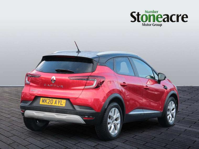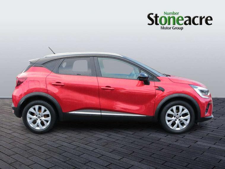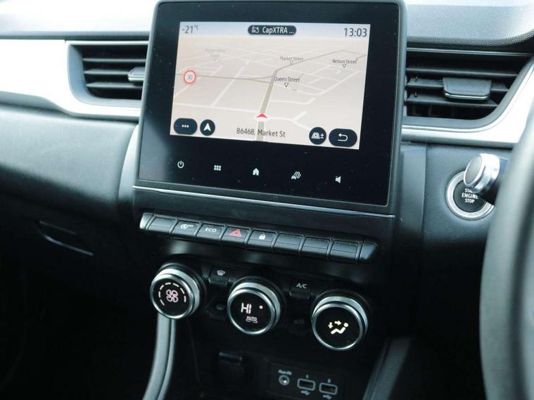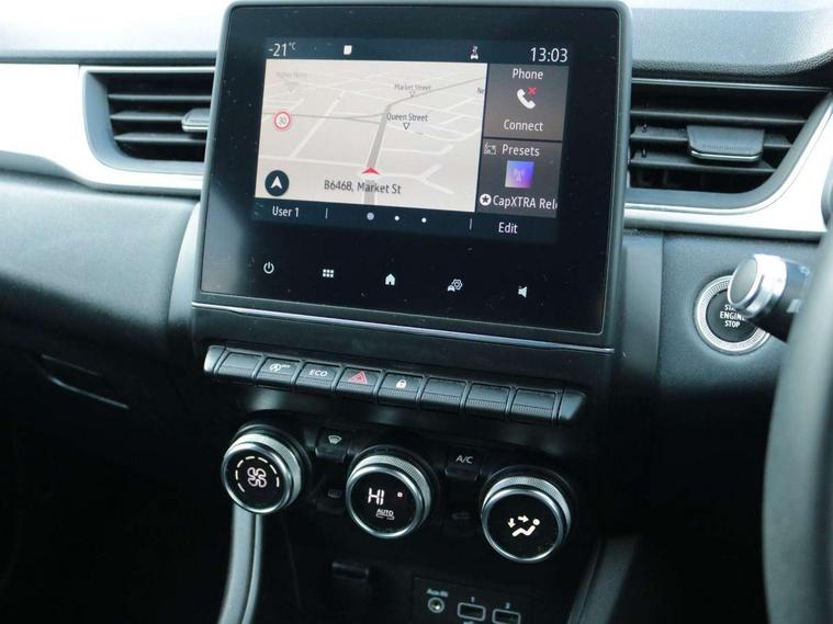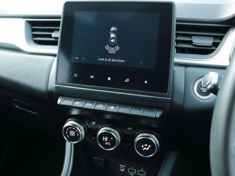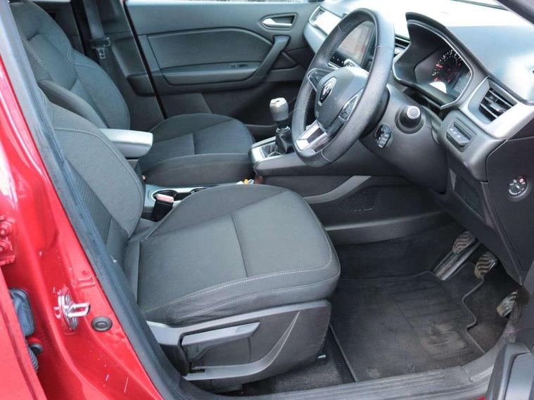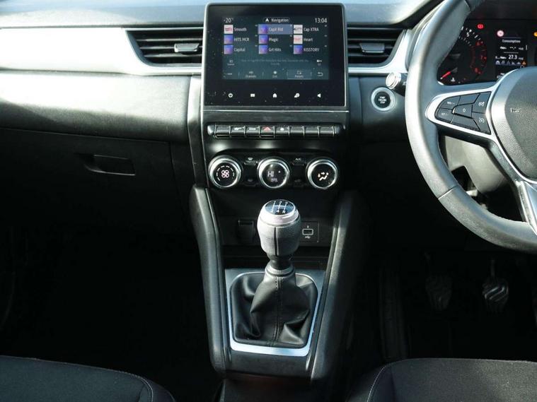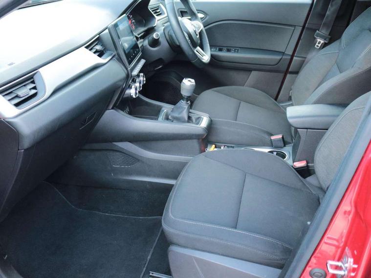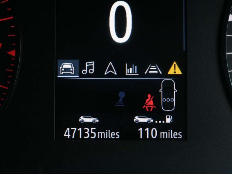 4.2" TFT Driver information display, Cruise control + speed limiter, eCall emergency call system, Eco mode, Gear change indicator, Lane departure warning system, Lane keep assist, Renault automatic emergency assist, Traffic sign recognition, Trip computer, Variable assistance power steering, EasyLink Nav 7" touchscreen, 4x20W amp, FM DAB, sound auditorium, 2xUSB, 1xJack, Bluetooth, smartphone integration plus, Apple carplay/Android auto, Automatic front wipers with rain sensors, Automatic headlights, Body colour door handles, Body coloured bumpers, Body coloured door mirrors, Electric adjustable/heated/folding door mirrors, Electric front windows + one touch + anti-pinch, Electric rear windows, Extra tinted glass in rear windows and tailgate, Full LED front and rear headlamps integrating daytime running lights at the front and rear, Gloss black side door protection with chrome effect, LED front fog lights, Rear fog lights, Rear wiper, Roof bars, Variable speed on front windscreen wipers, 12V Accessory socket, 3 rear headrests, 5.2L front glovebox, 60/40 split folding rear seat bench, Automatic climate control with one touch demist function, Centre console storage tray, Cloth upholstery, Front head restraints, Heating system with pollen filter, Height adjustable driver's seat, Height/reach adjust steering wheel, ISOFIX child seat fixing points on rear outermost seats, Middle console with armrest and storage, Rear air vents, Synthetic leather steering wheel, 3 rear seatbelts, ABS+EBA, AEBS, Distance warning alert, Driver and front passenger, side, head and curtain airbags, Driver height adjustable seat belt, Electric parking brake, Electronic stability control, Front and rear no seatbelt warning sound, Front dash warning indicator in case of heavy braking, Front driver and passenger side airbag deactivation, Hill start assist, Rear door and window child locking function for rear door, Tyre pressure warning light, Anti drill door locks and locking fuel cap, Deadlocking system, Hands free keycard with push button and start/stop function, RAID (Renault Anti-Intruder Device) automatic door locking, Remote central locking with thatcham approved immobiliser, Black soft touch dashboard with black gloss air vent surrounds,