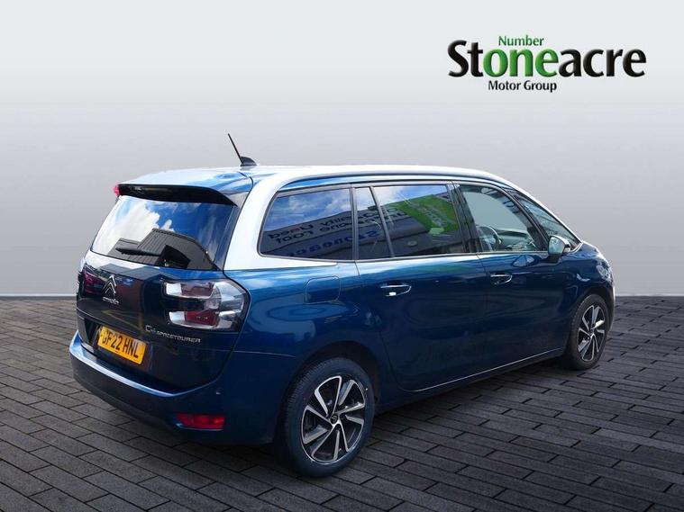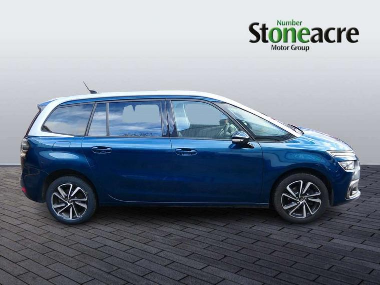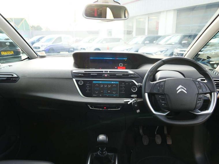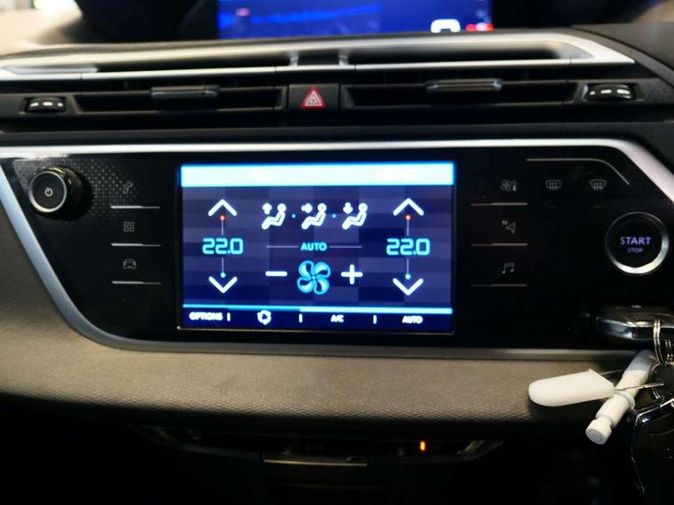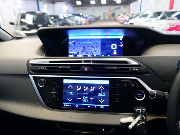 12" Panoramic HD central display, 7" Touch drive interface, Active cruise control with speed limiter and braking function, Active lane departure warning system, Audible lights on warning, Citroen connect box emergency assist system, Citroen Connect Nav, Coffee Break Alert, Driver attention alert system, Electric power assisted steering, Find my car feature, Forward collision warning, Front parking sensor, Mirror screen with Apple CarPlay and Android auto, Park assist and blind spot monitoring (with LED alert on door mirrors), Rear parking sensors, Reversing camera, Service indicator, Speed limit recognition and recommendation, Trip computer, Diesel particulate filter, Bluetooth handsfree and media streaming with USB socket, DAB Digital radio, RDS radio with 6 speakers and Aux socket, Steering wheel mounted controls, 3D effect LED rear lights, Aluminium front sill scuff protectors, Aluminium side profile with integrated roof bars, Auto dimming electrochrome rear view mirror, Automatic activation of hazard warning lights, Automatic lights and windscreen wipers, Black electrically heated, folding and reverse dipping door mirrors with LED courtesy light, Body colour bumpers, Body colour painted door handles, Chrome lower front bumper insert, Dark tinted side windows and rear windscreen, Double xenon headlights, Foot operated motorised tailgate, Front and rear electric windows with anti pinch and one touch operation, Front fog lights, High level LED brake light, Intelligent beam headlights, LED daytime running lights, LED front indicators, Panoramic athermal windscreen with sliding interior sun blinds, Panoramic glass sunroof with dark tinted glass/electric sunblind, Rear fog lights, Rear side wing doors, Rear wiper, Windows total closure mode, 12 volt accessory power socket in central storage compartment, 8 lashing eyes in boot, Air vents for row 2 rear seat passengers, Automatic digital dual zone air conditioning, Black panel on/off instrument lighting, Boot light, Child observation mirror, Cup holders, Driver and front passenger seats adjustable armrests, Driver/passenger sunvisors and vanity mirrors, Fabric load cover (parcel shelf), Fixed centre storage box with sliding lid, Fold-down aircraft style tray tables (integrated into back of front seats), Front and rear courtesy reading lights, Front and rear floor mats, Front door pockets with bottle holders, Front headrests, Height adjustable front passenger seat, Height and reach adjustable leather steering wheel with control zones, Height/tilt adjustable driver's seat, Illuminated and ventilated glove box, Illuminated central storage compartment (housing USB and 12 volt connection), Integrated retractable rear side window sun blinds, Ondulice cloth/leather upholstery with hype grey ambience, Rear underfloor storage [row 2], Seats with individual sliding fore/after adjustment in row 2, Single front passenger seat, Storage under driver's seat, Three individual full size seats with adjustable recline angle and retractable headrests in row 2, Three ISOFIX mounting points with top tether on all row 2 rear seats, Two individual seats with retractable headrests in row 3, ABS with Electronic brakeforce distribution and Emergency braking assistance, Active safety brake, Automatic electronic parking brake, Driver, front passenger, front lateral and curtain airbags, Electronic Stability Control (ESC) with intelligent traction control (auto re-activation 30mph+), Five 3 point inertia reel seat belts, Front inertia reel seatbelt with pre-tensioners and force limiters, Hill start assist function, Manual child lock in rear doors, Mono-tone horn, Passenger airbag deactivate switch, Tyre under inflation indicator, Unfastened seatbelt visual warning system on all seats + audible warning for driver/front passenger (front passenger presence detection), Immobiliser, Keyless entry and start, Perimetric and volumetric anti theft alarm, Remote central locking + deadlocks, Aluminium dashboard trim and air vent surrounds, 17" Shamal diamond cut alloy wheels,