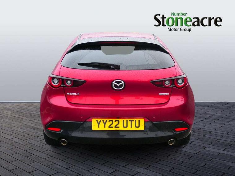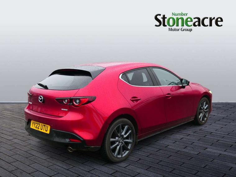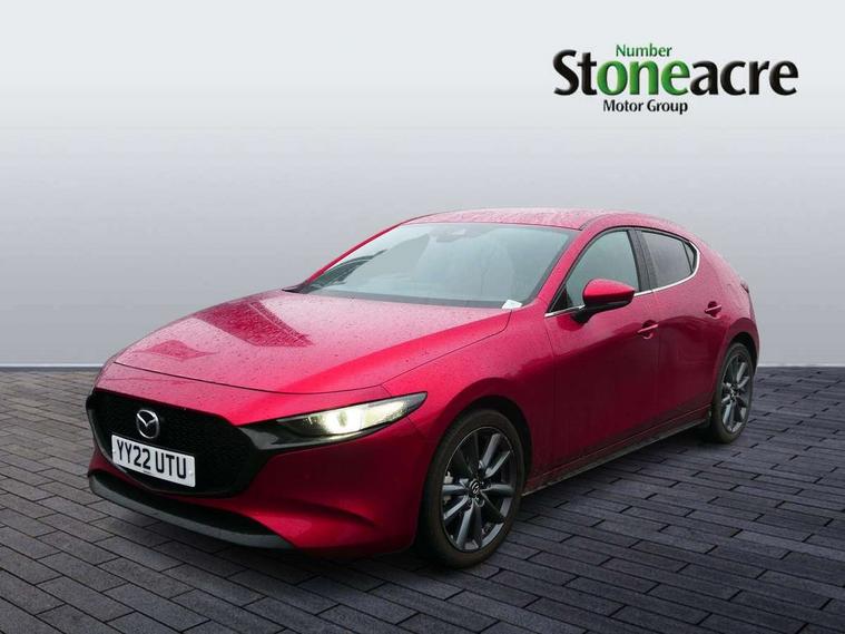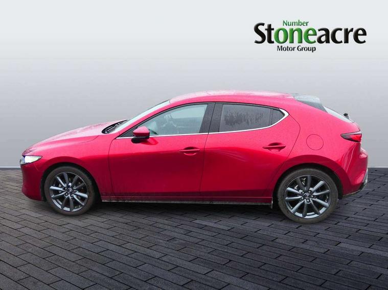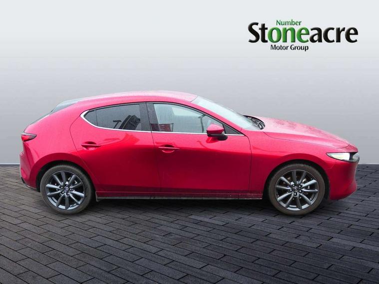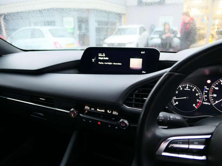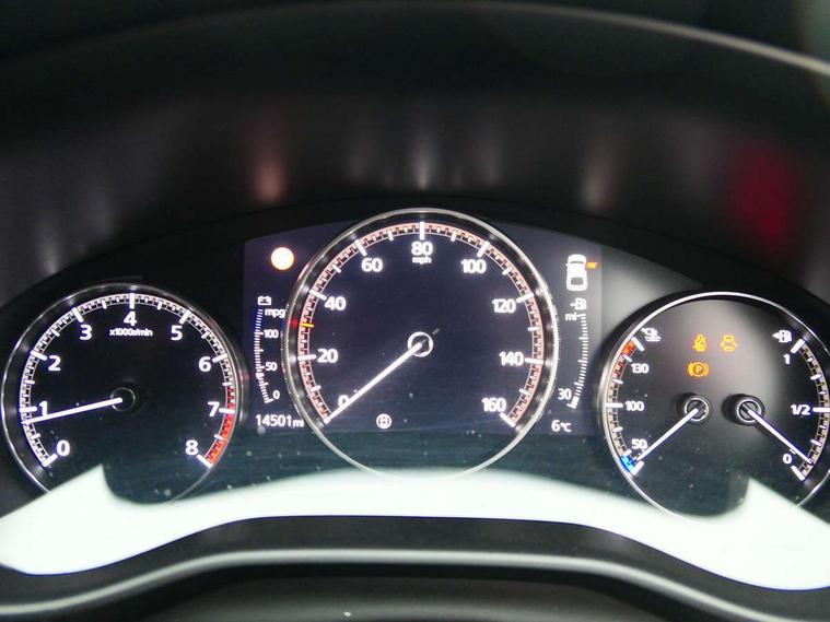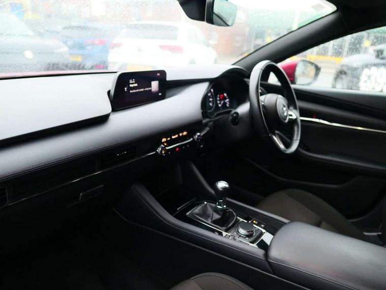 7" colour TFT display, 8.8" Colour centre touch screen display with Mazda Connect infotainment, Apple car play/Android Auto, Audio transfer from bluetooth devices, Blind spot monitoring with rear cross traffic alert, Colour active driving display inc Windscreen projected, Traffic Sign Recognition, turn-by- turn navigation and Mazda Radar Cruise Control information, Digital instrument cluster, Driver attention alert system, E-call with GPS, Emergency stop signalling system, Engine start/stop button, Front and rear parking sensor with audible and visual warning, Head up Display, Integrated bluetooth with steering wheel mounted controls, Intelligent speed assist, Lane keep assist system (LAS) with Lane departure warning system (LDWS), Mazda connected services, Mazda Navigation System with european mapping, Mazda Radar Cruise Control, Mobile App interface, Multimedia Commander, PAS, Reversing camera, Service indicator, Traffic sign recognition (TSR), Trip computer, Cylinder Deactivation, i-stop, Mazda Multimedia System with AM / FM / DAB radio with 8 speakers, Adaptive LED Headlights, Auto dimming driver's door mirrors, B-pillar garnish in piano black, Body coloured, electrically adjustable, heated auto power folding door mirrors with integrated indicators, Coming/leaving home lighting function, Dark metallic finish signature wing, Dual chrome tailpipes tip, Dusk sensing headlights, Electric front/rear windows with one touch/auto up/down, Frameless auto dimming interior rear view mirror, Front body coloured bumper with black lower bezel, Front kodo turn signal, Gloss black finish front grille, Gloss black rear roof spoiler, LED indicator lights, LED third brake light, Privacy glass with dark tinting on rear side windows and rear window, Rain sensing front wipers with adjustable sensitivity and speed, Rear colour coded bumper with gloss black lower moulding, Rear fog lights, Rear side wing doors, Signature LED daytime running lights, Signature LED rear combination lights, Speed adjustable rear wash wiper with intermittent wipe, 12v electrical power outlet, 3 seat bench in 2nd row, 60/40 split fold down rear seats, Black cloth door panel inserts, Cloth upholstery, Dark roof headlining, ceiling and pillars, Driver, front passenger and two rear door pockets, Driver, Front passenger and two rear grab handles with coathooks, Driver/passenger sunvisors + vanity mirrors (drivers side with ticket holder), Drivers seat manual slide recline and height adjustment, Dual zone climate control air conditioning, Folding rear centre armrest with two cup holders, Front and rear courtesy lamps, Front armrest, Front centre storage with two cupholders, Front head restraints, Front passenger seatback pocket, Front passengers seat manual slide, recline and height adjustment, Gear shift indicator, Heated front seats with 3 stage setting, Illuminated glovebox, Interior colouration dashboard and doorcards in black with dark stitching, ISOFIX child seat anchorage points attached on outer rear seats, Leather wrapped gear shift knob, Leather wrapped steering wheel, LED interior light, Luggage compartment light, Power outlet in luggage compartment, Roof mounted sunglasses holder, Single front passenger seat, Three height adjustable rear head restraints, Tilt/height adjustable steering wheel, USB input, 3 point ELR front seatbelts with pretensioners, 3 rear 3 point seatbelts with ELR, Anti-lock braking system (ABS), Drivers knee airbag, DSC - Dynamic Stability Control, Dual stage driver and single stage passenger airbags, EBD - Electronic brakeforce distribution, Electronic parking brake with auto disengage function and auto hold function, Front and rear curtain airbags, Front passenger airbag cut-off switch, Front side airbags, Front smart city brake support, G-Vectoring control plus, Hill launch assist, Intelligent Traction Control system, Manual child lock in rear doors, Mild Hybrid system with regenerative braking, Seatbelt reminder for driver/front passenger and rear seats, Tyre pressure monitoring system (TPMS), Auto door lock when driving, Remote central locking + deadlocks, Smart keyless entry, Thatcham accredited alarm and immobiliser, 18" Grey alloy wheels, Emergency tyre repair kit,
