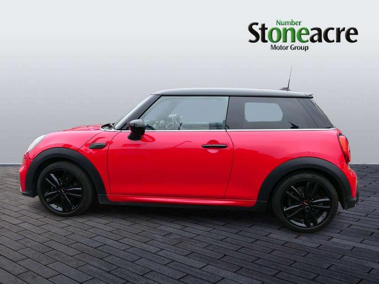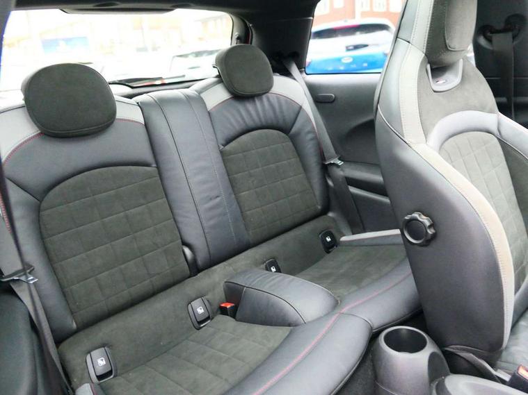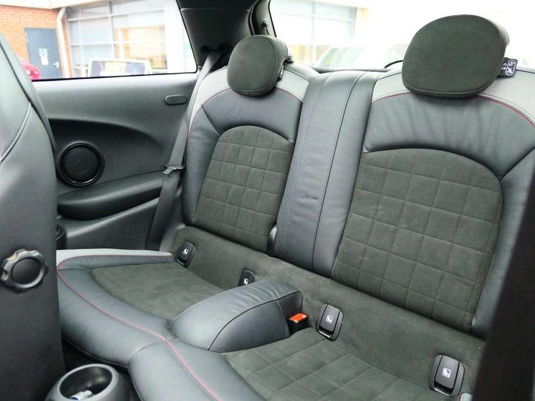 Apple CarPlay, Automatic start/stop function with brake energy recuperation, Compatible mobile phone bluetooth with audio streaming, Cruise control with brake assist, Electro-mechanical speed dependant steering assistance, Flexible car sharing preparation, Instrument cluster, MINI Driving Modes - centre toggle switch to control driving setting (sport, mid and green), Mini E-call, MINI TeleServices, On board computer, Rear park distance control, Service interval indicator, Double Vanos system, Fully variable valve control, High precision injection, Intelligent adaptive suspension, Performance Control, Steptronic transmission with double clutch, 8.8" touchscreen with LED ring, FM tuner and DAB digital radio, 3rd brake light, Automatic headlight activation switch, Body colour fuel filler cap, Chrome border high gloss black slats radiator grille, Dynamic brake lights, Electric front windows, Exhaust tailpipe on left with chrome finisher, Heated rear window, Heated windscreen washer jets, JCW Aerodynamic kit - Front and rear bumpers with sporty JCW styling and part-painted side sills with MINI John Cooper Works door sill finishers, John Cooper Works rear spoiler, LED headlight with closed ring and daytime driving lights, Metal door sill strips with MINI imprint, Model logo Cooper on right of tailgate, Rain sensor window wipers, Rear fog lights, Rear LED lights with union jack design, Rear window wiper, Side scuttle panel with integrated indicator, Sun/heat protection glass, White indicator lenses, 12V Accessory socket in centre console, 2 seat bench in 2nd row, 4 lashing eyes in luggage compartment, 60/40 split folding rear seat, Anthracite headliner including grab handles and clothes hooks, Carbon black colour line - Knee roll and door armrest, Chrome interior highlights, Cupholders, Front and rear isofix with front passenger airbag deactivation, Front floor mats in velour, Glove compartment, Height and length steering column adjustment, Interior lighting with 12 different colours across the dashboard, underneath door bezel with illuminated laser-engraved design on central display, JCW Sport seats with integrated headrests, adjustable thigh support and John Cooper Works logo, Leatherette gearshift lever and handbrake gaiters, LED reading lights, vanity mirror lights, front foot well light and spotlight on front seats, Manual air conditioning, Mechanical seat adjustment - forward/back & backrest for front seats and driver seat height adjust, Multifunction steering wheel, Passenger seat height adjuster, Single front passenger seat, Storage compartments in doors, Sunvisors with vanity mirrors, Tool kit, Walknappa leather steering wheel with grey seam and John Cooper Works badge on Piano Black lower steering wheel spoke, Piano black exterior pack - Mini Hatchback Cooper, 3 point seatbelts on all four seats, 6 Airbags - front, side, head and seat belt tensioners, Anti-lock braking system (ABS), DSC - Dynamic Stability Control, Front and rear disc brakes, Single tone fanfare horn, Tyre pressure monitoring system, Alarm system with tilt sensor, monitoring doors, bonnet interior and tailgate, Electronic vehicle immobiliser, Start/stop toggle with keyless go, Piano black interior trim,