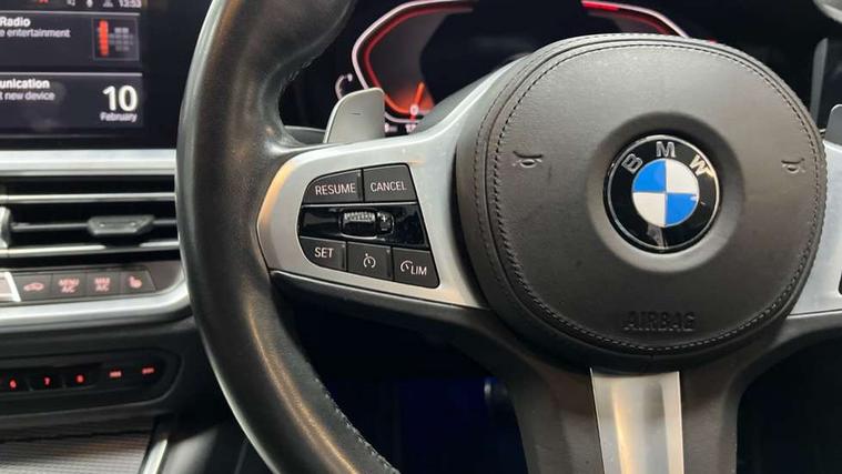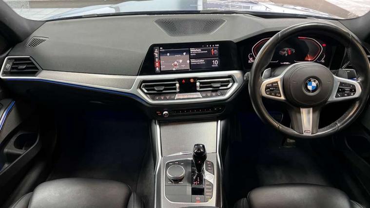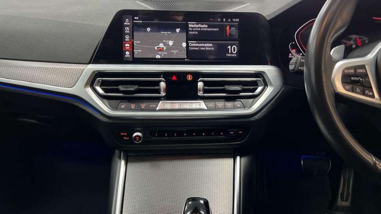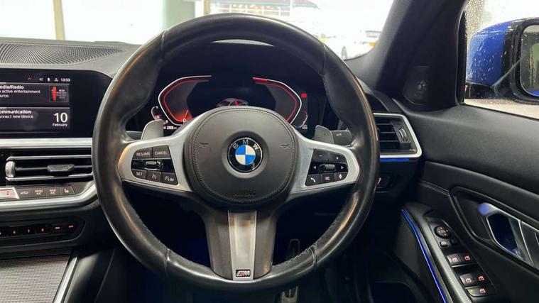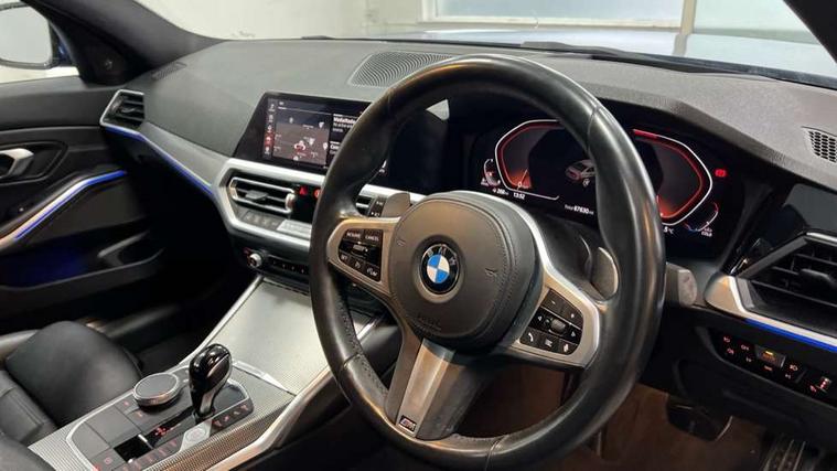 Active guard plus, Attentiveness assist, Auto start-stop, BMW iDrive controller on centre console, BMW Live Cockpit Professional sat nav system including 10.25" high resolution display and Intelligent Voice Assistant, BMW Online services, BMW Teleservices, Brake pad wear indicator in front and rear, Check Control warning system for monitoring of lights and door/luggage compartment open warning, Condition based service, Front/rear park distance control, Instrument cluster with speedometer with mph readout, tachometer, fuel gauge and oil temperature gauge, Oil sensor for level and grade, On board computer - average speed+fuel consumption, service interval, clock/date, odometer/trip meter, outside temperature display and ice warning, Optimum shift indicator, Pesonal profile, Variable sport steering, Battery cut-out switch, Diesel particulate filter, Drive performance control with ECO PRO comfort + sport mode, Electronic differential lock, Incorrect fuelling protection, Larger capacity fuel tank, Sport automatic transmission with steering-wheel mounted gearshift paddles and launch control, DAB tuner, Acoustic glazing, Active airstream chrome frame kidney grille with 8 high gloss black vertical slats, Automatic headlight beam throw control with load dependent regulating reaction, dynamic compensation of braking dive and acceleration squat, Black roof mouldings, Body colour - fuel filler flap, front and rear bumpers, door handles and mirror caps with integrated turn indicator + bottom segment in matt black, Dynamic brake lights, Extended LED headlights, Exterior mirrors - electrically folding with anti-dazzle, Front and rear bumper system with replaceable deformation elements, Front and rear electric windows with open and close fingertip control, anti trap facility and comfort closing, Front black door sill finishers with BMW designation, Green tinted heat protection glazing, Interior rear view electrochromatic mirror with automatic anti dazzle function, LED front fog lights, Left and right split exhaust tailpipes, Lightweight engineering, M aerodynamic body styling, M designation on left and right front side panels, M designation side badges, Matt black exterior B pillar, Model designation on right side of tailgate, Rain sensor with automatic headlight activation, Shark fin antenna, Two part LED tailights in L-shape with components in smoked glass, brake light, LED turn indicator and rear fog light, Visible VIN plate, Welcome lights in interior and door handle area, Windscreen wipers with integrated washing jets, 12V power socket in front storage compartment, 2 front cupholder in centre console with clamping elements and matt black inlay, 3 rear seats with non folding headrests with 3 point seat belts, 3 spoke M leather steering wheel, 4 pieces lashing eyelets in luggage compartment, 40:20:40 split folding rear bench seat, Ambient lighting, Anthracite headlining, Armrest integrated in front and rear door trim + front centre console armrest, Centred top Luggage compartment lights, Four grab handles integrated in roof lining, Front and rear door pockets, Front and rear velour floor mats, Front sport seats, Heated driver and front passenger seats, Height adjustable mechanically and infinitely variable steering column, Illuminated glove compartment with separate small compartment, Interior lighting - front centre over interior mirror with soft light, rear centre and front and rear footwell lighting, Rear centre armrest with 2 cupholders, Rear centre console with storage compartment and ventilation grille, Steering column length adjustment lever, Sunvisors with vanity mirrors and ticket pocket, Three zone automatic air conditioning, Through loading system with 40/20/40 split folding rear seat, Toolkit located in luggage compartment, Vernasca leather upholstery, Connected pack professional - 3 Series Saloon/Touring, M Aerodynamics pack - 3 Series Saloon/Touring, 2 tone horn, ABS, Automatic Stability Control (ASC), BMW emergency call, Brake assist function, Brake drying, Brake energy regeneration, Braking pre-tensioning, Child proof locking system in rear door, Child seat ISOFIX attachment rear outer seats, Cornering brake control (CBC), Crash sensor activating central locking release, hazard warning lights, fuel cut off, interior lighting + activation of safety battery terminal clamp, Driver and front passenger front and side airbags with passenger deactivation and ITS front and rear head airbags, Dynamic brake control, Dynamic Traction Control - DTC, Electromechanical parking brake with automatic drive away release and auto hold function, Hill start assist, Seat belt security check for driver and front passenger, Side impact protection, Three 3 point seat belts on all seats including front belt stopper, pyrotechnic belt tensioners and belt force limiters, Tyre pressure monitoring with three level warning strategy, Variable torque distribution, Ventilated front and rear disc brakes, Warning triangle and first aid kit, Alarm system (Thatcham 1) with remote control and electronic engine immobiliser, Central locking switch for all doors, fuel filler cap and luggage compartment, Remote control with integrated key one button open/close vehicle and windows, sole opening of the luggage compartment lid and panic mode, Selectable automatic lock when driving away, Start/stop button with Comfort Go keyless engine start and auto Start/stop deactivation button, Vehicle key with M specific designation, Reduced rolling resistance tyres,