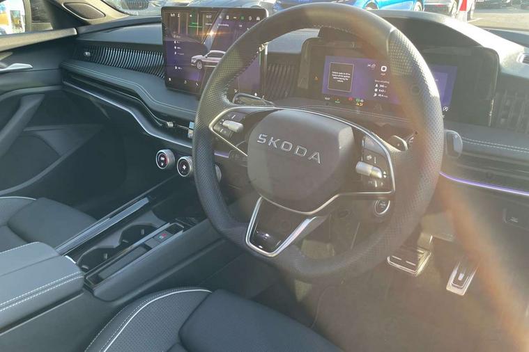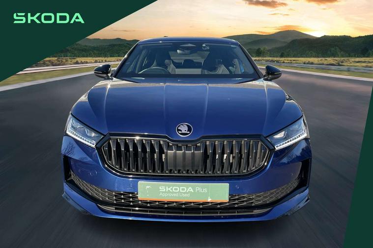 13" touchscreen display with satellite navigation, 4x USB-C ports (2x in front centre console and 2x in rear) (45W), Adaptive cruise control with speed assist, lane assist plus and traffic tram assist, Blind spot detection with door exit warning, Bluetooth system, CareConnect and Emergency Call, ChatGPT functionality, Driver fatigue sensor, Easy boot close funtion, Front assist with extended predictive pedestrian protection, Front cross traffic assist, PAS, Quick start all heating software functionality, Stop/start engine system, Traffic sign recognition, Turn assist with evasive assistance, Virtual Cockpit - 10.25" digital display, Voice control system, Washer for rear camera, Wireless charging for one smartphone (15W) with cooling function, Wireless smartlink apple carplay, SmartLink+ android auto, Dynamic chassis control plus with progressive dynamic steering, DAB Digital radio, Display cleaner, FM radio connection, Web radio connection, Acoustic side windows and interior noise suppression, Backdrop lighting, Black exterior styling window and grille surrounds, Body colour door handles, Dynamic range control with poor weather light and integrated fog light, Electrically adjustable, heated, folding and driver side auto-dimming door mirrors with memory function, integrated indicators and logo projection, Frameless auto-dimming rear view mirror with USB-C, Gloss black door mirrors, Ice scraper in fuel tank cap, LED 3rd brake light, Light assist with High beam control, Light assistant (coming/leaving home/tunnel light), Privacy glass, Rear fog lights (x2), Rear side wing doors, Skoda lettering in black, Sportline badging, Sports bumpers, Windscreen wipers with rain sensor, 12V socket 1x centre console 1x boot, 14-way electrically adjustable, memory, front seats with 4-way pneumatic lumbar support, and extendable thigh support with smart comfort entry aid, 2x cargo elements in boot, 2x light in boot, 3 seat bench in 2nd row, 60:40 Split folding rear seats, Aluminium pedals, Bottle holders in the front doors 1.5 litre bottle and rear 1.5 litre bottle, Cup holder in front with easy open mat, Front armrest with storage box, Front sports seats, Heated and ventilated front seats, Height adjustable front and rear head restraints, Illuminated glovebox, Interior lights with control switches, Isofix child seat fittings in outer rear and front passenger seats, LED front and rear reading lights, Single front passenger seat, Skoda lettering on steering wheel, Storage compartment with cover, Storage pockets on back of front seats, Sun visors with illuminated vanity mirrors, Ticket holder on A Pillar, Tri zone climate control, Umbrella in driver's door, Light and view package - Superb, Transport package - Superb Hatchback, 3 rear seatbelts, 8 Airbags - Front driver and passenger, front side driver and passenger, centre, curtain front and rear, drivers knee, Crew protect assist, Driver and passenger seatbelts with warning light, Electronic parking brake, ESC including ABS, EBV, MSR, ASR, EDS, HBA, DSR, RBS, CBC, multi-collision brake (MKB) and Auto hold, Hill hold assist, Power operated child lock in rear doors, Alarm with interior monitoring tilt sensor and back up horn, Backrest remote release from trunk, Electronic engine immobiliser, Keyless start/stop, Remote central locking with SAFE system, Third key, Walk away locking, Decorative front door sills, 19" Torcular polished black alloy wheels with anti theft wheel bolts,