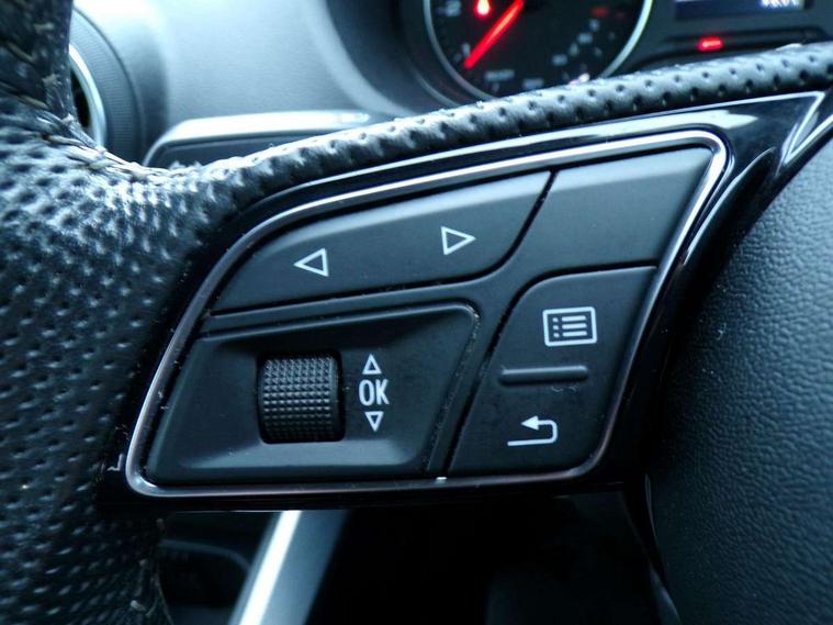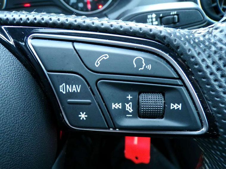 Audi drive select, Audi smartphone interface, Automatic start/stop system with recuperation, Bluetooth interface includes bluetooth audio streaming, MMI - Multi Media Interface control system, MMI SD card Navigation, Power operated tailgate, Progressive steering, Service interval indicator, Voice control system, Audi music interface - apple iPod, apple iPhone, USB storage media, compatible MP3 players, 2 x USB charging points and 1 x Aux-in, CD Drive, DAB digital radio reception, MMI radio plus with 7" colour MMI screen and MMI controller, Black window trims, Chrome exhaust tailpipe, Electrically adjustable and heated door mirrors with integrated LED side indicators, Front and rear electric windows, Front underbody guard and rear diffuser trim in selenite silver, Front windscreen with grey tinted sunband, Headlight washers, Interior mirror, LED headlights with LED rear lights + dynamic rear indicators, LED indicator lights, Rain and light sensors, Rear wiper, S Line badges on the front wings, S Line body styling - front and rear bumpers, side skirts, radiator grille, rear diffuser insert and front air intakes, Black cloth headlining, Floor mats with contrast stitching, Front centre armrest, Front headrests, Front sport seats with S embossed logo, Height/reach adjust steering wheel, Illuminated door sill trims with S logo, ISOFIX child seat mounting with top tether and electrically operated child lock, Manual seat adjustment including seat height adjustment for front seats, Stainless steel pedals, Storage compartments - Glovebox, cupholder compartment in centre console, storage compartment in rear centre console, front and rear door pockets, Three rear headrests, Connectivity pack - Q2, Non smoking pack - Q2, 3x3 point rear seatbelts, 6 airbags - Front, curtain and front side airbags, Electromechanical parking brake, Electronic stabilisation control including ABS, ASR and EDL, Extended and proactive pedestrian protection, Hill hold assist, Multi collision brake assist, Pre-sense front with pedestrian recognition, Seatbelt monitoring, Tyre pressure warning light, Warning triangle and first aid kit, Anti theft alarm, Anti theft wheel bolts, Central locking system with remote control key, Aluminium interior element, Matt brushed aluminium fascia and door trim inlays,