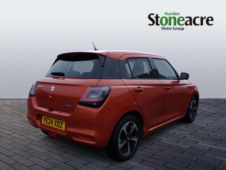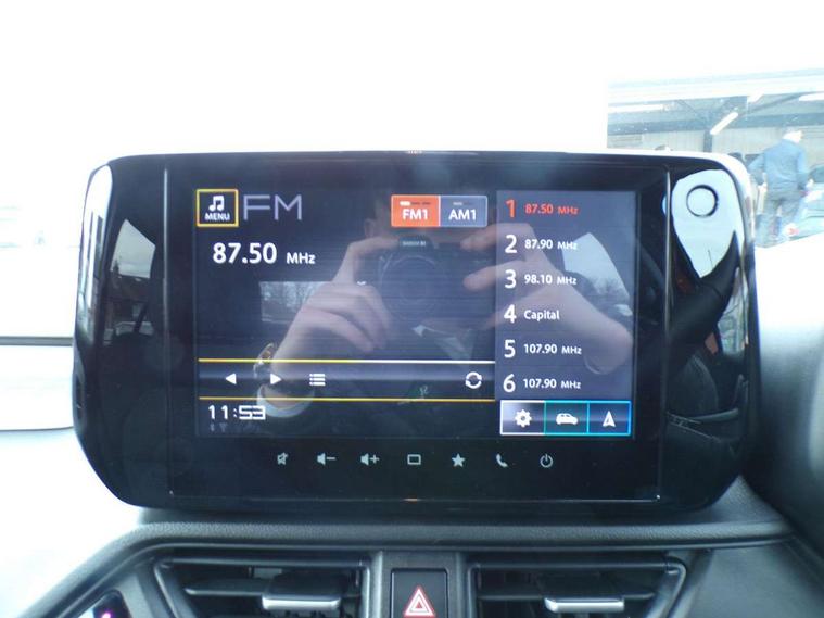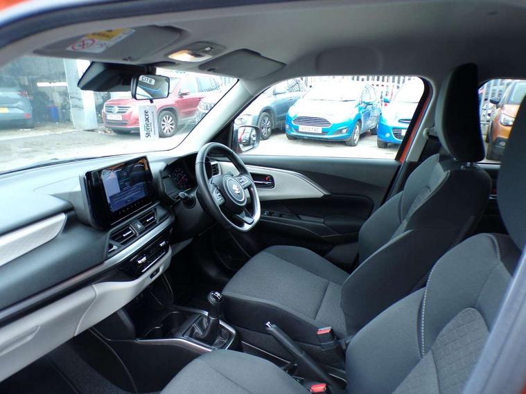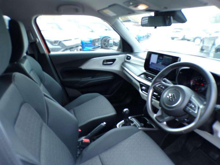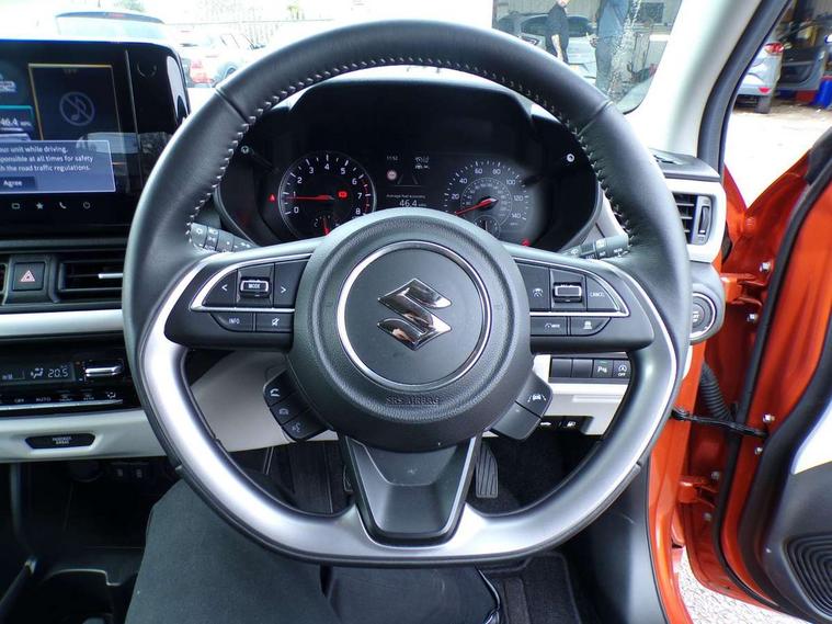 Adaptive cruise control, Automatic start/stop system, Blind spot monitoring, Colour LCD information display, Digital clock, Driver monitoring system, eCall, Fuel consumption display (average/instantaneous) and range display, Intelligent speed control support, Lane departure prevention, Lane departure warning system, Lane keeping assist (LKA), Low fuel level warning light, Navigation system, Outside temperature display, PAS, Rear cross traffic alert, Rear parking camera, Rear parking sensors, Remote fuel cap release, Smartphone integration with Apple CarPlay and Android auto, Suzuki connect, Tailgate, Traffic sign recognition, Weaving alert, 4 speakers + 2 tweeters, 9-inch infotainment display, Auxiliary input socket, Bluetooth audio streaming, DAB Digital radio, Steering wheel audio controls, USB Type A and C, 'Guide me home' headlamps, 1 speed with intermittent rear wiper + washer, 2 speeds front wiper with intermittent + washer, Automatic headlights, Black coloured A & B pillars, Black Upper and lower front grille, Body colour door mirrors and handles, C pillar trim moulding, Door mirrors with built-in turn signal lamp, Electric door mirrors, Electric folding door mirrors, Electric front windows, Electric rear windows, Green tinted glass, Heated door mirrors, High beam assist, LED daytime running lights, LED High mounted stop light, LED number plate light, LED position lamps, LED projector headlamps, LED rear combination lamp, Manual headlamp level control, Rain sensor, Rear fog lights, Rear privacy glass, Rear side wing doors, Rear spoiler, Side spoiler, 1 cup holder in rear, 12V Accessory socket in front console, 2 cup holders in front, 2 Isofix seat anchors, 3 bench rear seats in 2nd row, 3 rear head restraints, 3 spoke leather covered steering wheel, 60/40 split rear seats, Accessory socket, Automatic air conditioning, Centre console storage, Centre lower box, Child seat tether anchorages x 2, Chrome handbrake release button, Chrome interior door handles, Cloth upholstery, Door pockets with bottle holder, Driver/passenger sunvisors with ticket holders + vanity mirrors, Front cabin lights, Front headrests, Front map light, Front passenger side assist grip, Glovebox, Heated front seats, Heater, Height adjustable driver's seat, Luggage area lamp, Painted interior door trim ornament, Parcel shelf, Passenger seat back pocket, Pollen filter, Rear assist grips x2, Rear heater duct, Single front passenger seat, Tilt adjustable steering wheel, Tilt/telescopic adjustable steering wheel, 3 point ELR seatbelts for centre seat, 3 point ELR seatbelts front and rear, ABS+EBD+Brake assist, Curtain airbags, Driver airbag, Dual sensor brake support, ESP + traction control, Front and rear seatbelt reminder, Front passenger airbag, Front passenger airbag deactivation, Front seat seatbelts shoulder height adjuster, Front seatbelt pretensioners with force limiters, Hill hold control, Rear child proof door locks, Rear seatbelts with pre-tensioners and load limiters, Side airbags with incorporated into front seats, Tyre pressure indicator, Deadlocks, Freewheeling key cylinders, Immobiliser, Keyless entry and start, Light - on and Key in reminder, Locking wheel nuts, Remote central locking, Painted instrument panel ornament, 16" Polished alloy wheels, Emergency flat tyre repair kit,